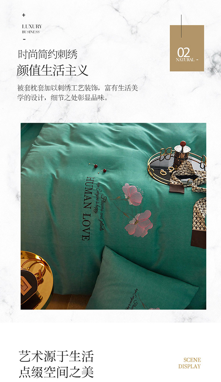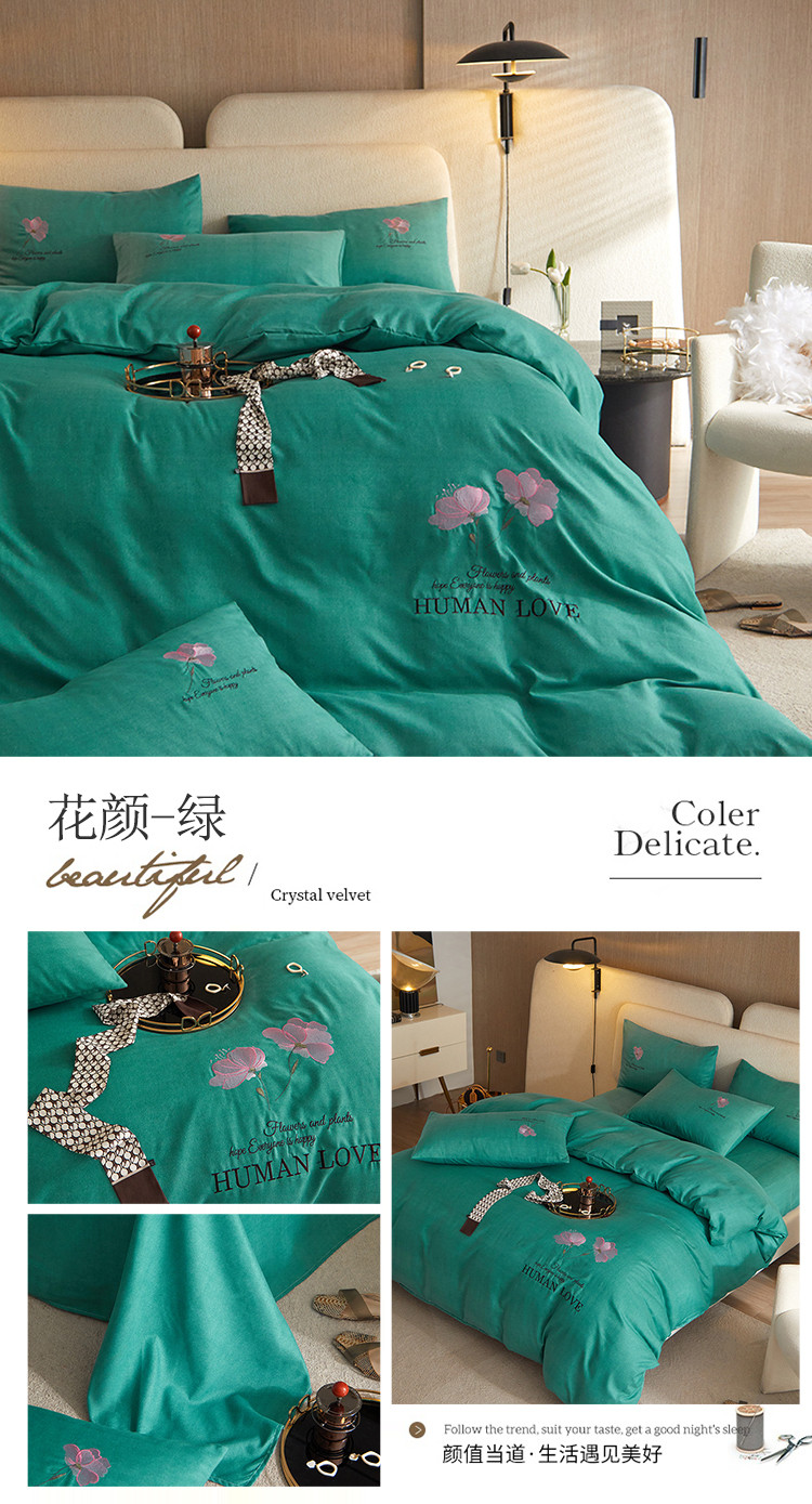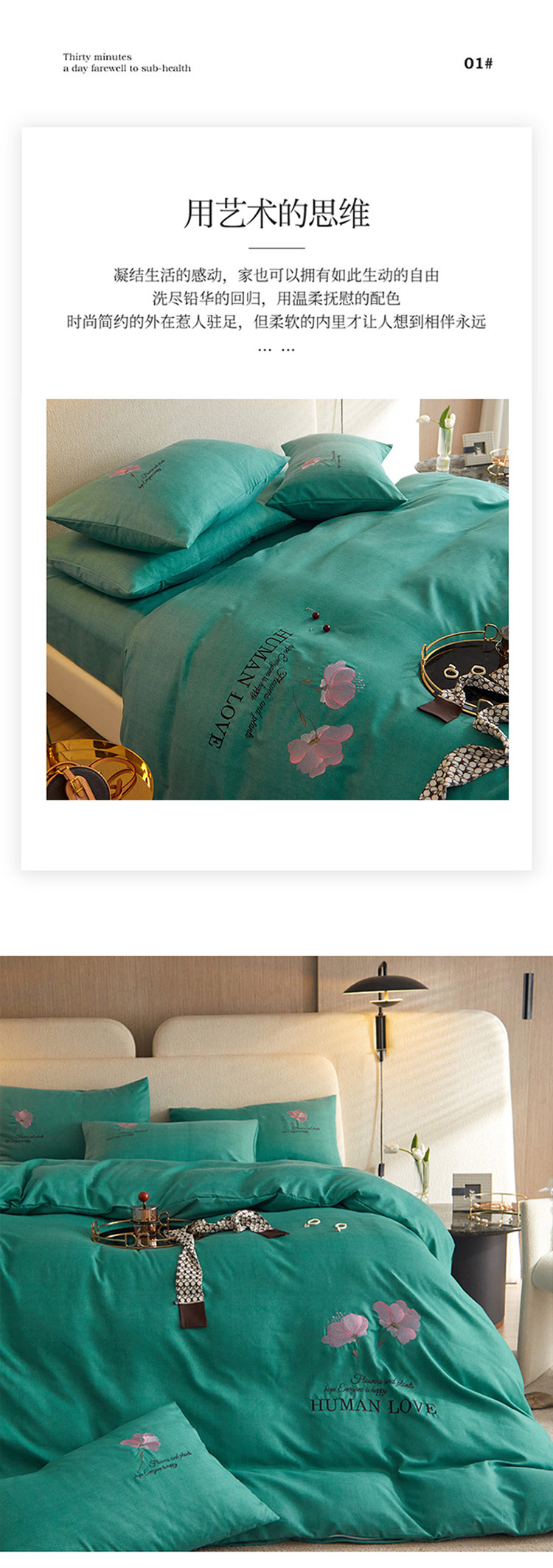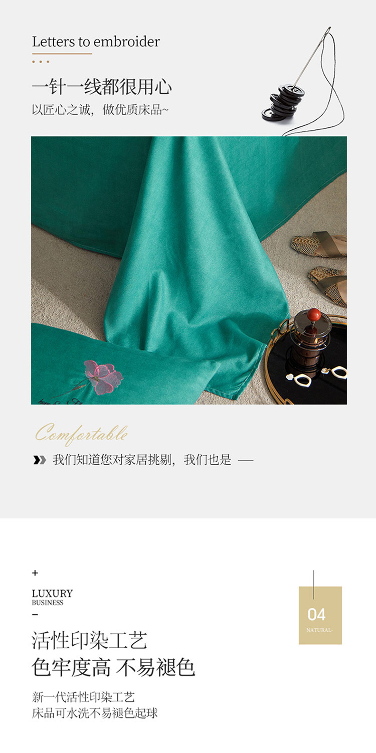 凡客 2021秋冬新款雅棉刺绣四件套-花颜 花颜-绿