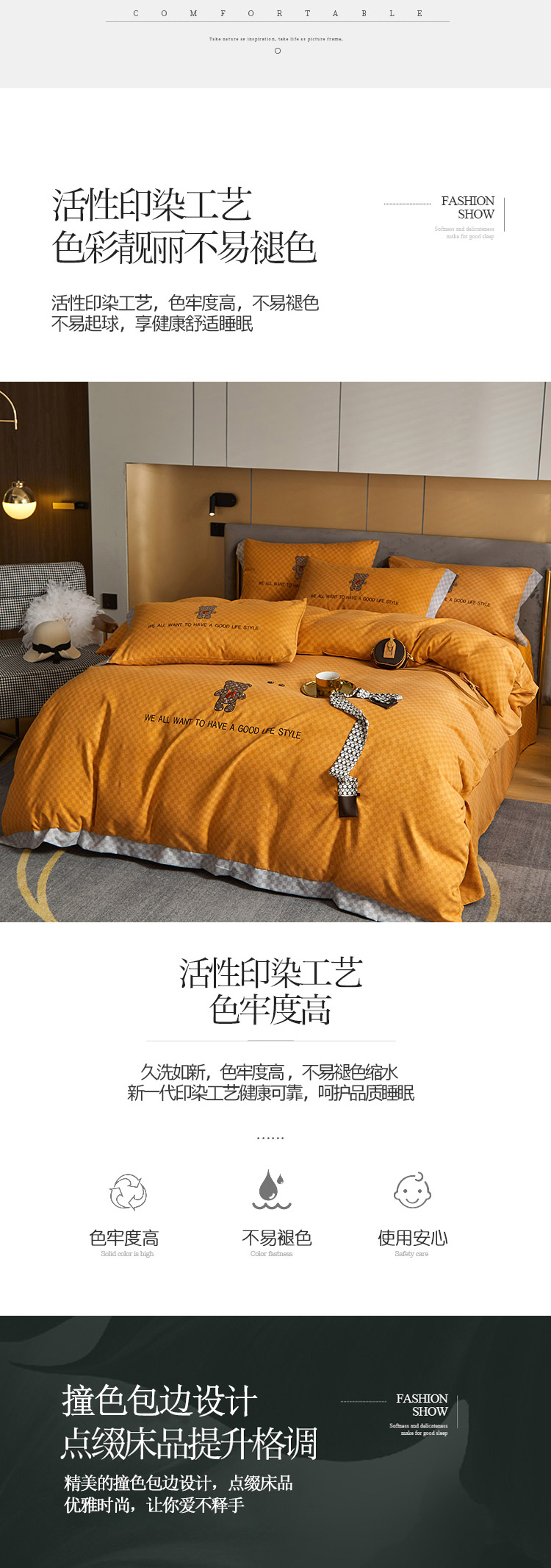 3、通州区市场监督局友情提醒,近期涉及到床上用品不褪色不掉毛不缩水的投诉和以世界知名品牌图案为面料的床品举报较多。请各商家自检自查,对照整改或进行下架处理。