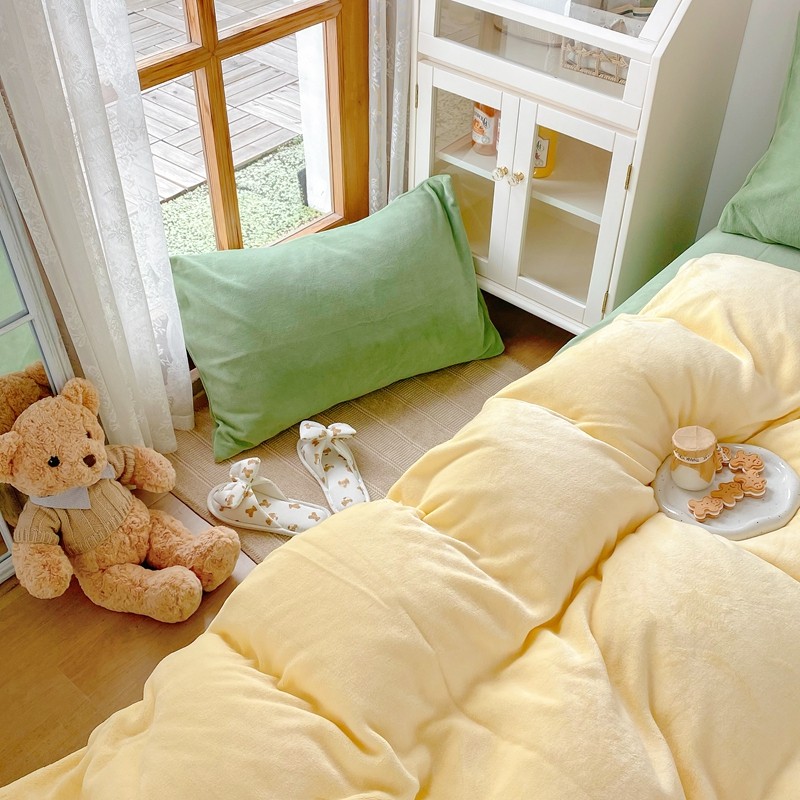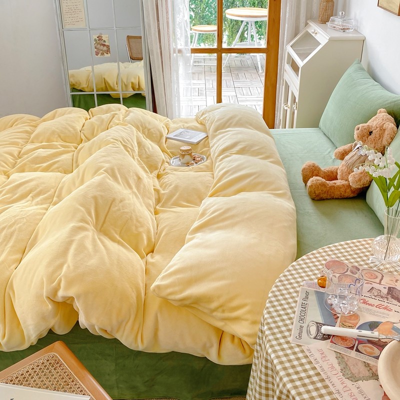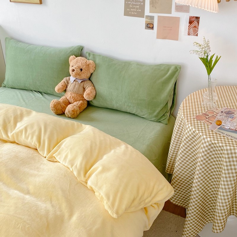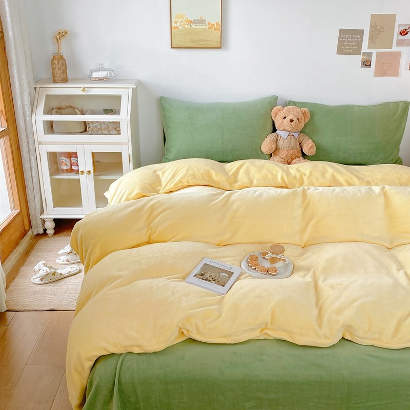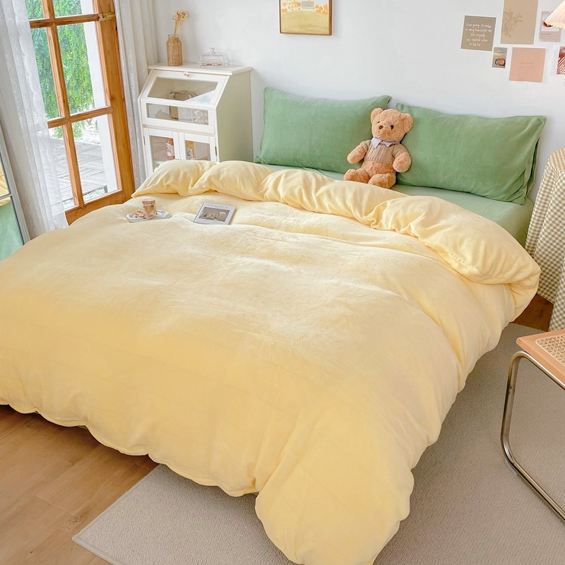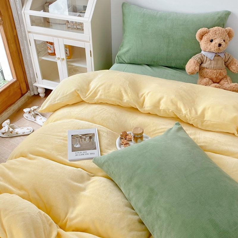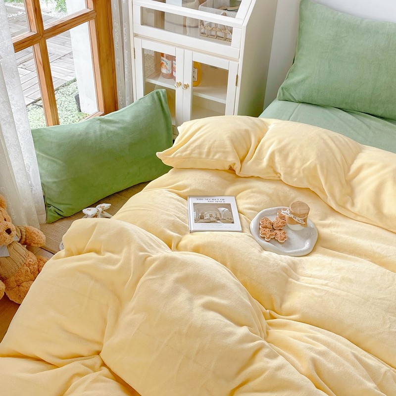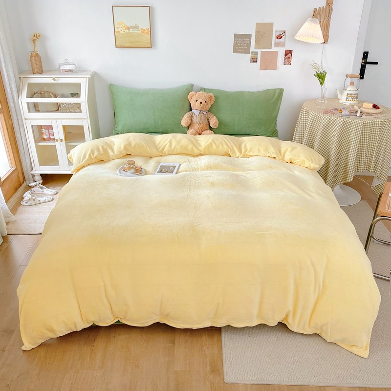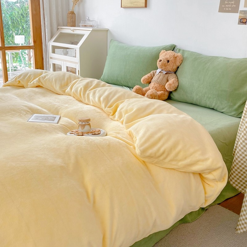 商品名称:星期八 2021新款马卡龙牛奶绒四件套 黄-绿