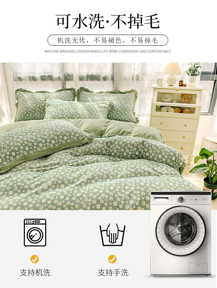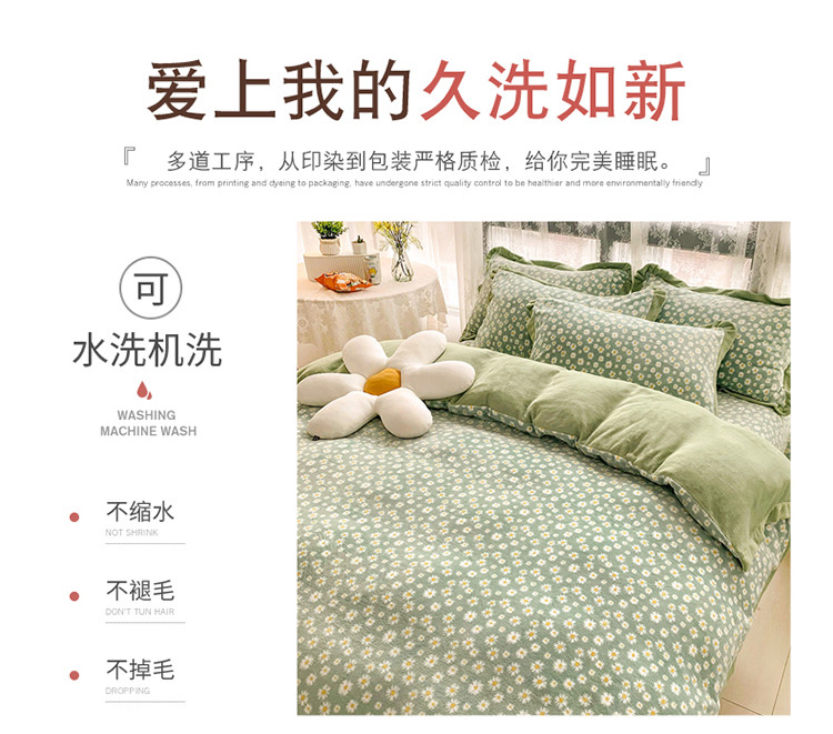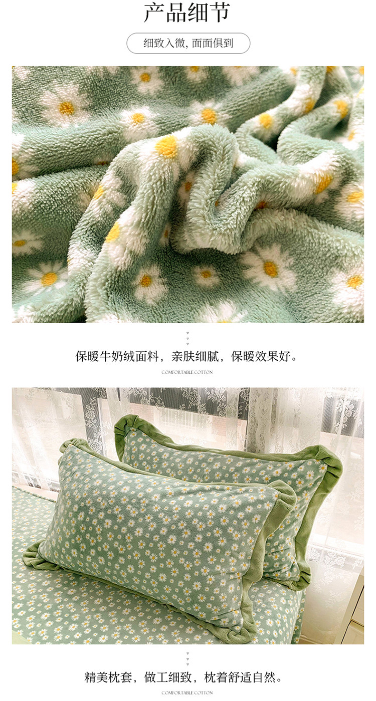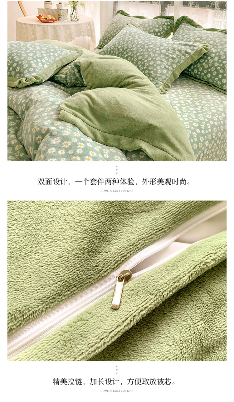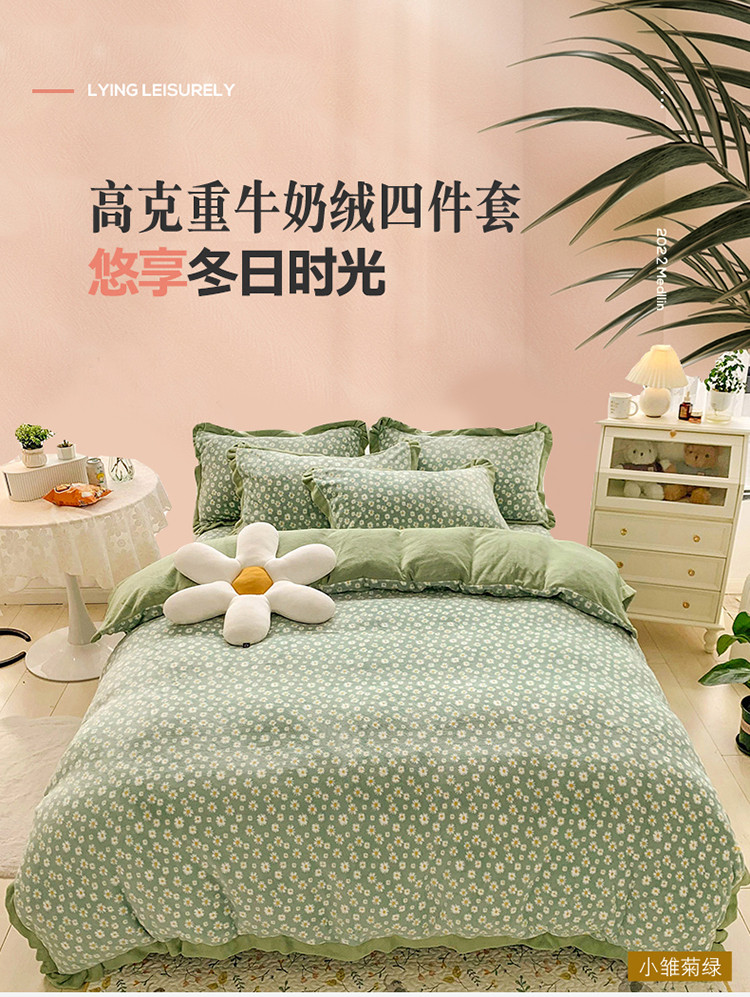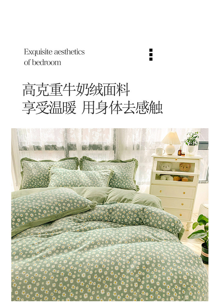 商品名称:金爱家 2021新款250克牛奶绒四件套 小雏菊绿