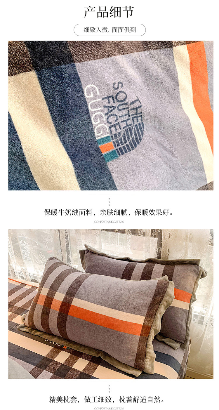 商品名称:金爱家 2021新款250克牛奶绒四件套 大格蓝灰