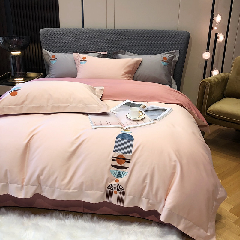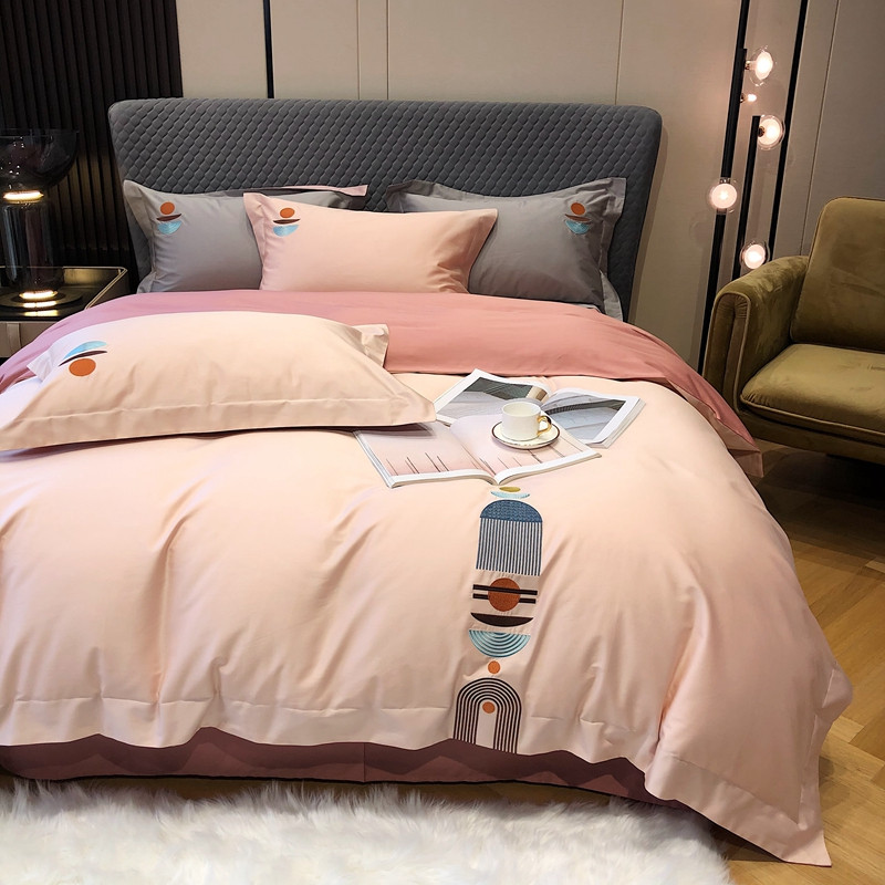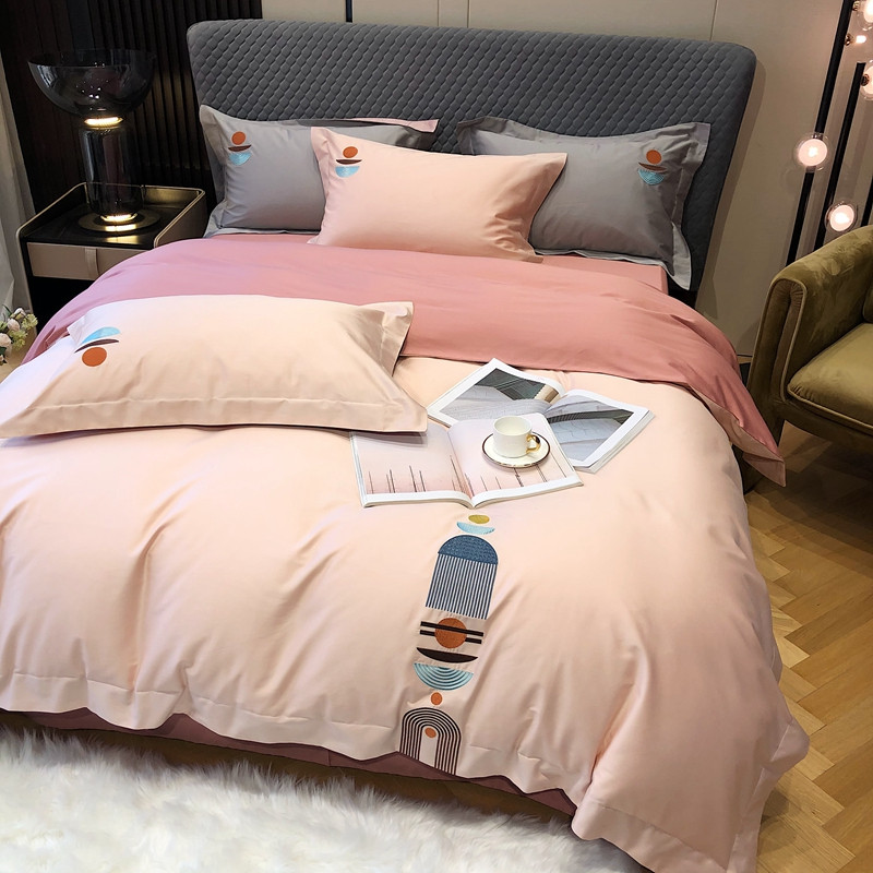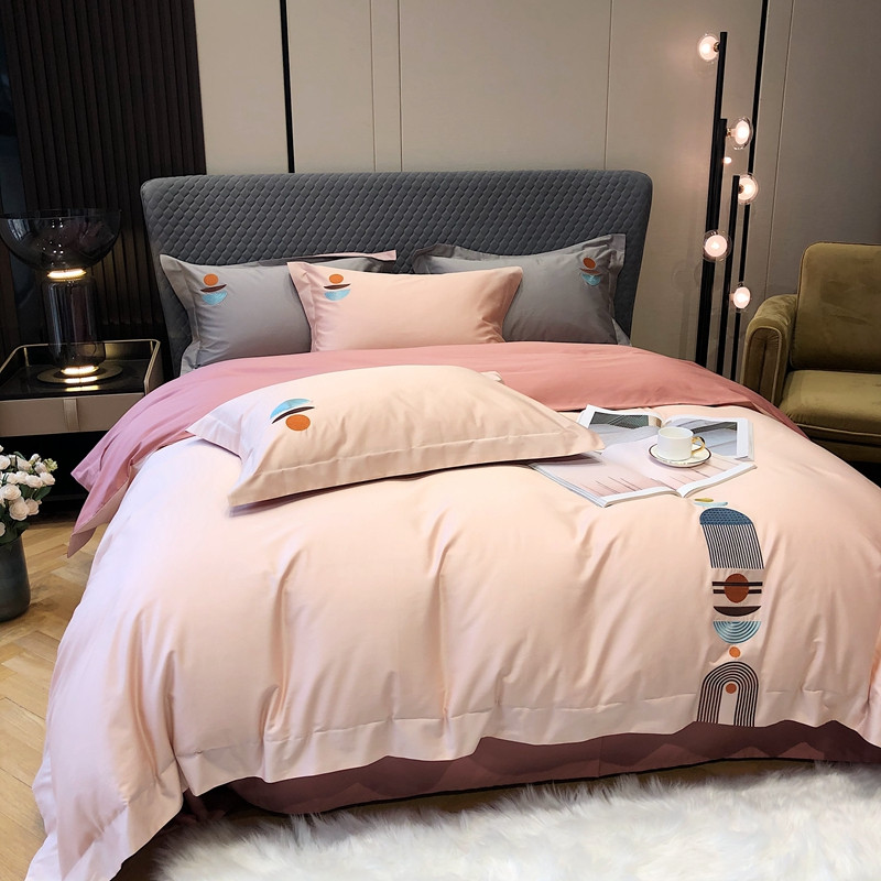 涞澳家纺 2021新款100支全棉长绒棉工艺款四件套-晨昔 粉
