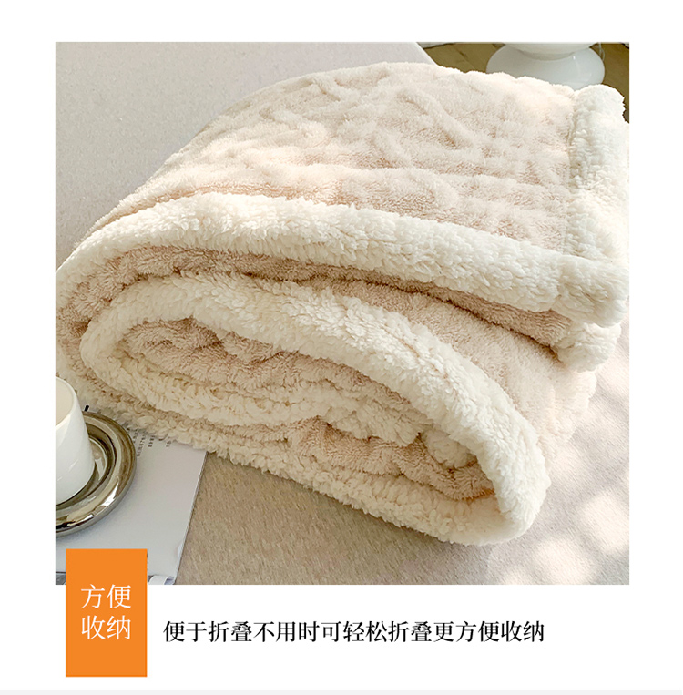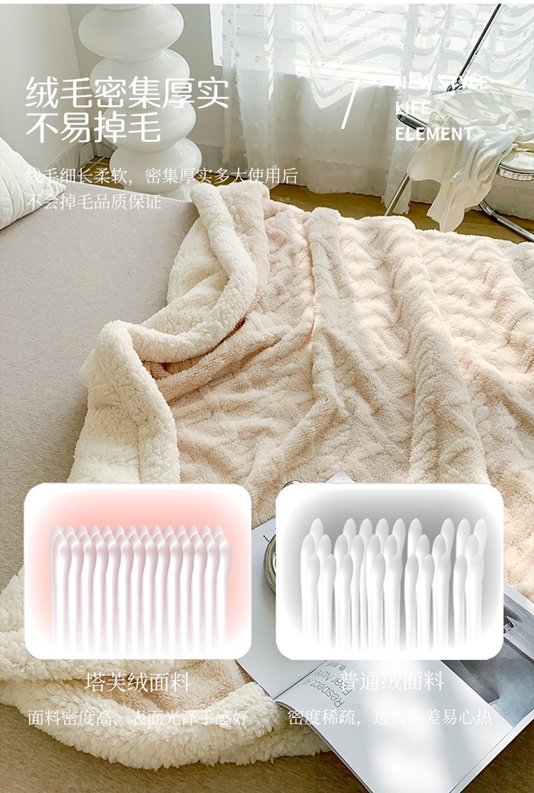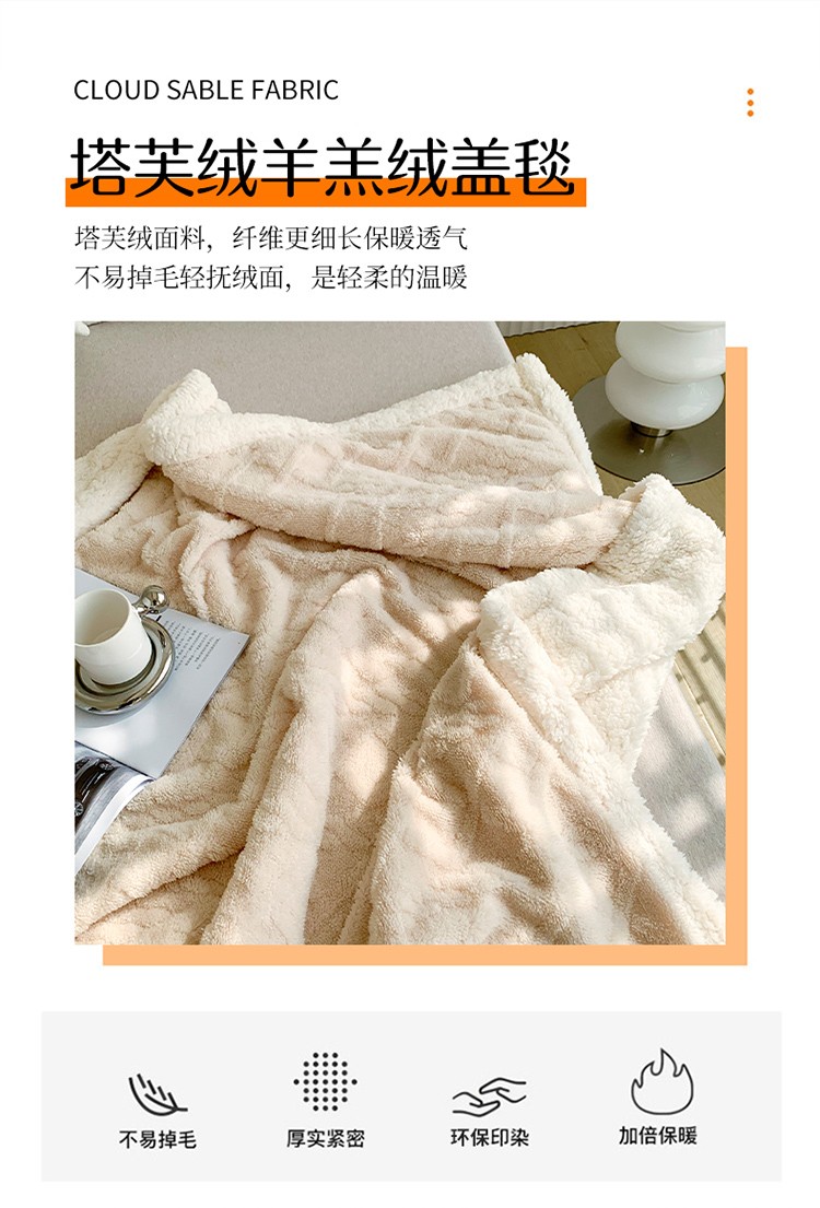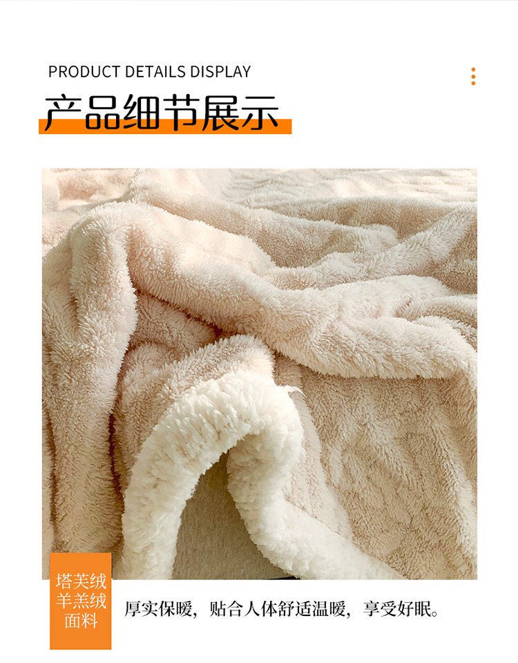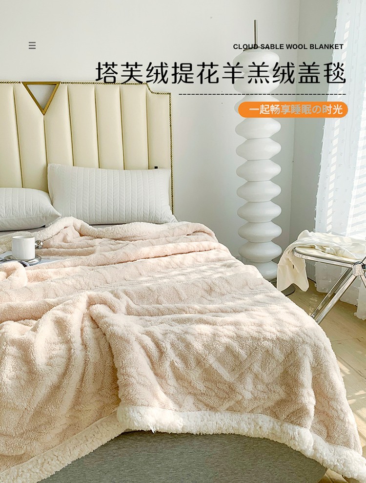 商品名称:网客家纺2024新款塔芙绒提花羊羔绒盖毯 米杏