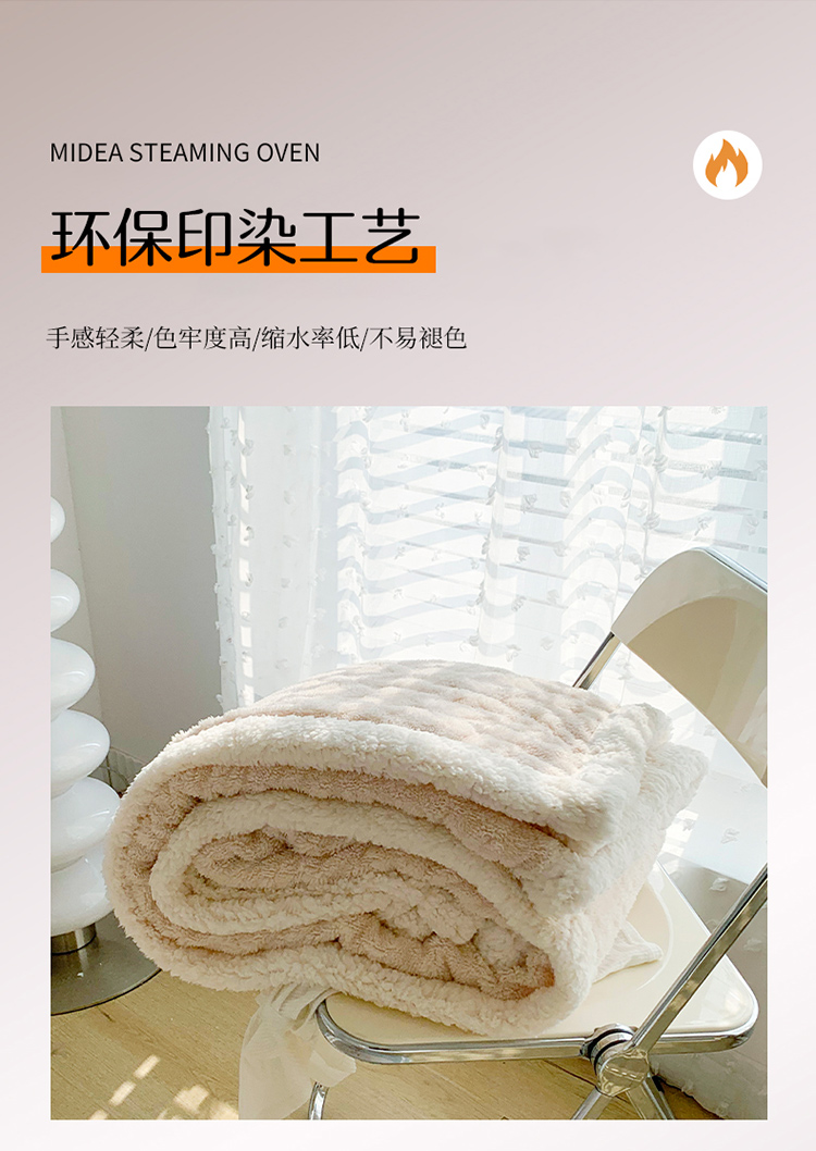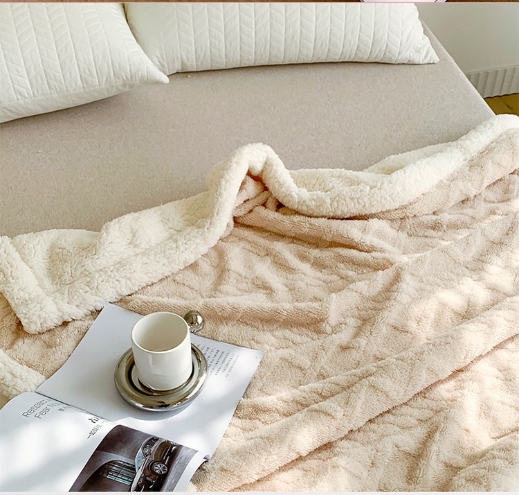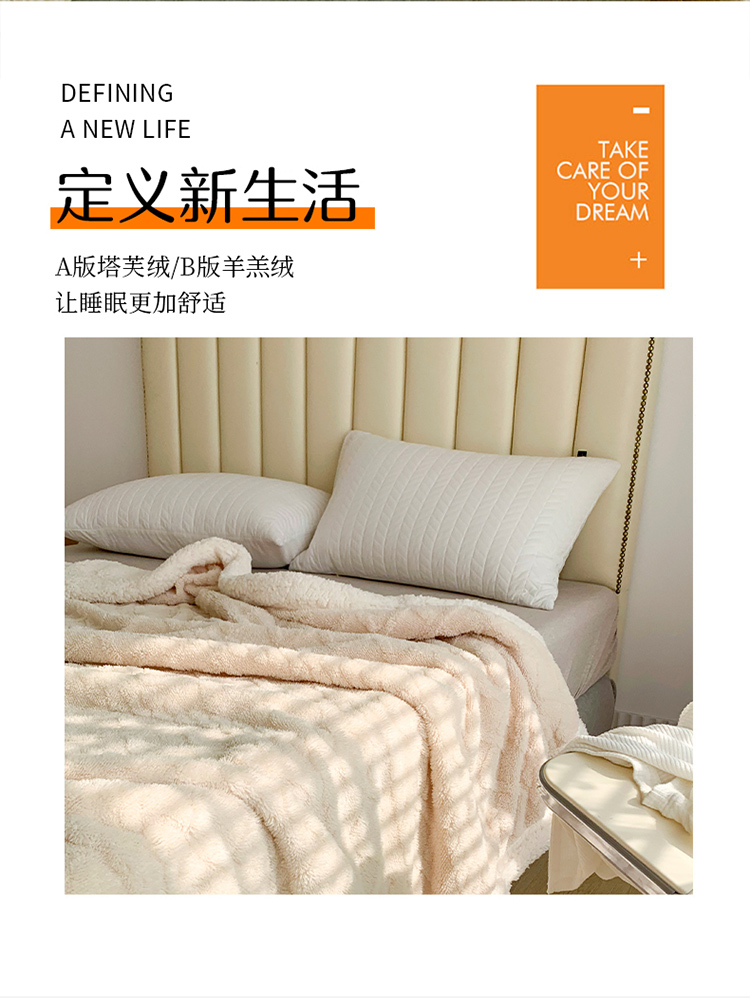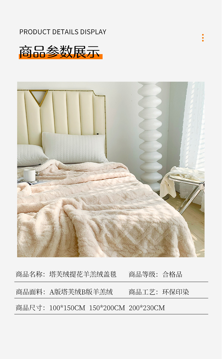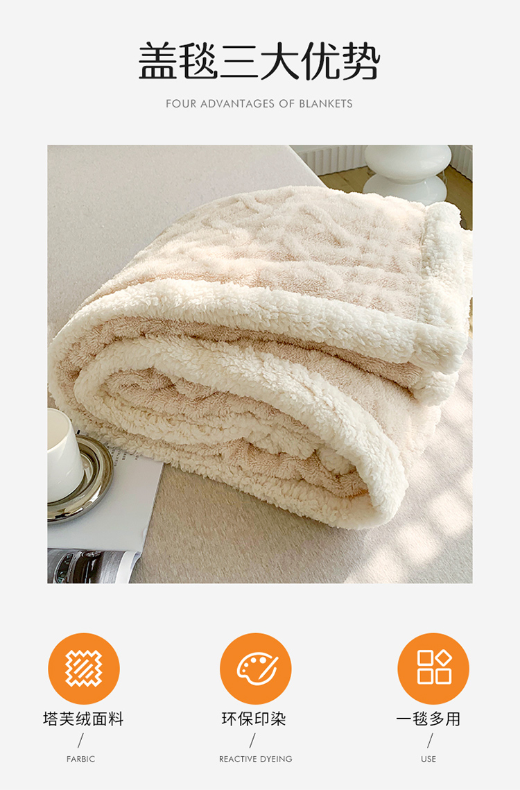 商品名称:网客家纺2024新款塔芙绒提花羊羔绒盖毯 米杏