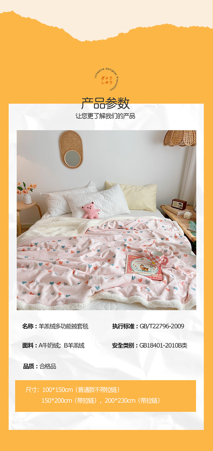 萝莉家纺2021保暖加厚牛奶绒毛毯羊羔绒毯子被套毯小爱心