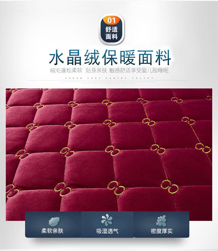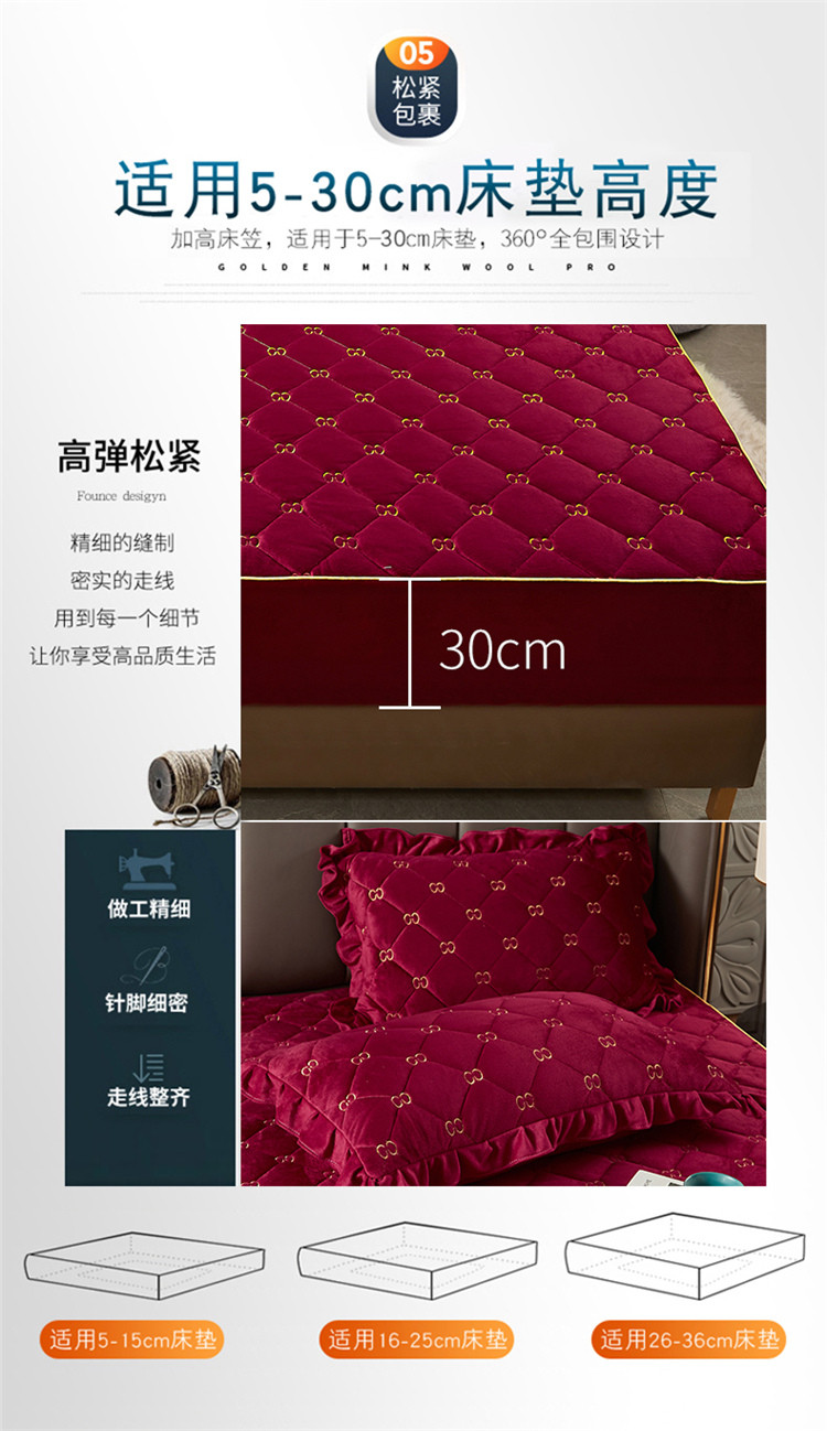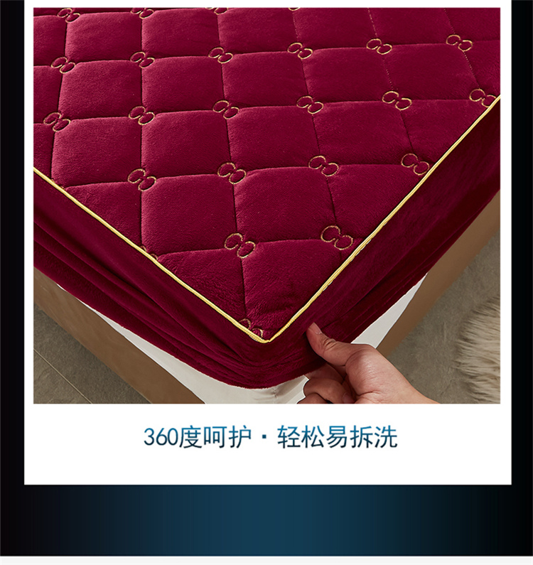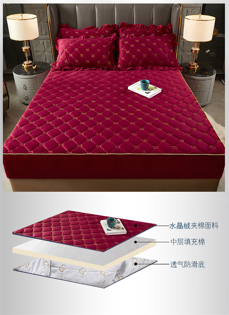 十个点家纺 2021新款倾国倾城水晶绒夹棉床笠 酒红