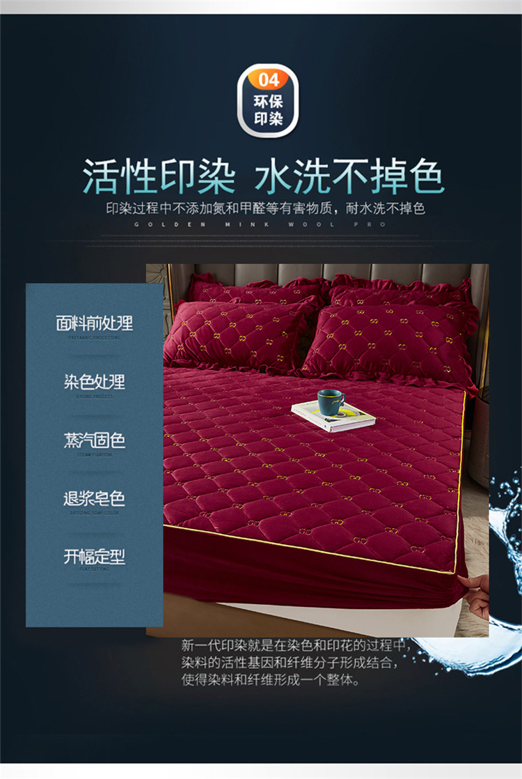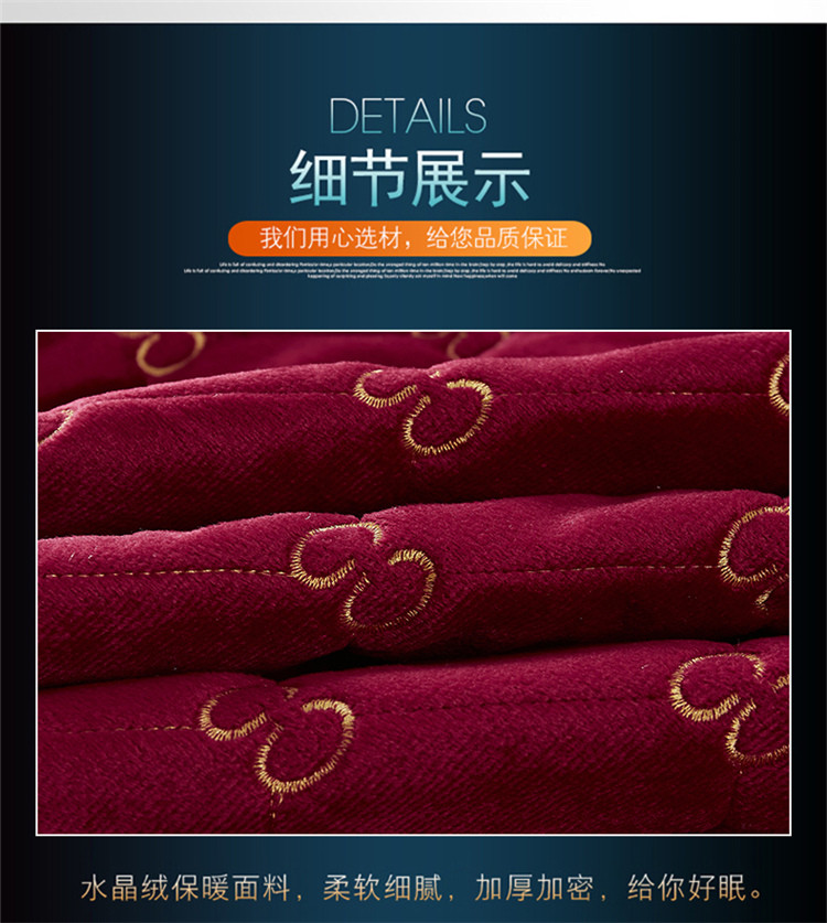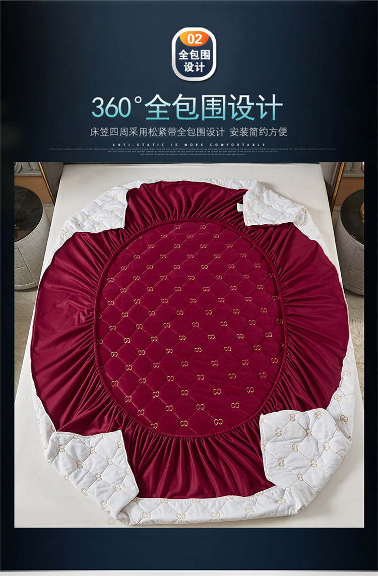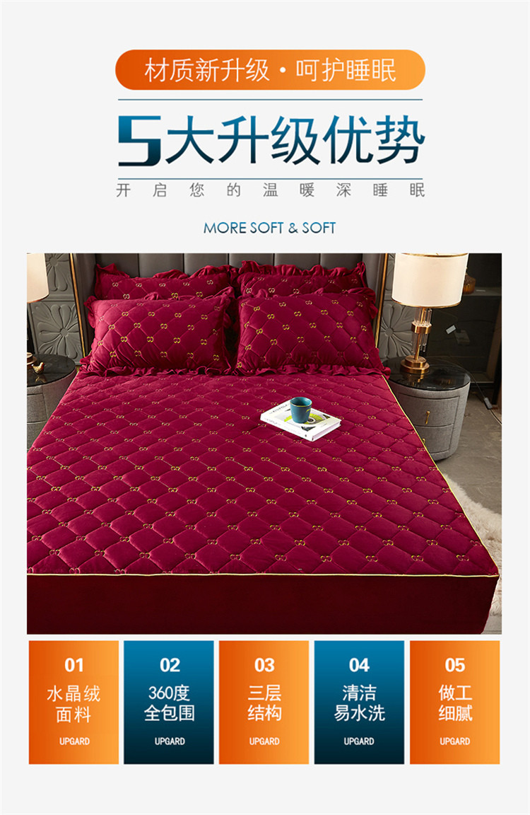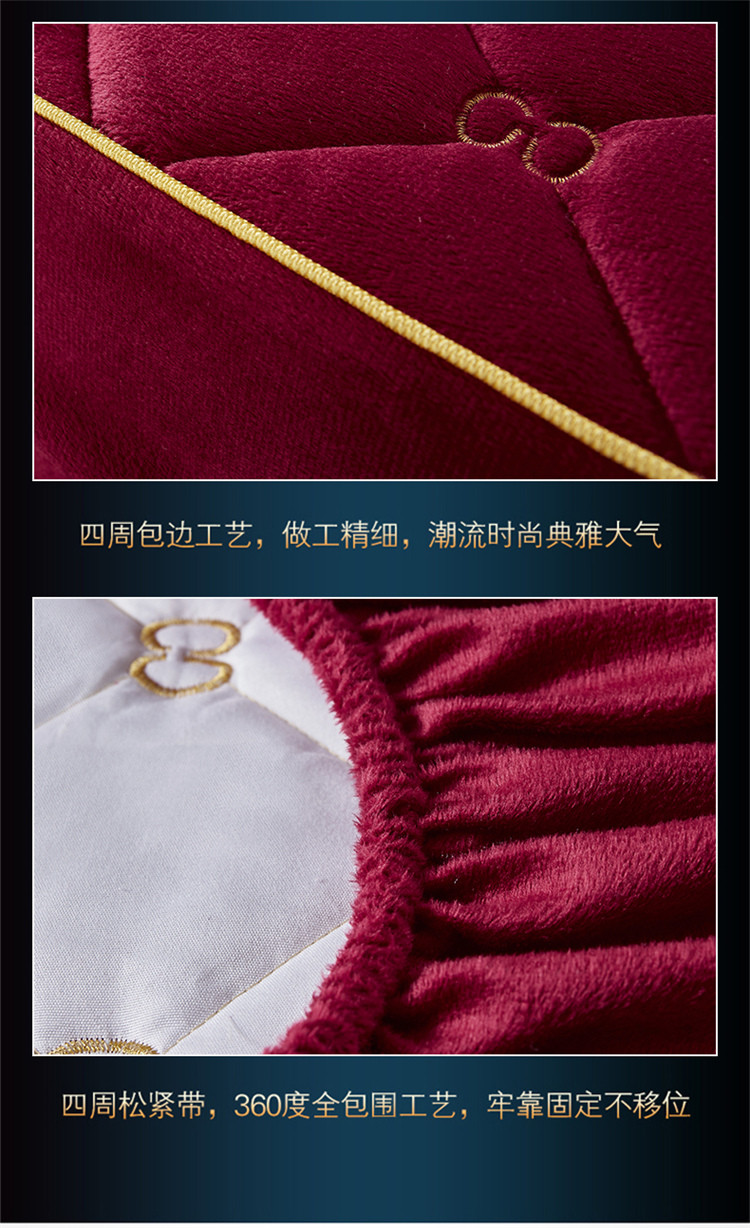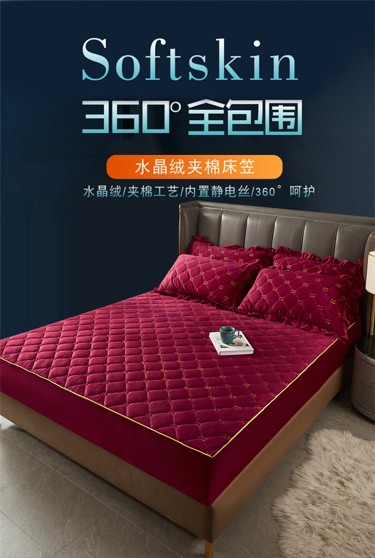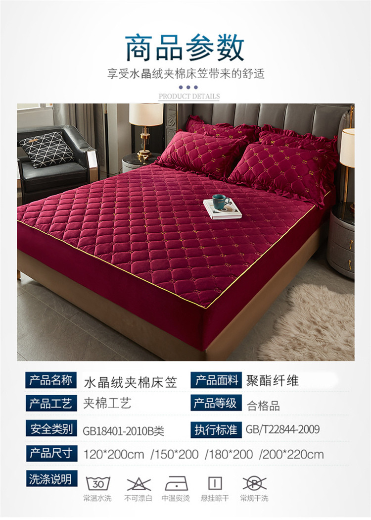 • 91家纺网 家纺一手货源 找家纺 十个点家纺 2021新款倾国倾城水晶绒夹棉床笠 酒红