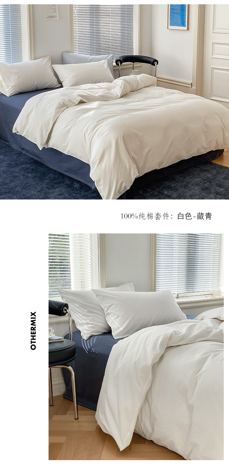 当前位置: 91家纺网 > 商品网购 > 床品套件 > 四件套 > 水洗棉四件套 > 北欧风ins纯棉水洗棉床四件套全棉简约被套床单上三件套床笠 藏青-浅蓝