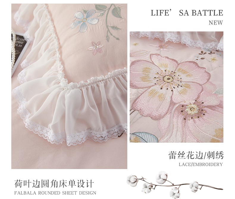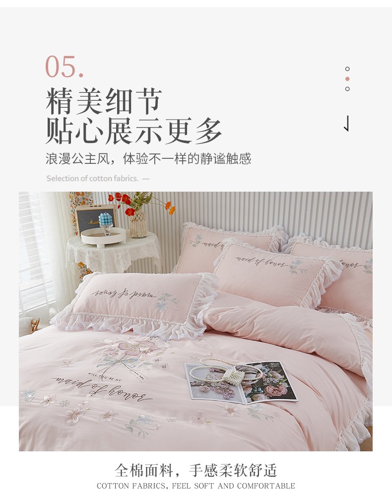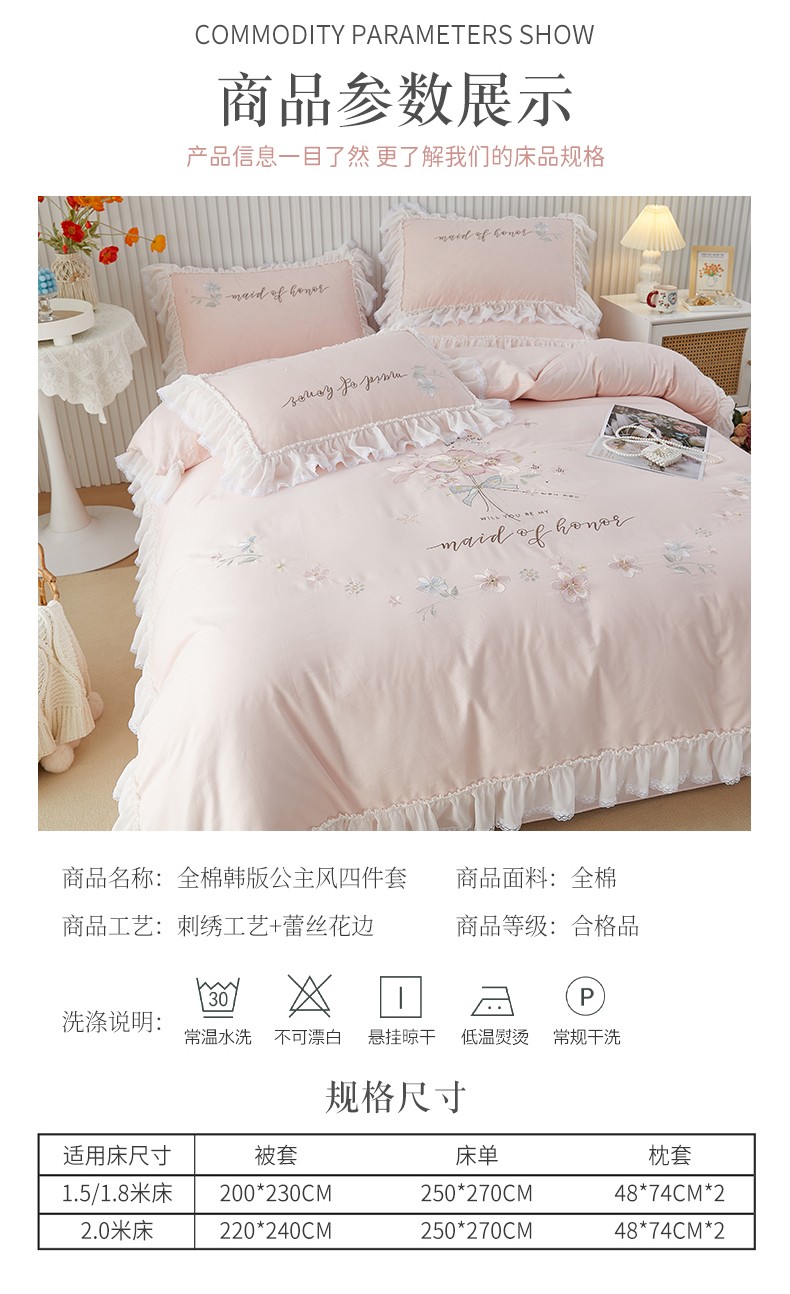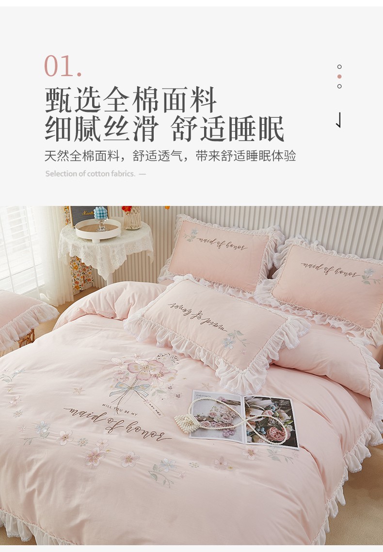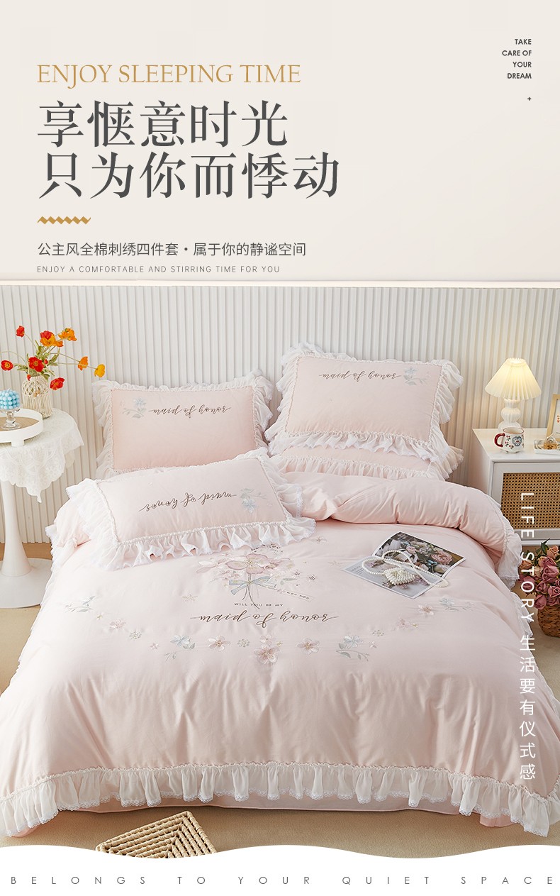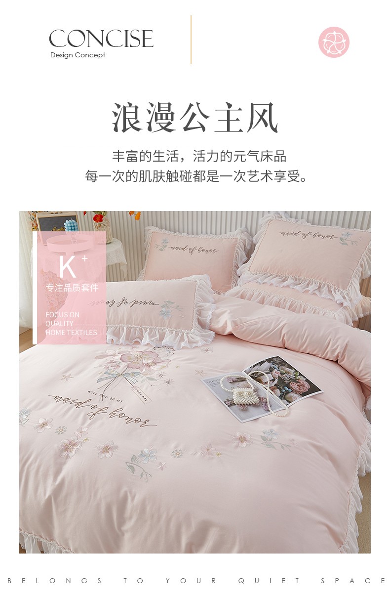 当前位置: 91家纺网 > 商品网购 > 床品套件 > 四件套 > 全棉普通四件套 > (总)2025 亲亲公主新款全棉韩版绣花蕾丝公主风四件套