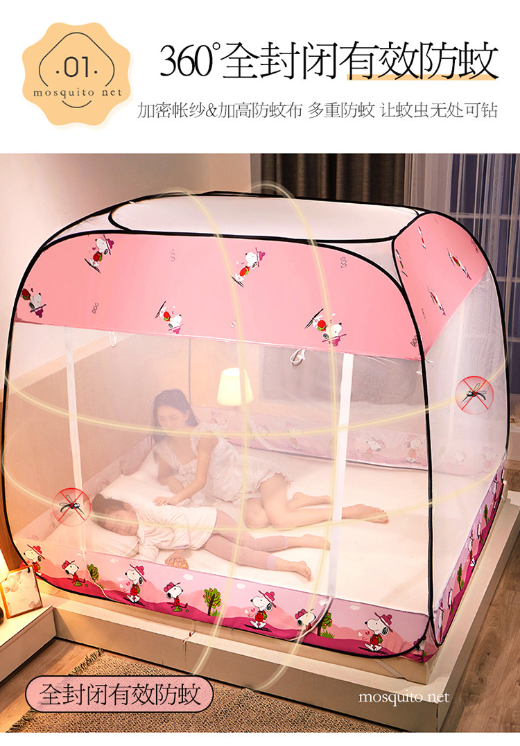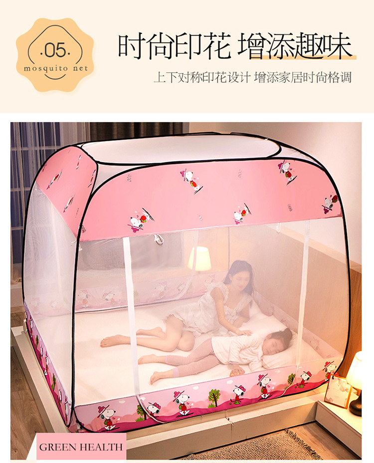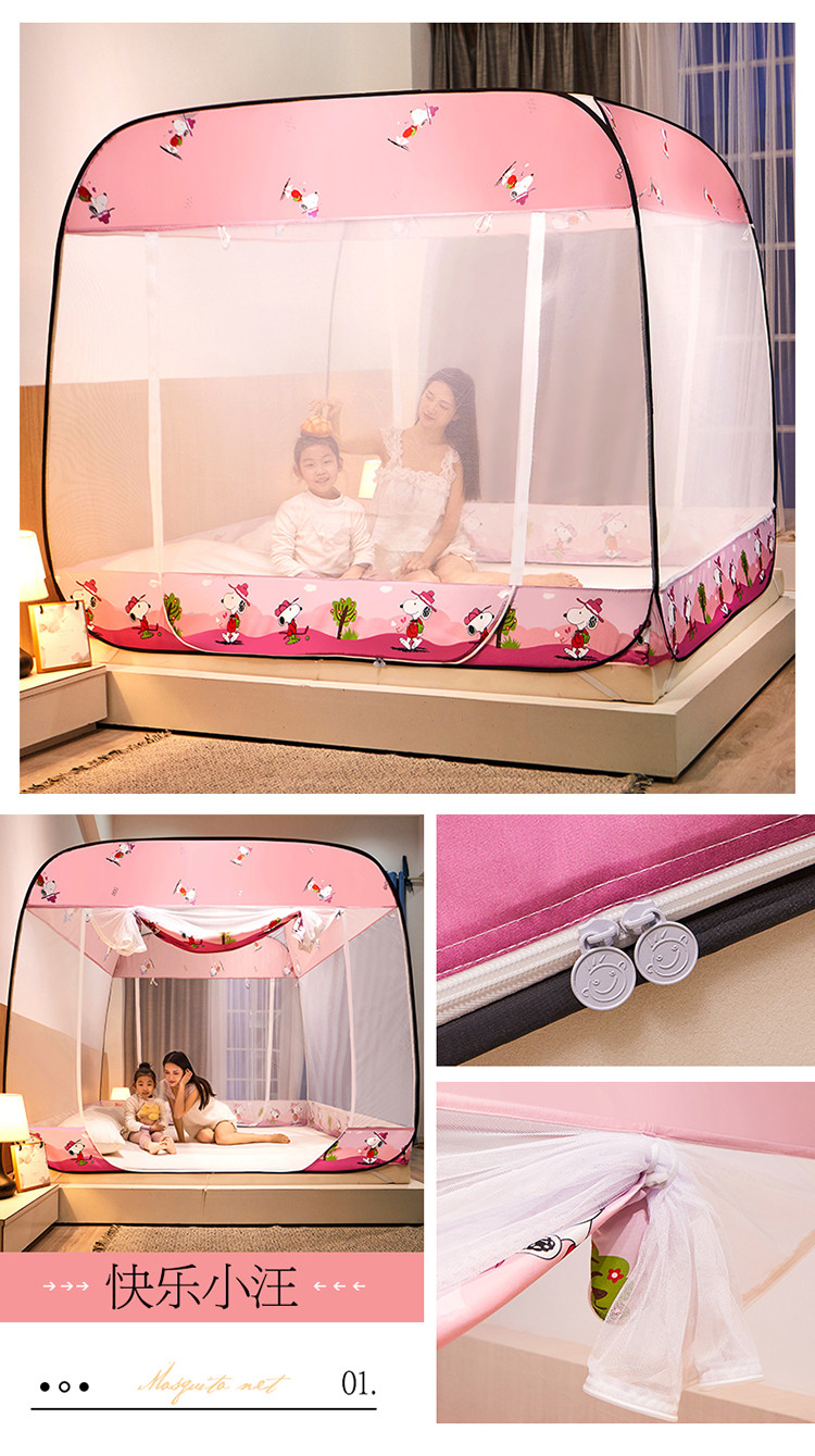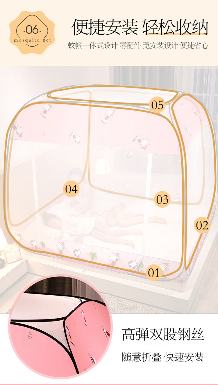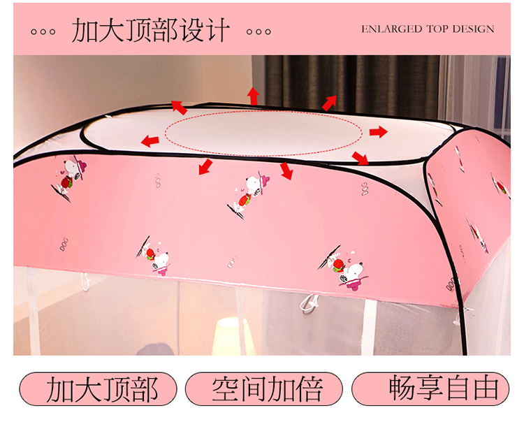 商品名称:夏彩 新款印花免安装蚊帐-88513 时尚粉狗