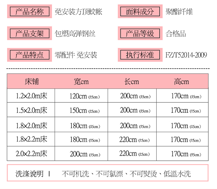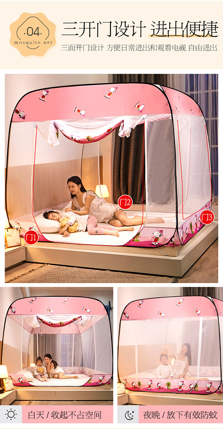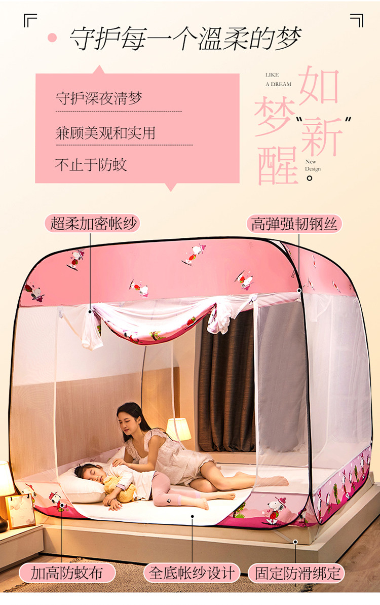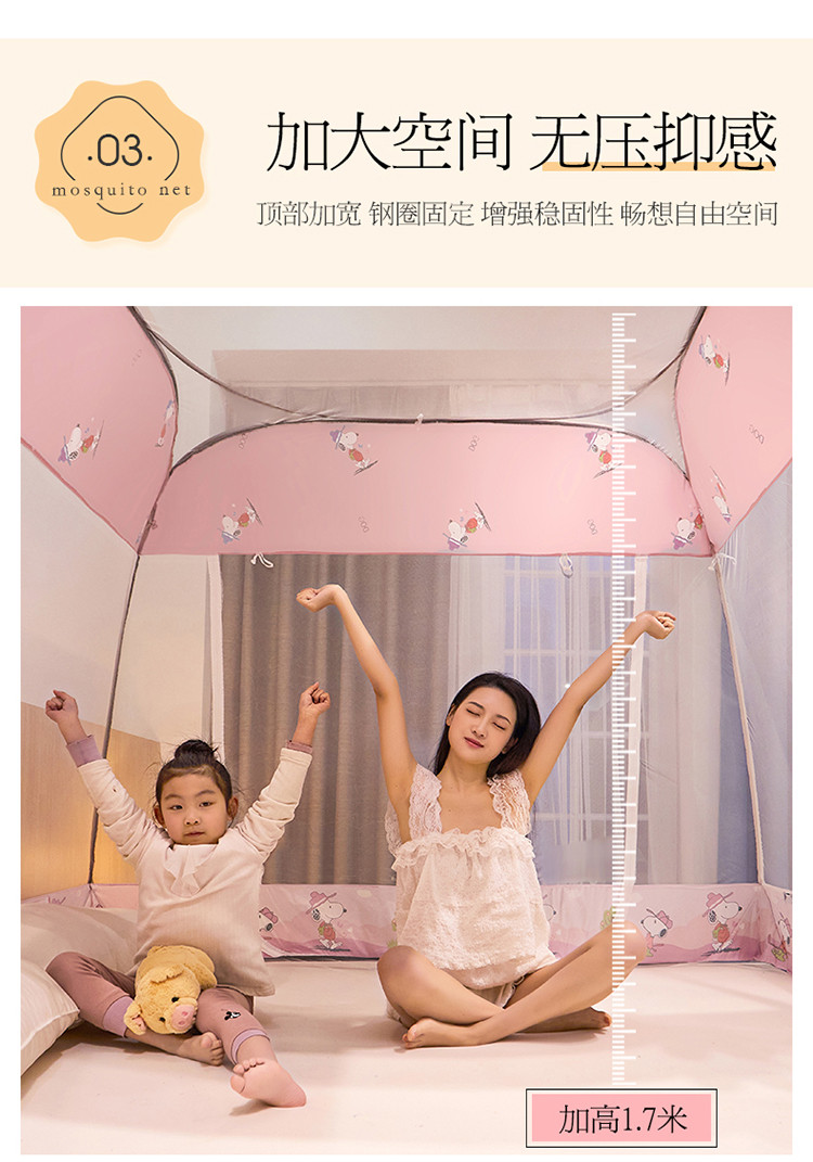 商品名称:夏彩 新款印花免安装蚊帐-88513 时尚粉狗