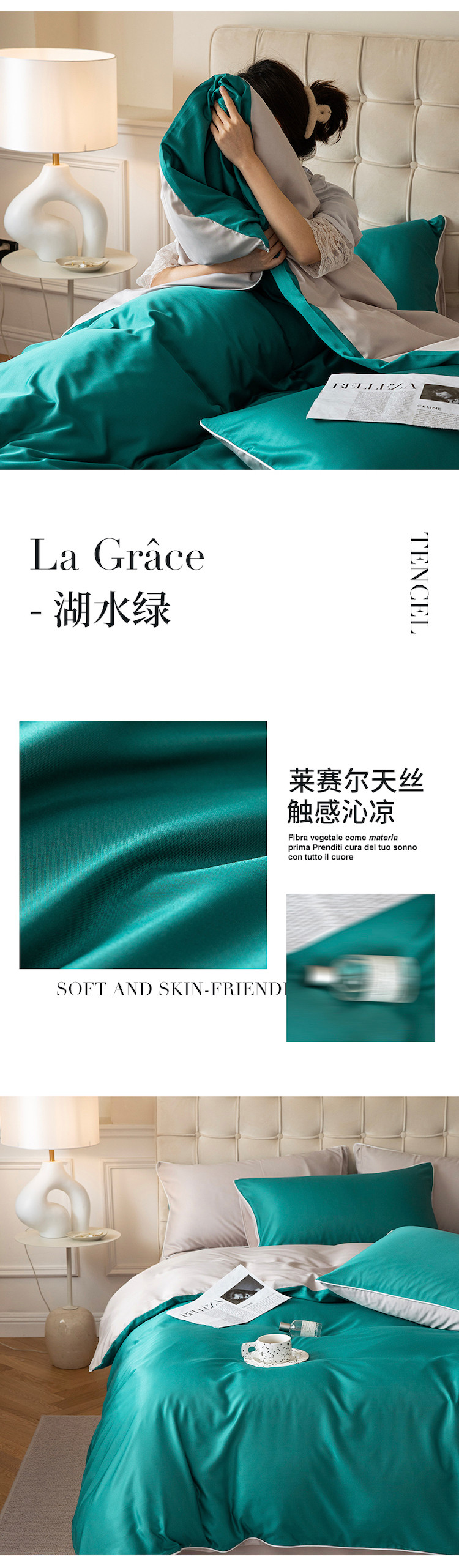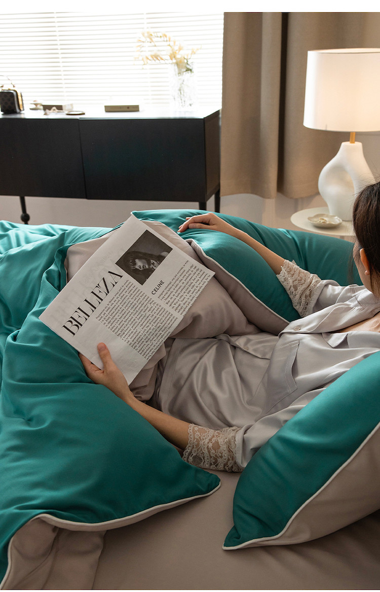 当前位置: 91家纺网 > 商品网购 > 床品套件 > 四件套 > 莱赛尔四件套 > 万盛家纺 2023新款莱赛尔天丝四件套 湖水绿