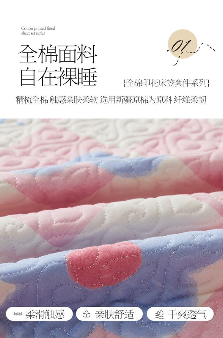 • 91家纺网 家纺一手货源 找家纺 宜凡家纺 2023新款全棉印花花边床笠三件套 春日