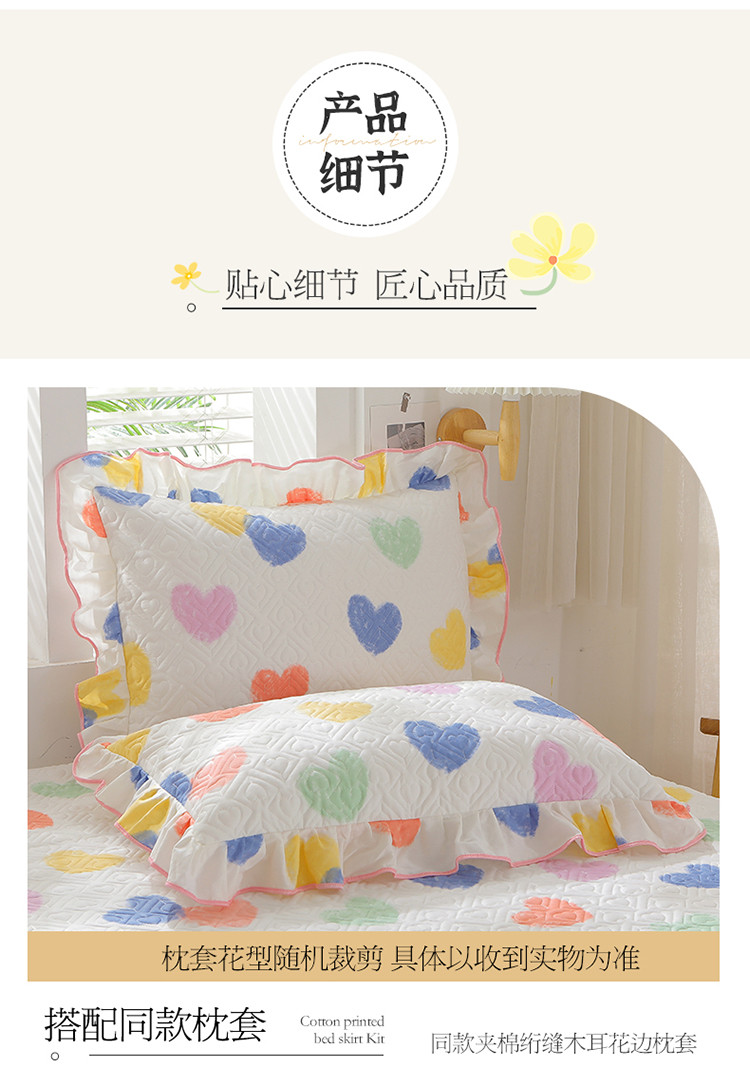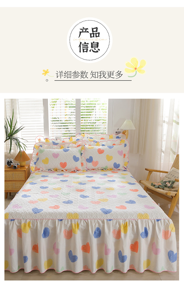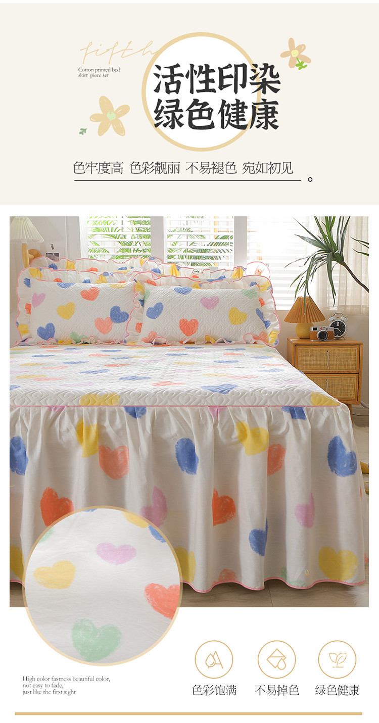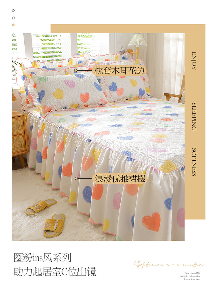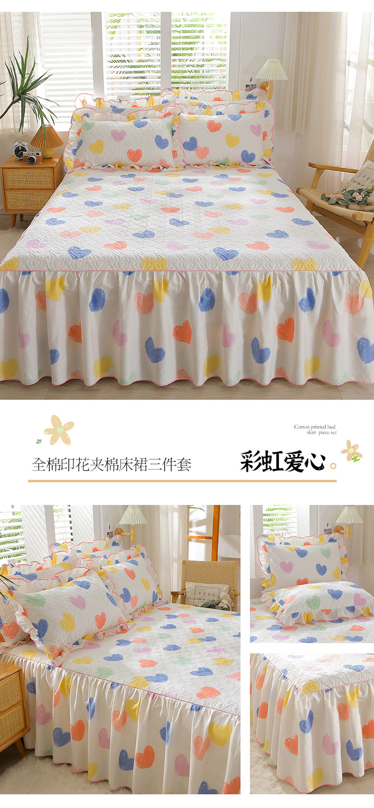 宜凡家纺 2023新款全棉印花花边床裙三件套 彩虹爱心