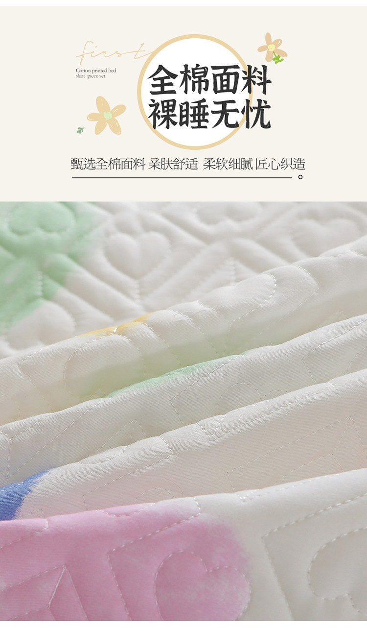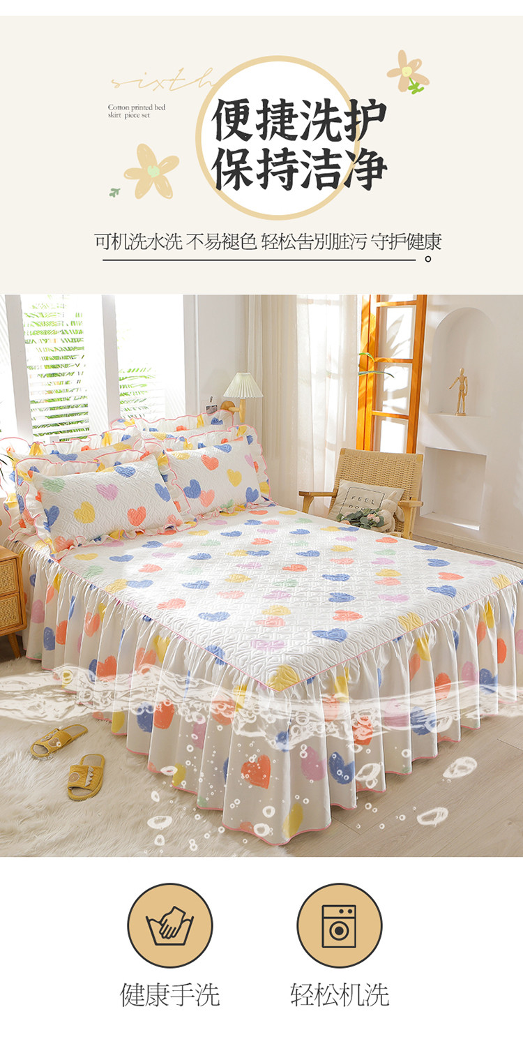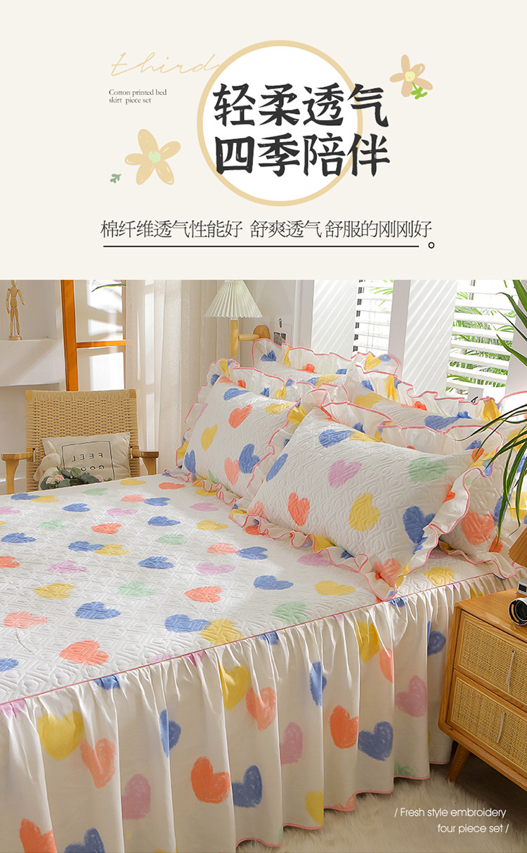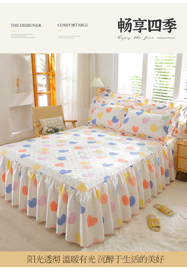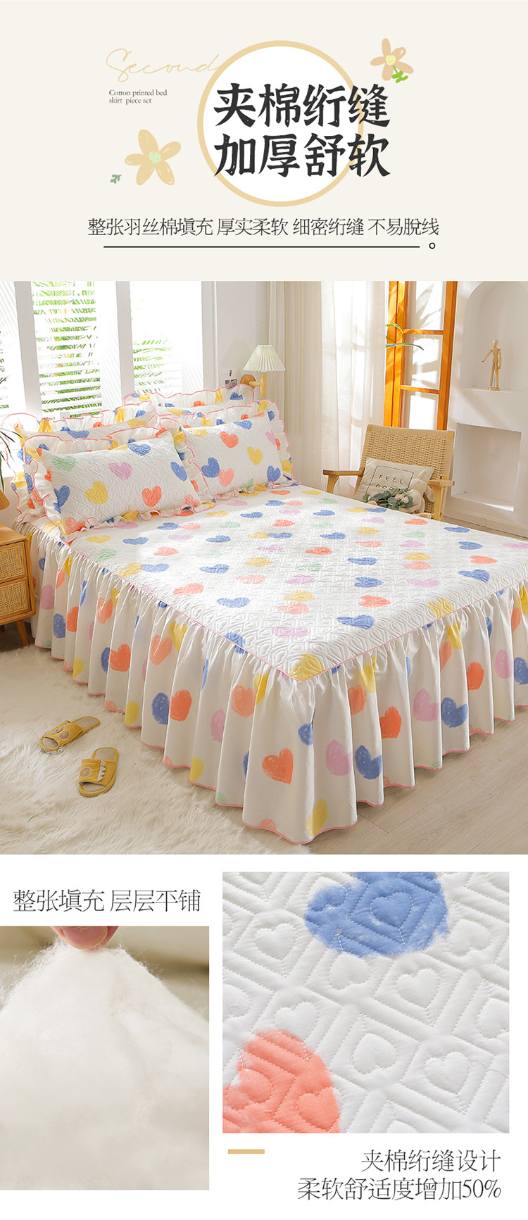 宜凡家纺 2023新款全棉印花花边床裙三件套 彩虹爱心