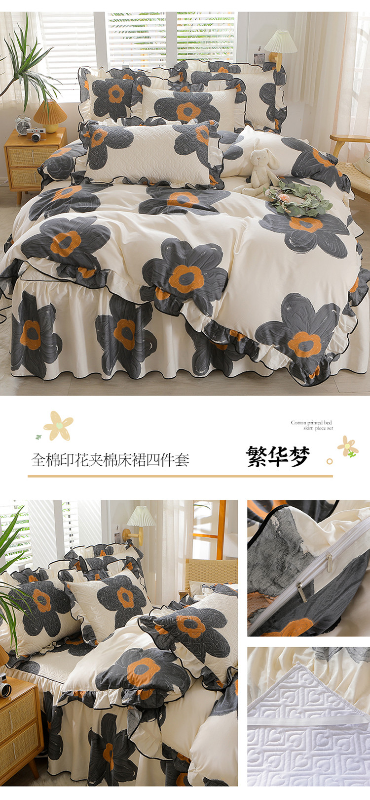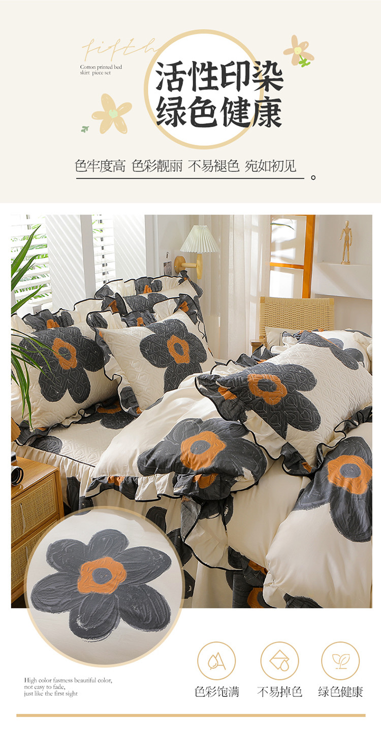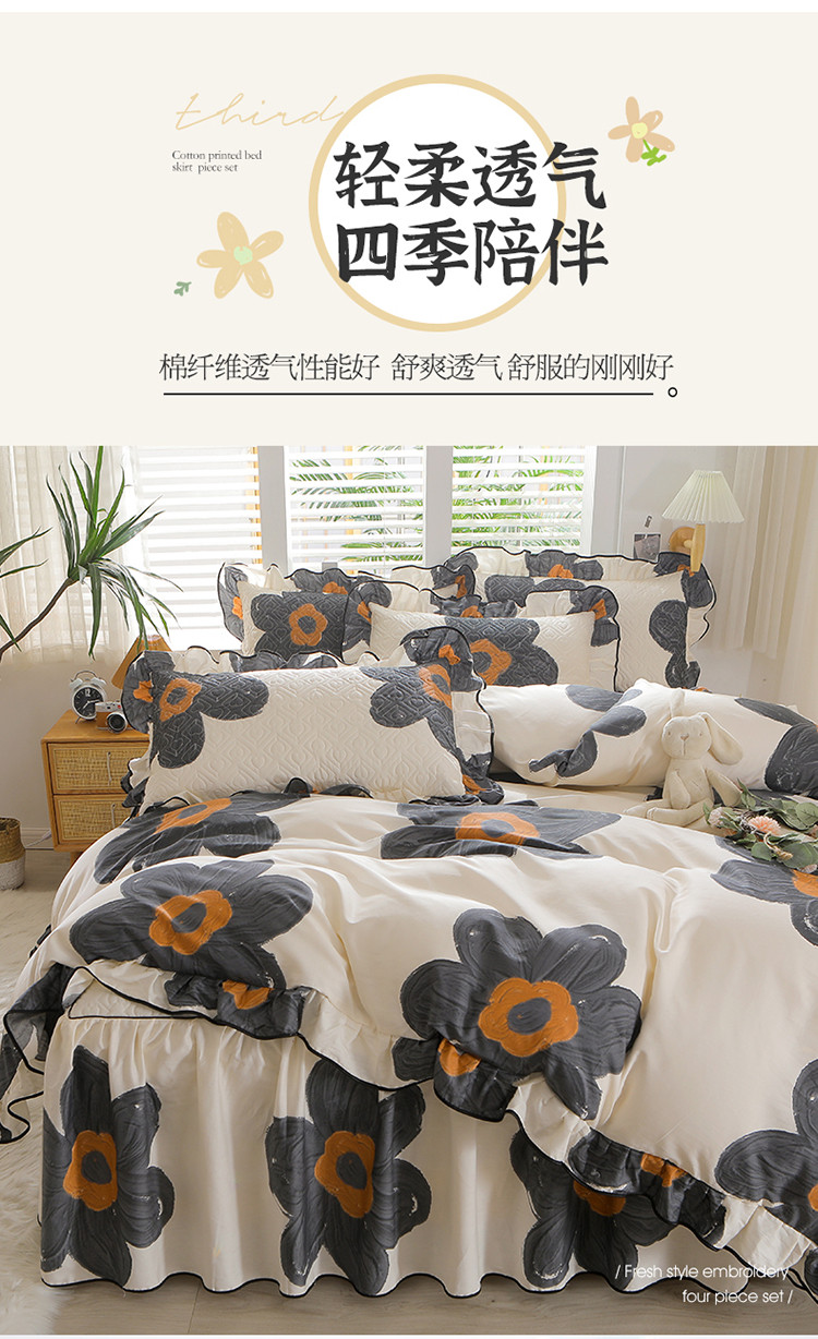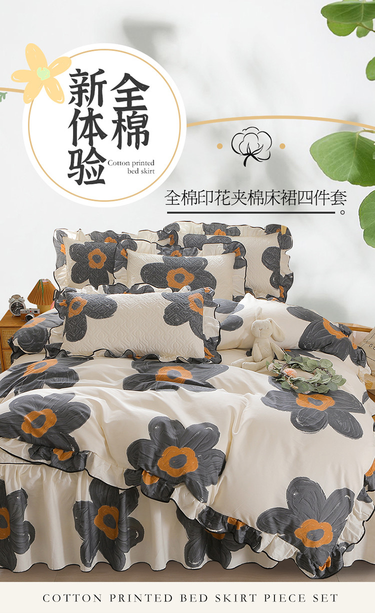 当前位置: 91家纺网 > 商品网购 > 床品套件 > 四件套 > 全棉普通四件套 > 宜凡家纺 2023新款全棉印花花边床裙四件套 繁华梦