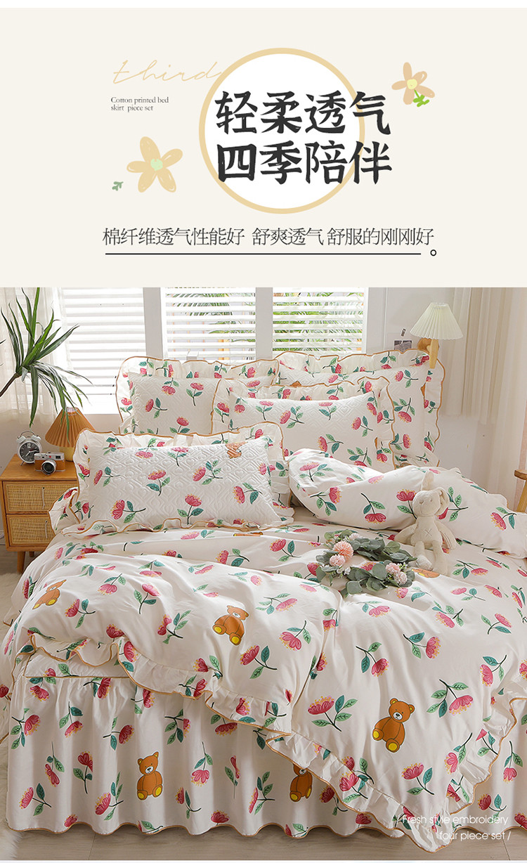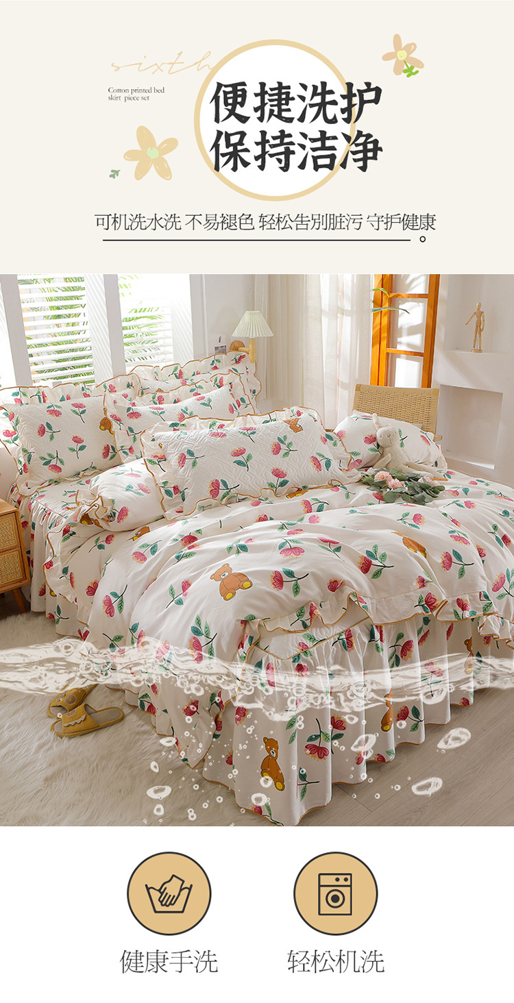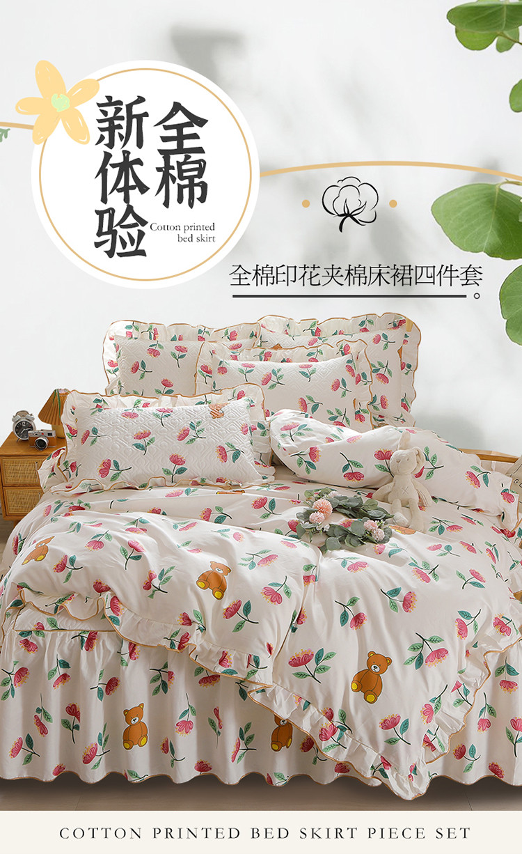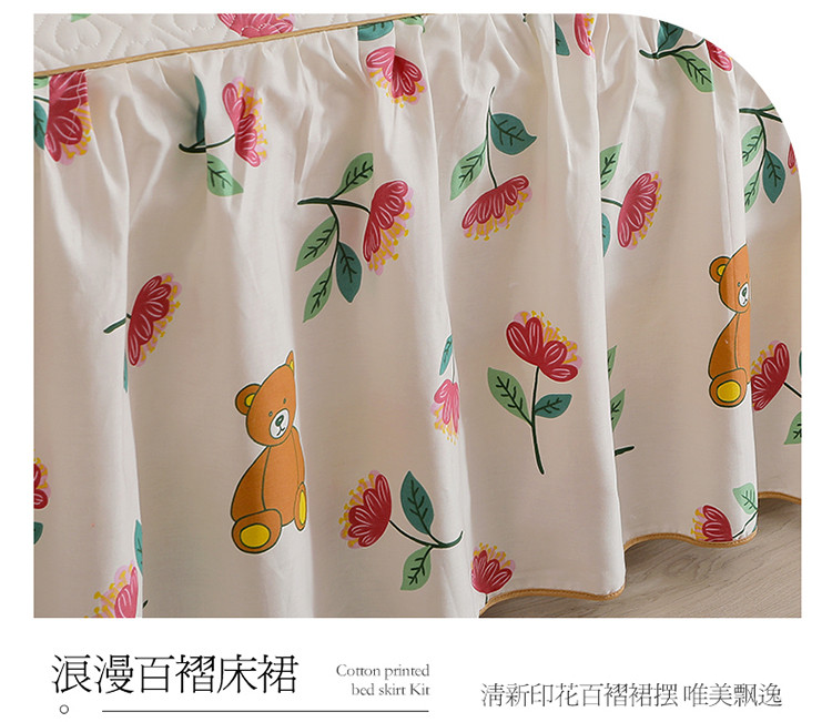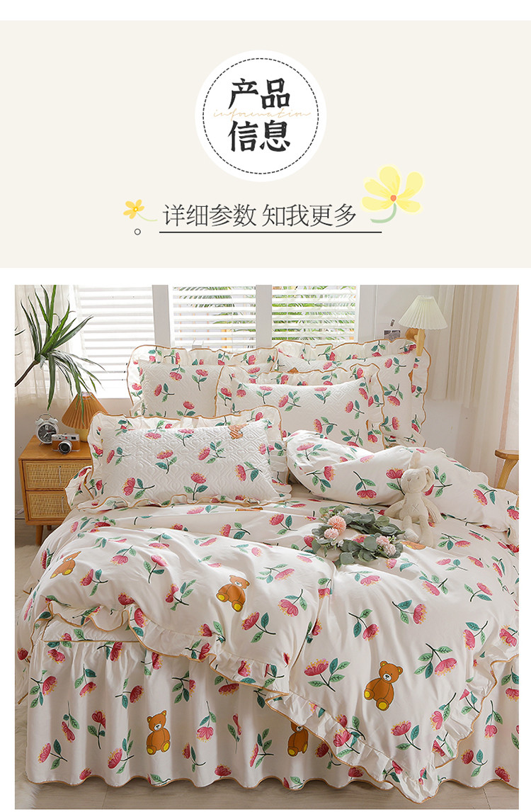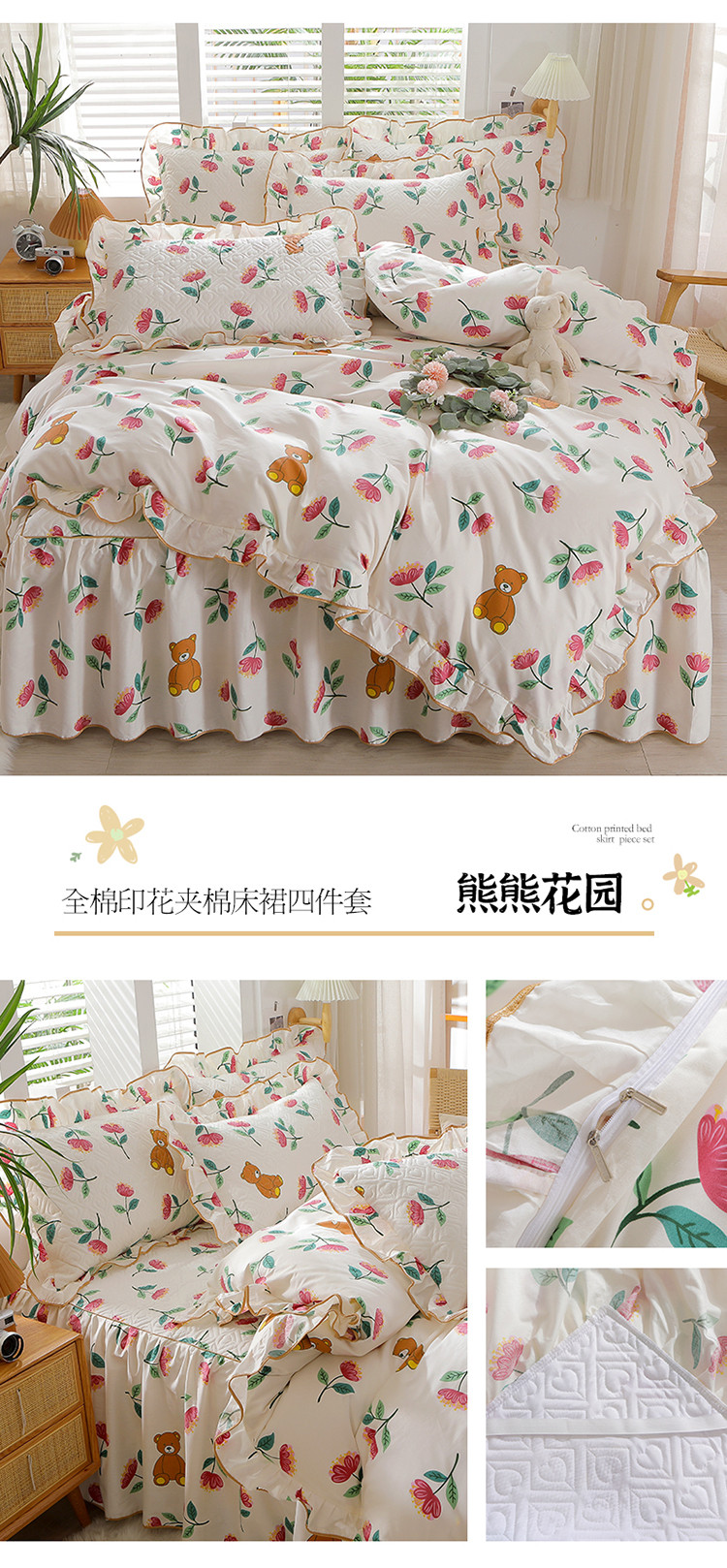 当前位置: 91家纺网 > 商品网购 > 床品套件 > 四件套 > 全棉普通四件套 > 宜凡家纺 2023新款全棉印花花边床裙四件套 熊熊花园