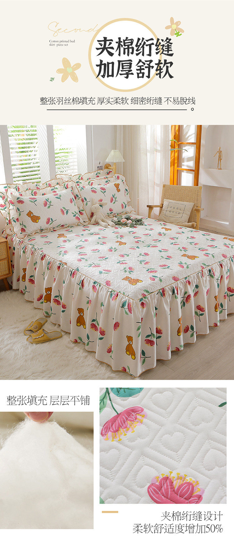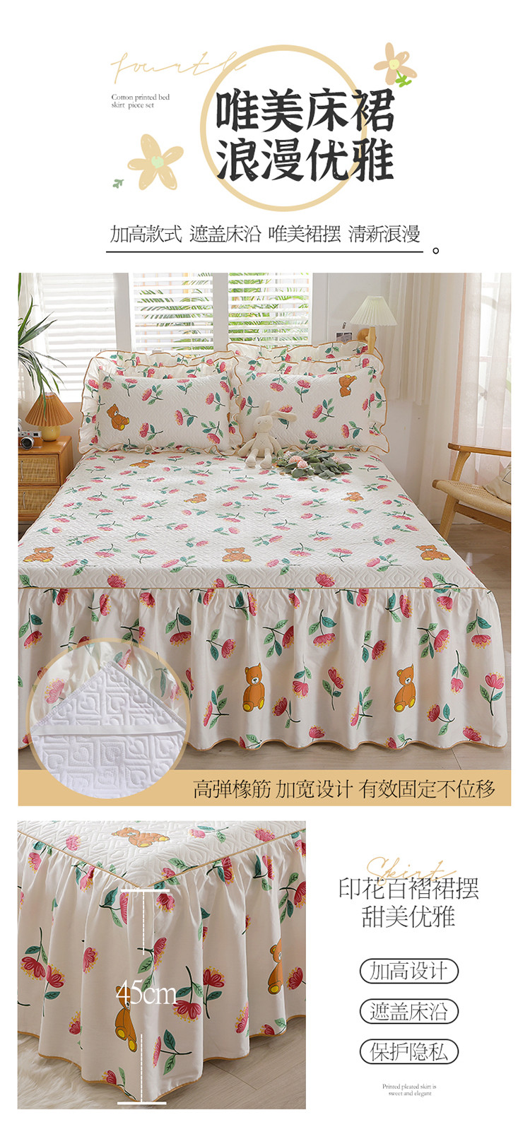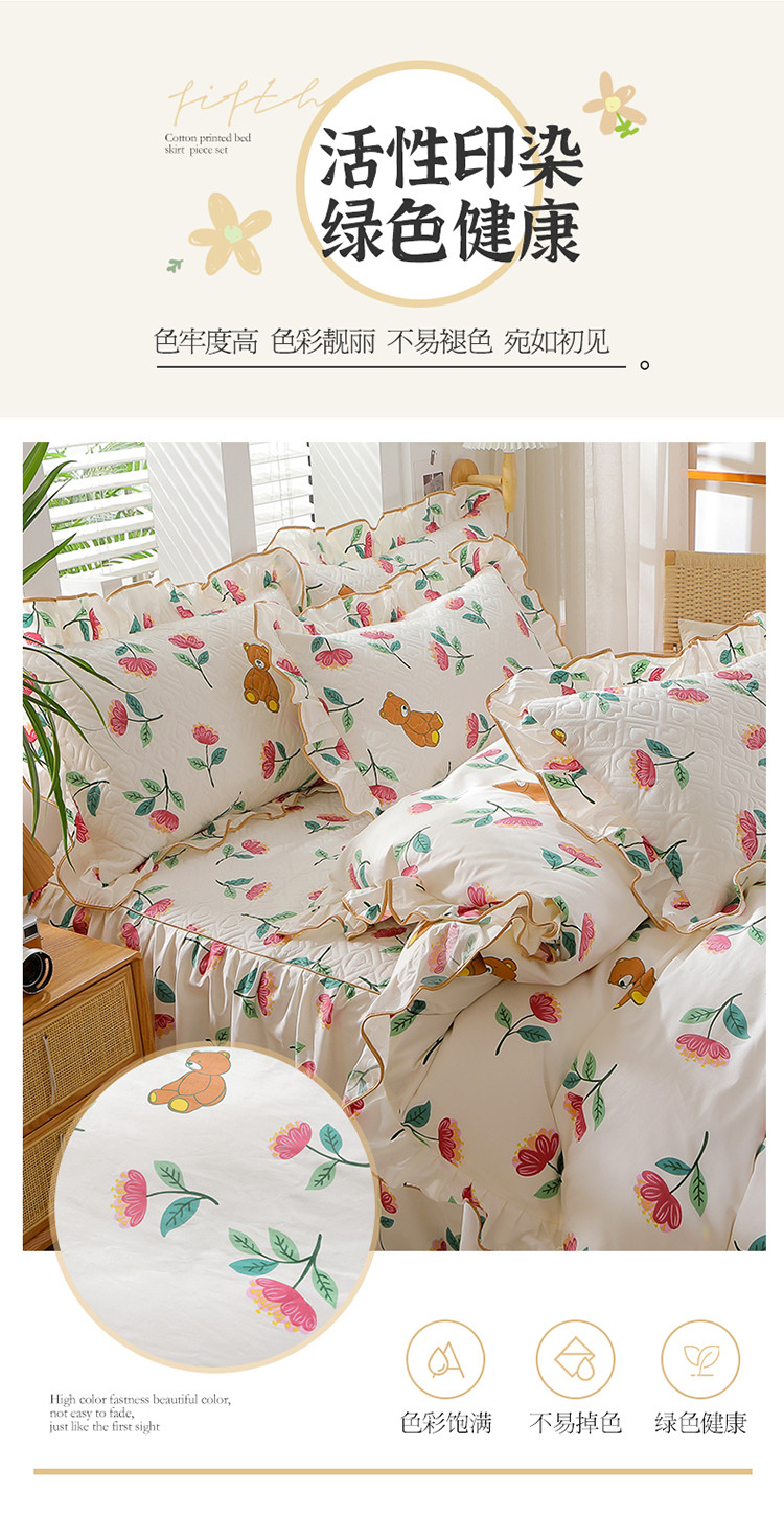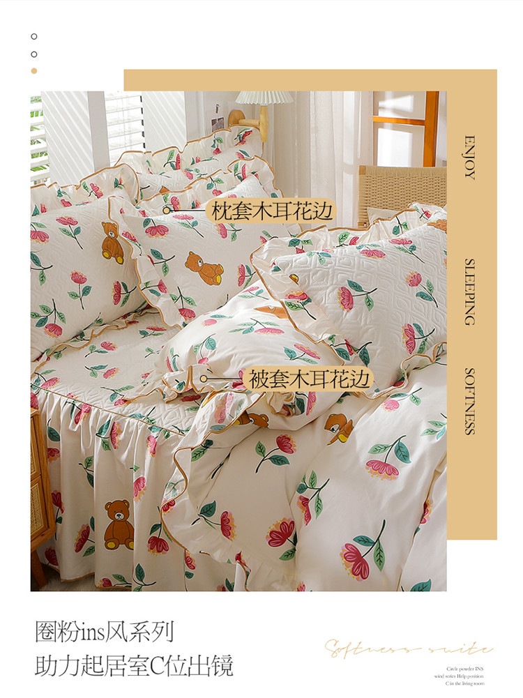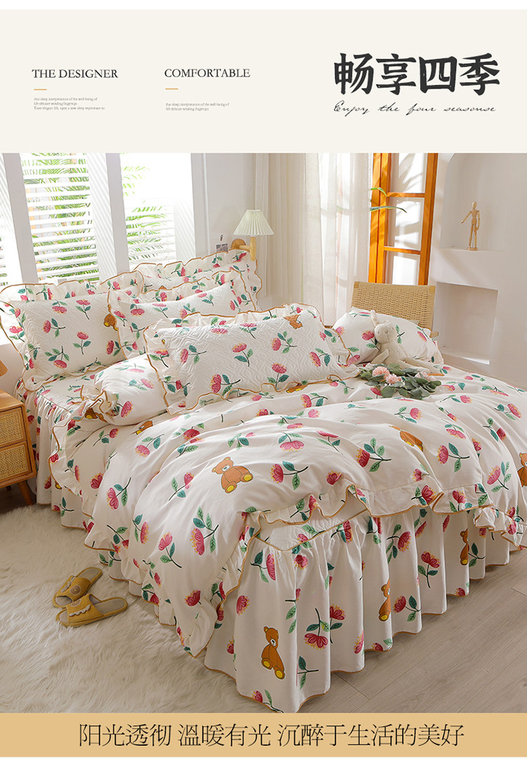 当前位置: 91家纺网 > 商品网购 > 床品套件 > 四件套 > 全棉普通四件套 > 宜凡家纺 2023新款全棉印花花边床裙四件套 熊熊花园