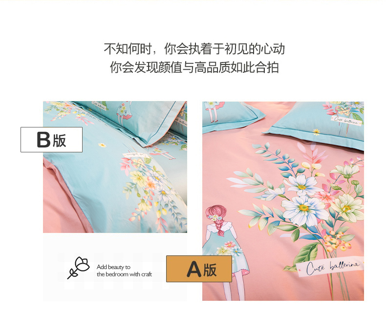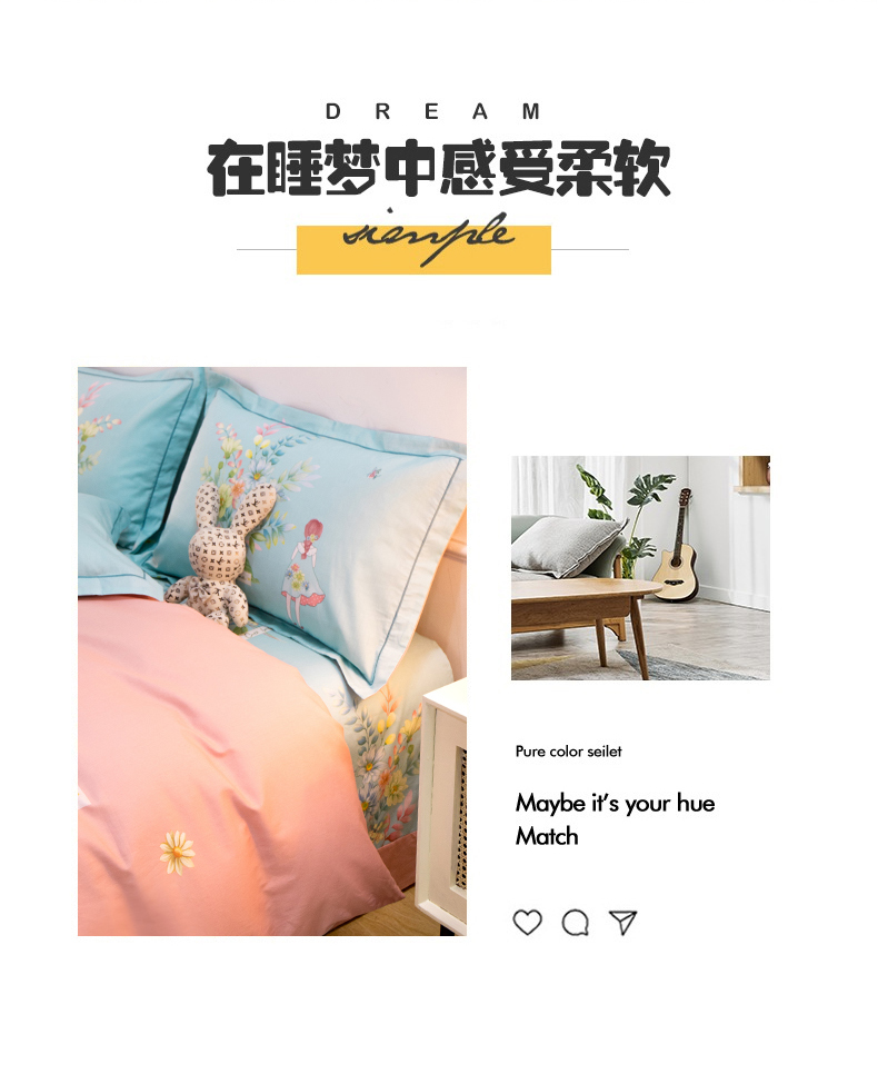 商品名称:雲归梦 2022新款全棉大版四件套 卡通花型 七色梦-粉