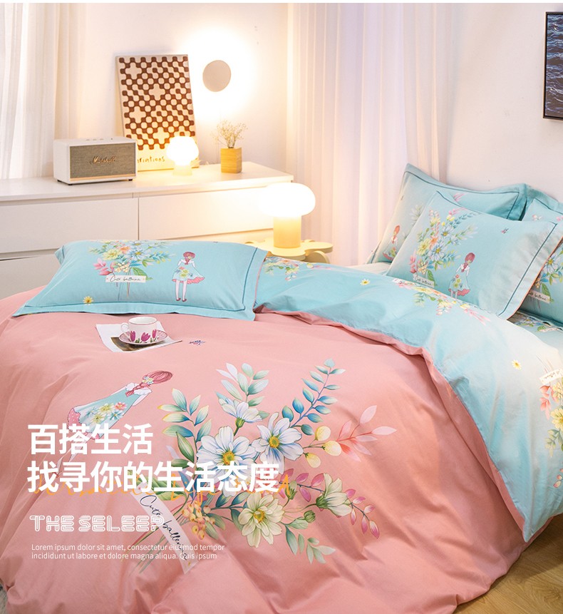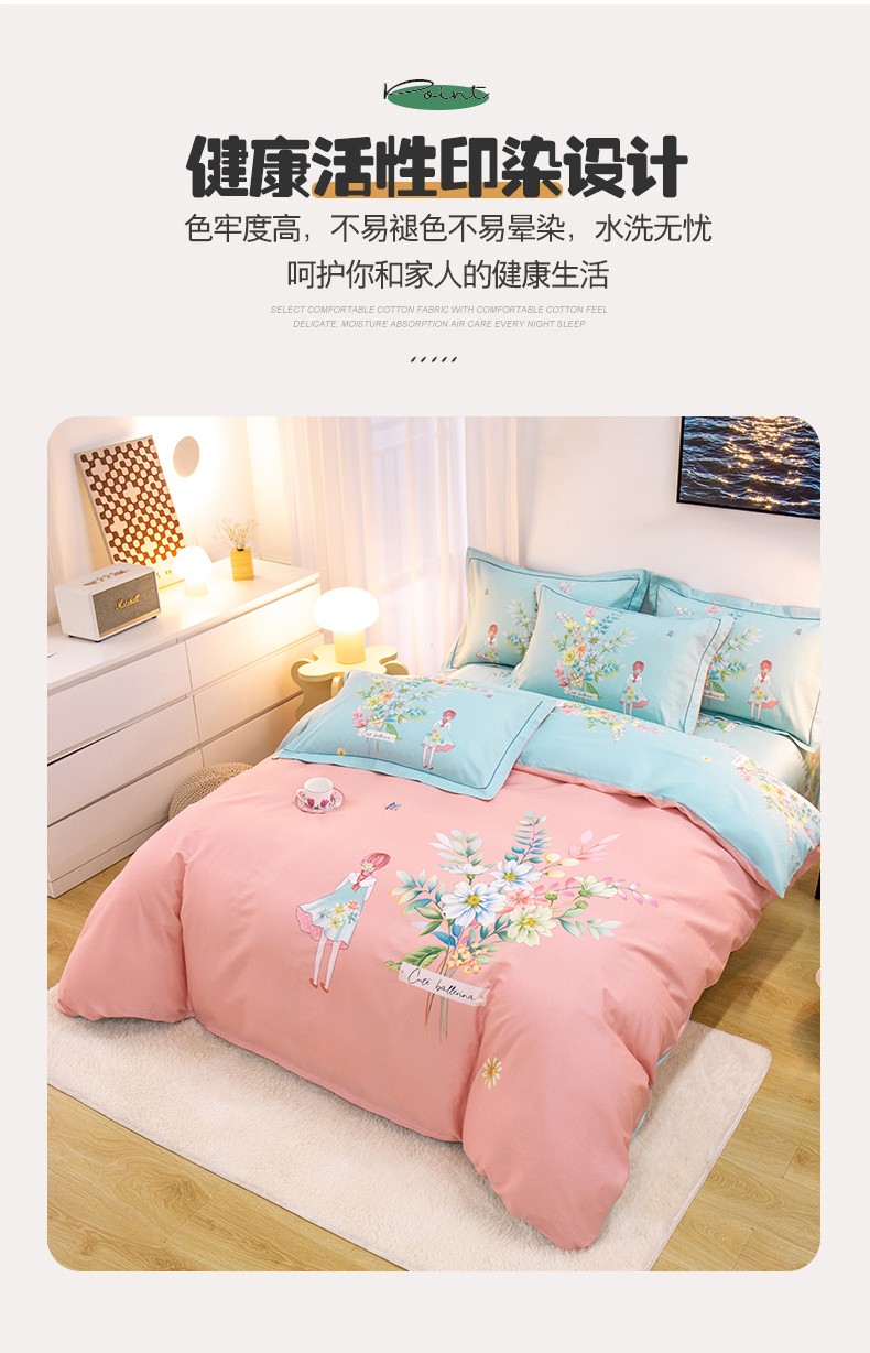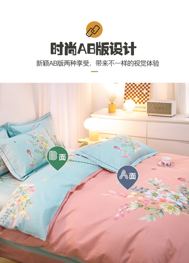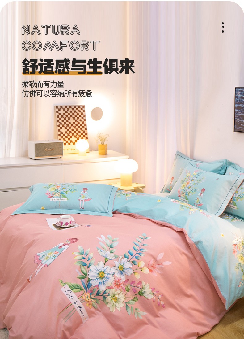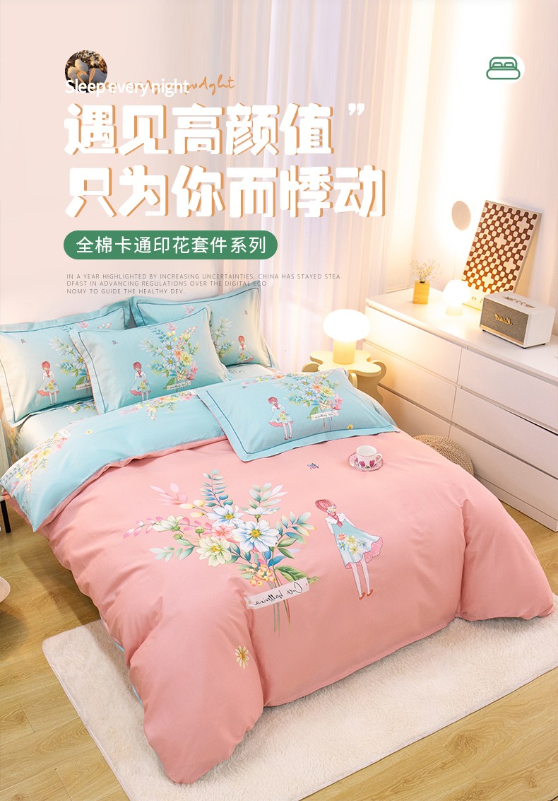 雲归梦 2022新款全棉大版四件套 卡通花型 七色梦-粉