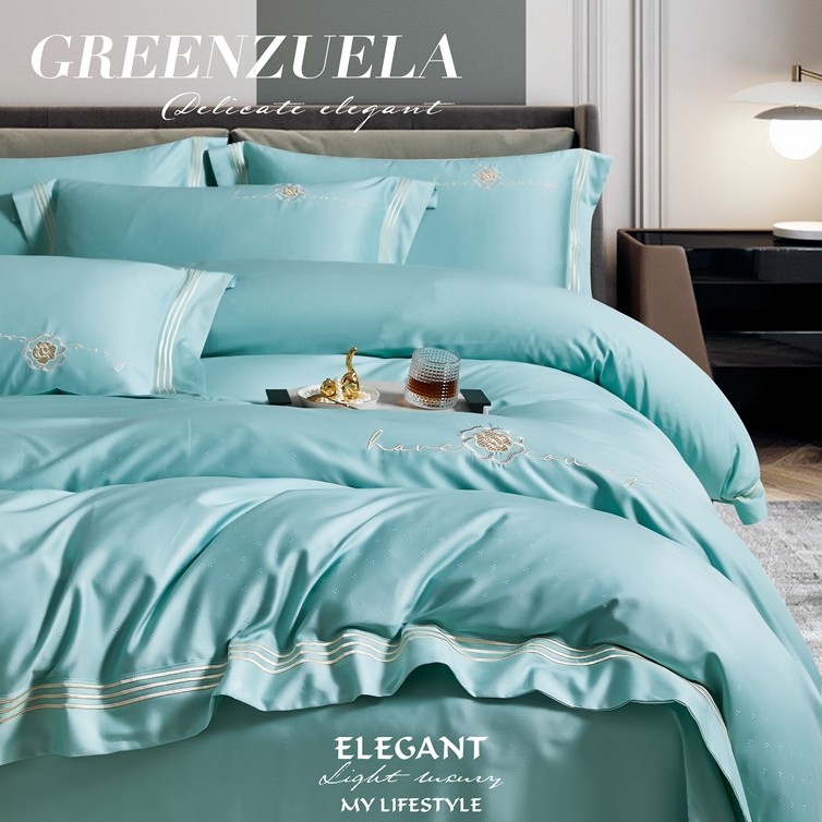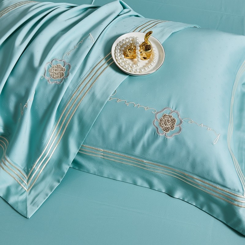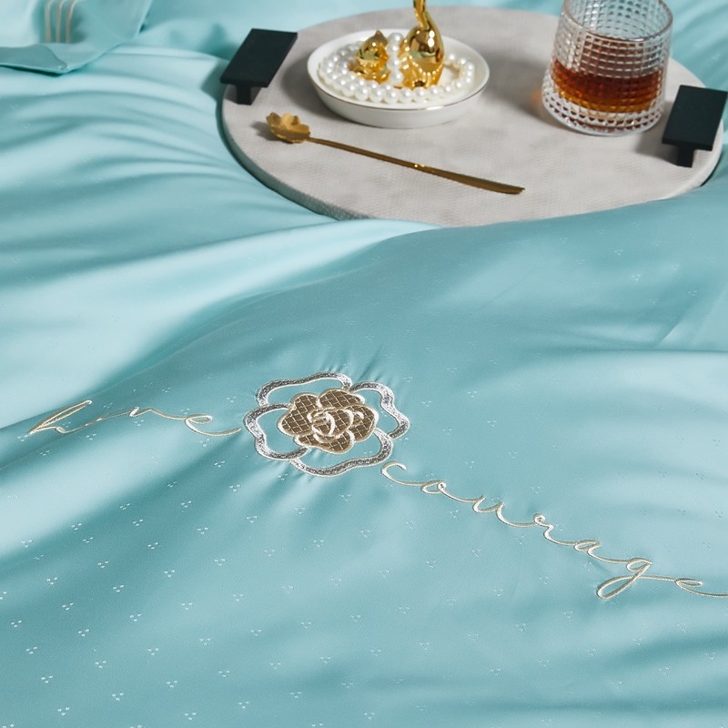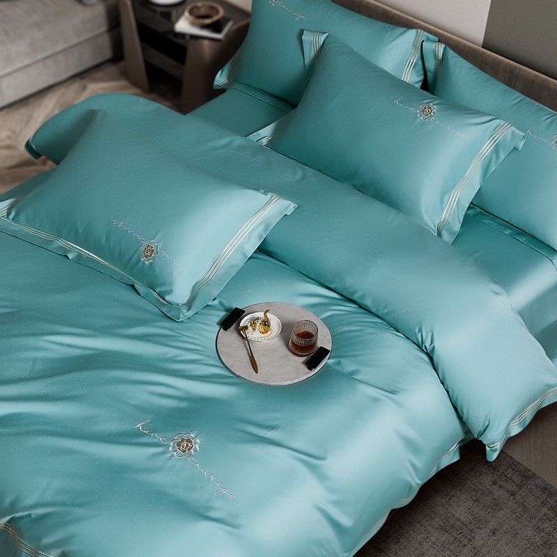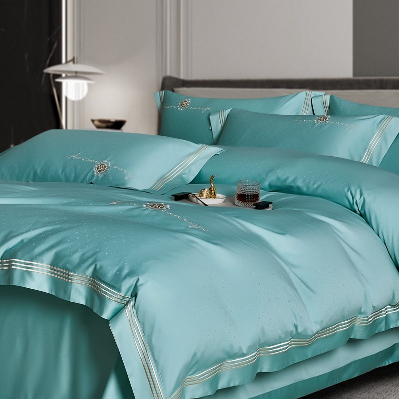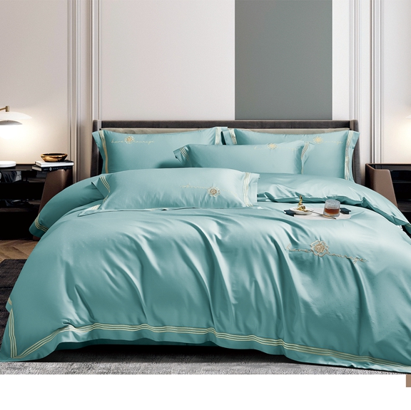 (总)玖玖爱家纺 2023新款120支贡缎长绒棉刺绣梦柔系列四件套,梦柔-香槟金,梦柔-香橙桔,梦柔-高级灰,梦柔-水蓝,梦柔-芙蓉玉