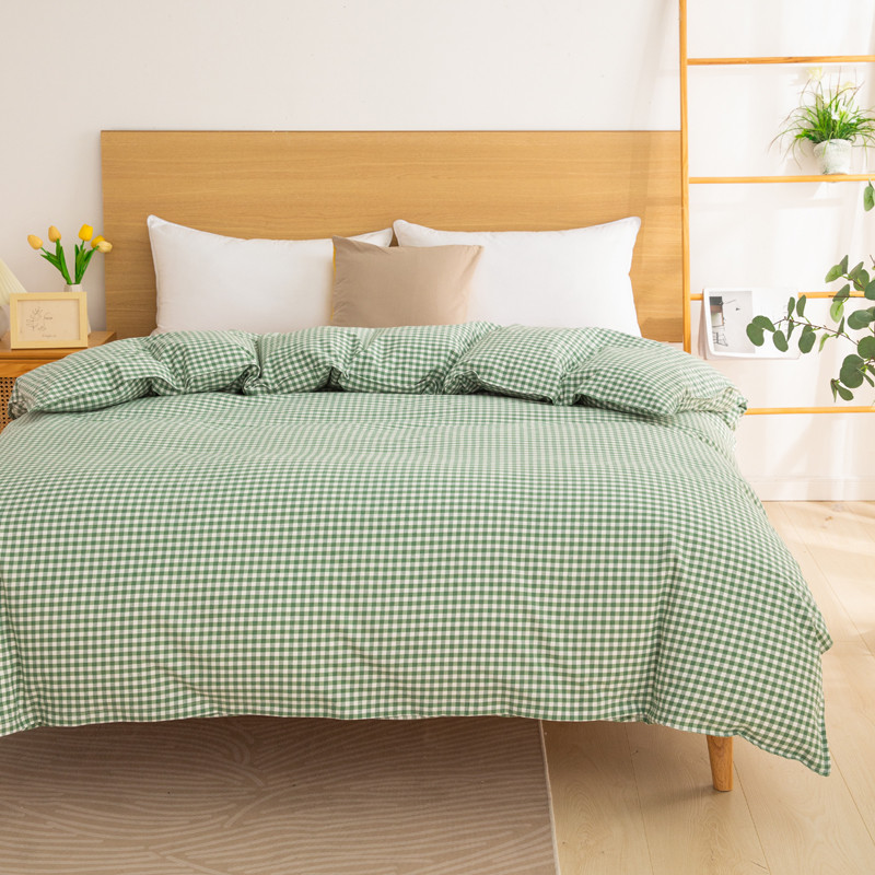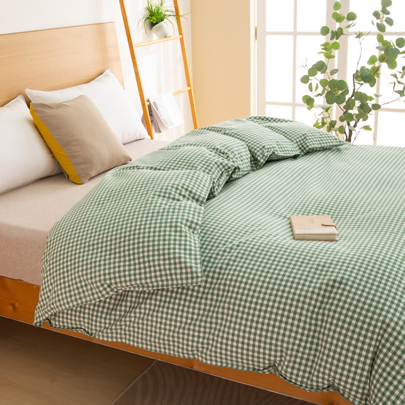杜先生2023新全棉无印风老粗布单双针被套直播爆款 无印风格子-绿