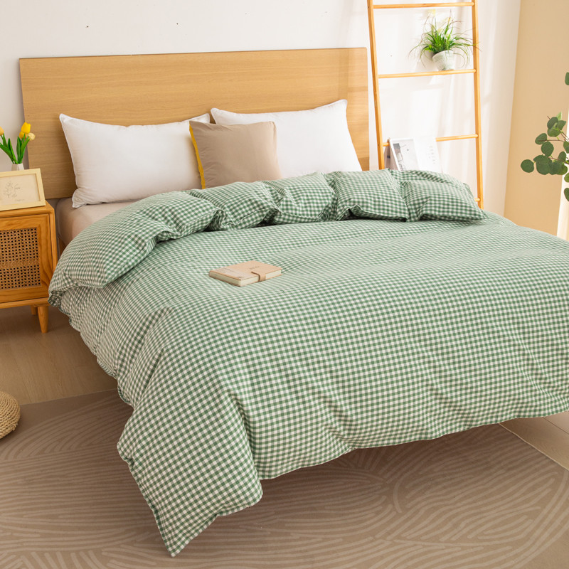 商品名称:杜先生2023新全棉无印风老粗布单双针被套直播爆款 无印风格子-绿