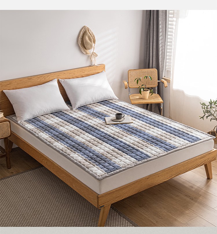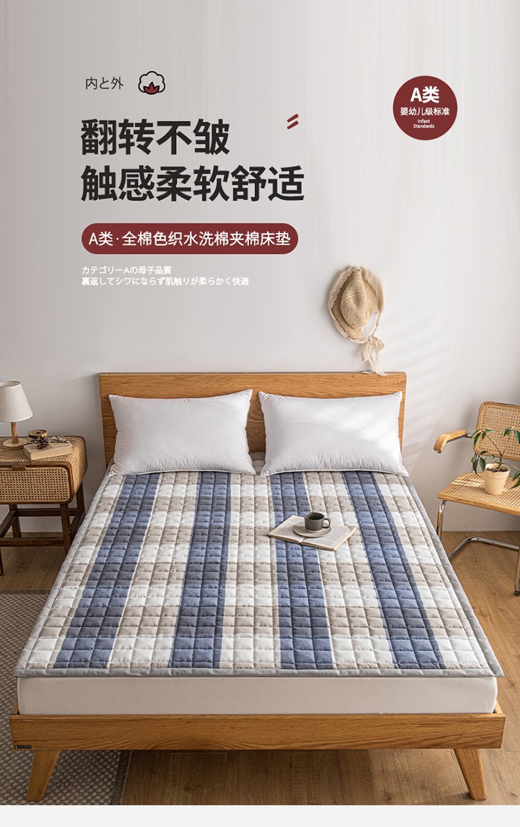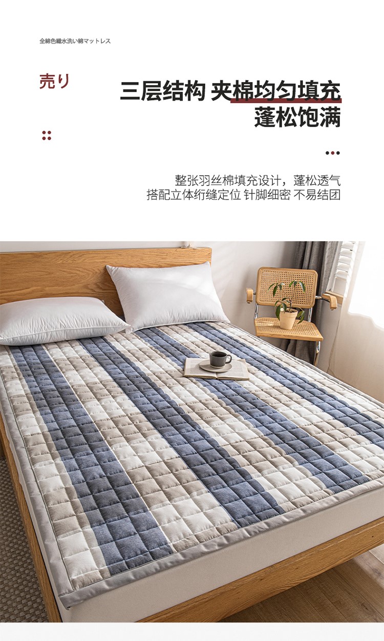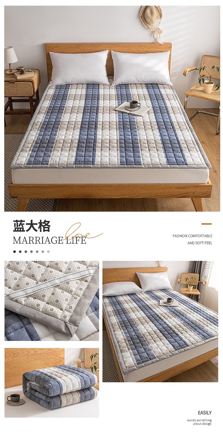 商品名称:东宇 2022新款A类全棉色织水洗棉夹棉床垫 蓝大格