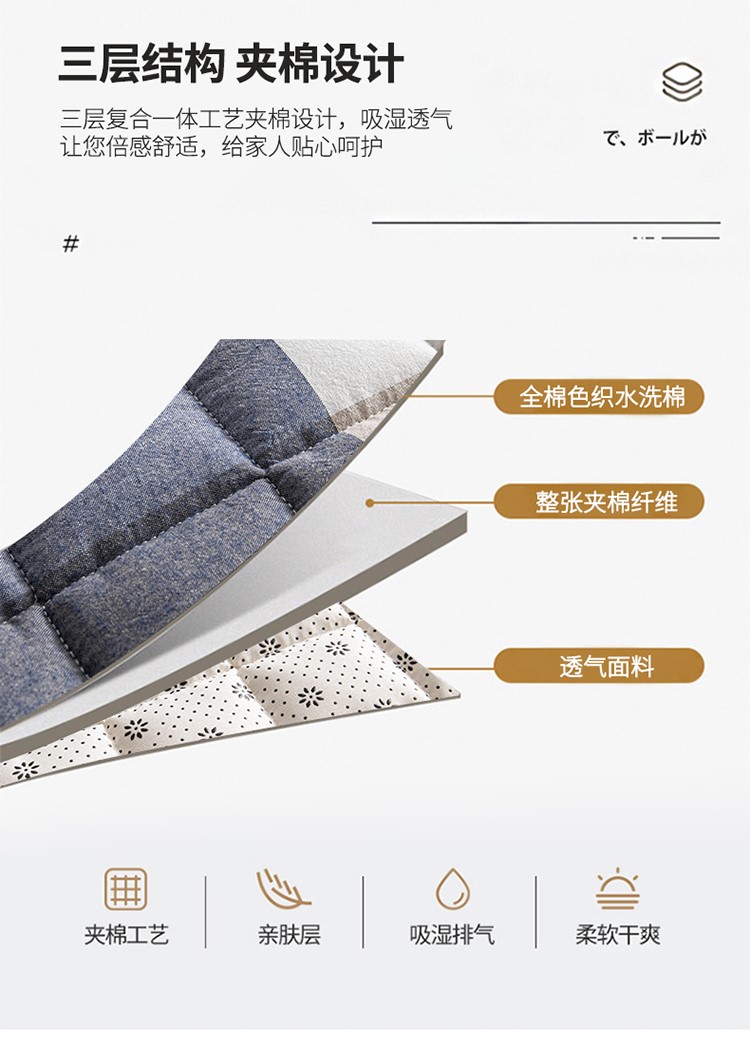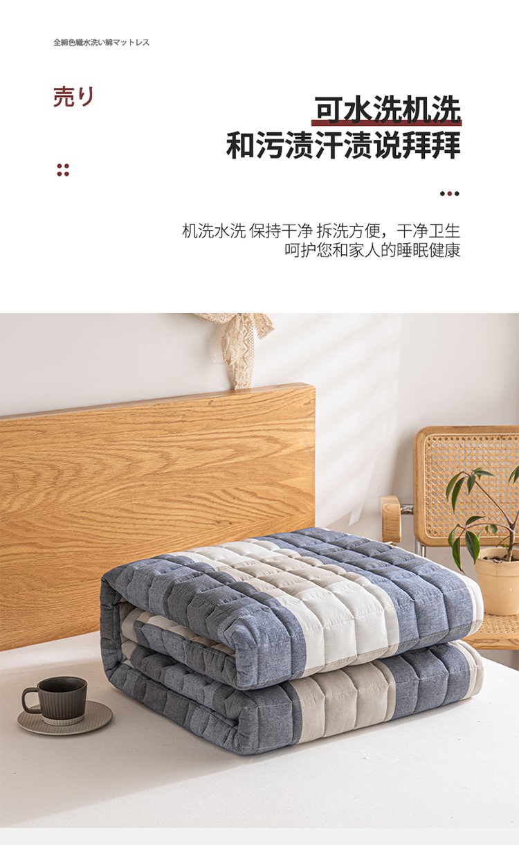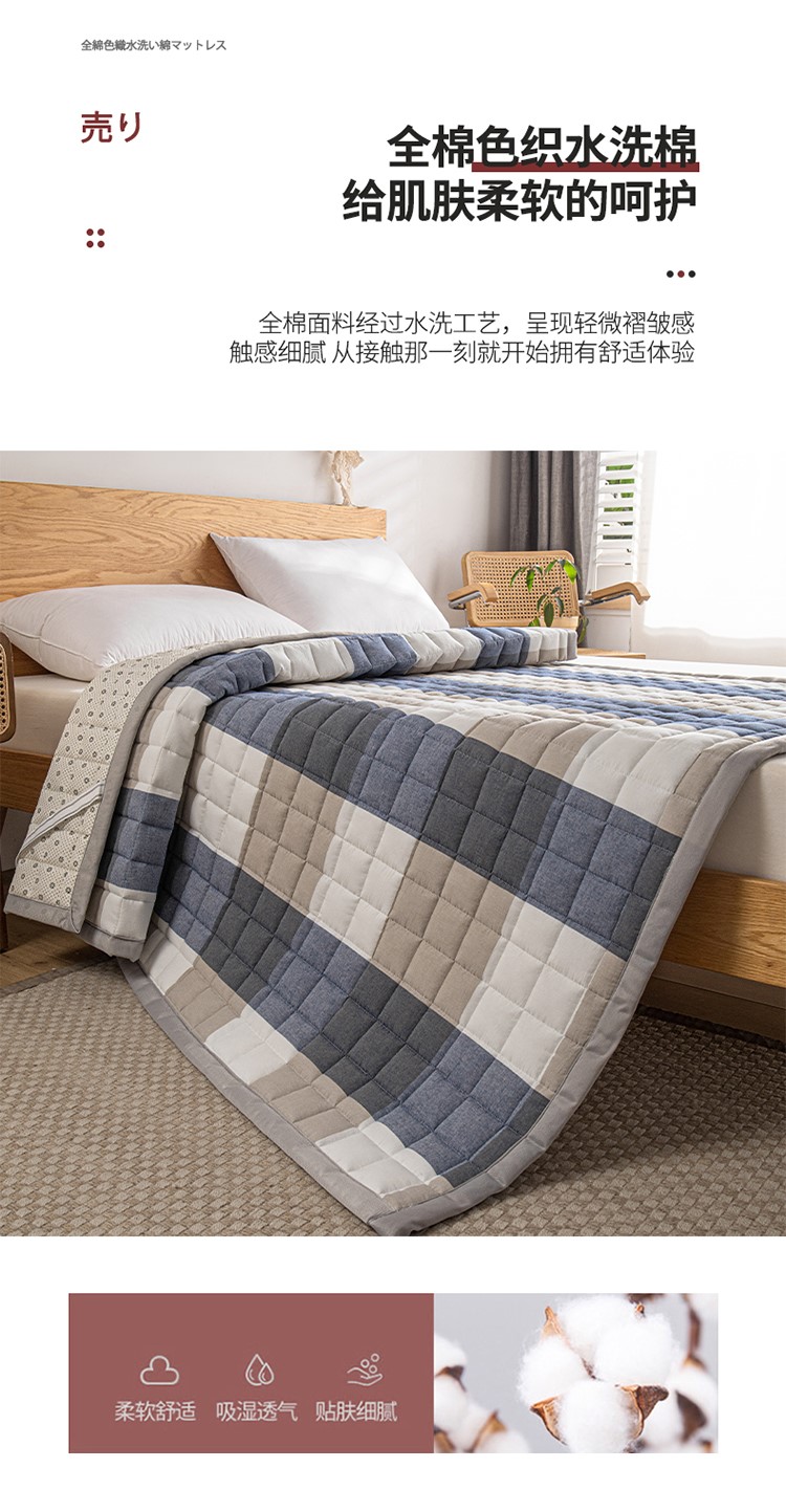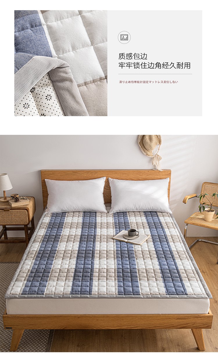 商品名称:东宇 2022新款A类全棉色织水洗棉夹棉床垫 蓝大格
