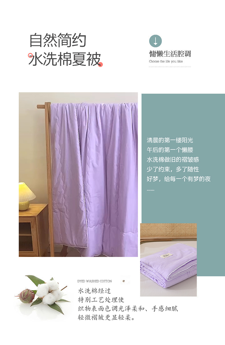 (总)德芙 2023新款水洗棉斜纹夏被,海藻绿Seaweed green,湖蓝Lake blue,兰灰Blue grey,木槿紫Mauve,牛奶白Milk,西瓜红Watermelon red