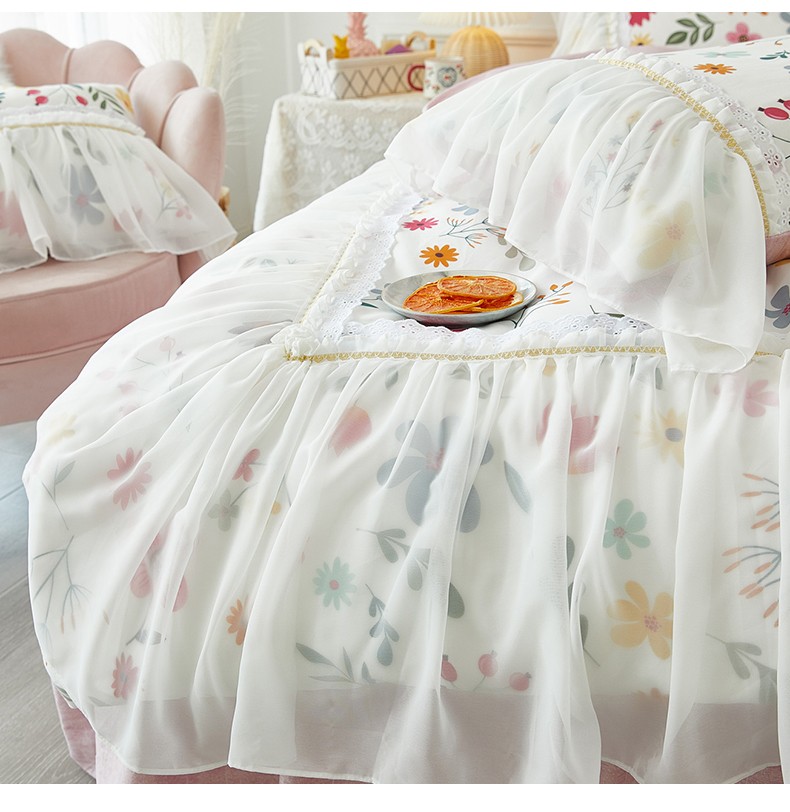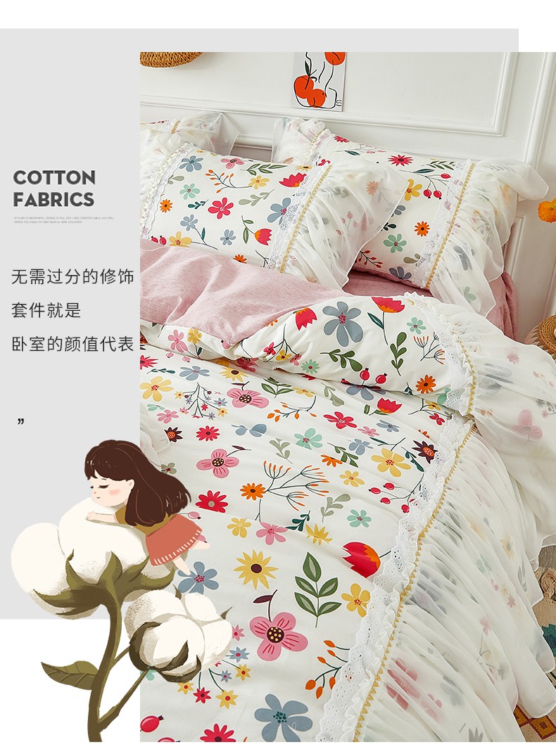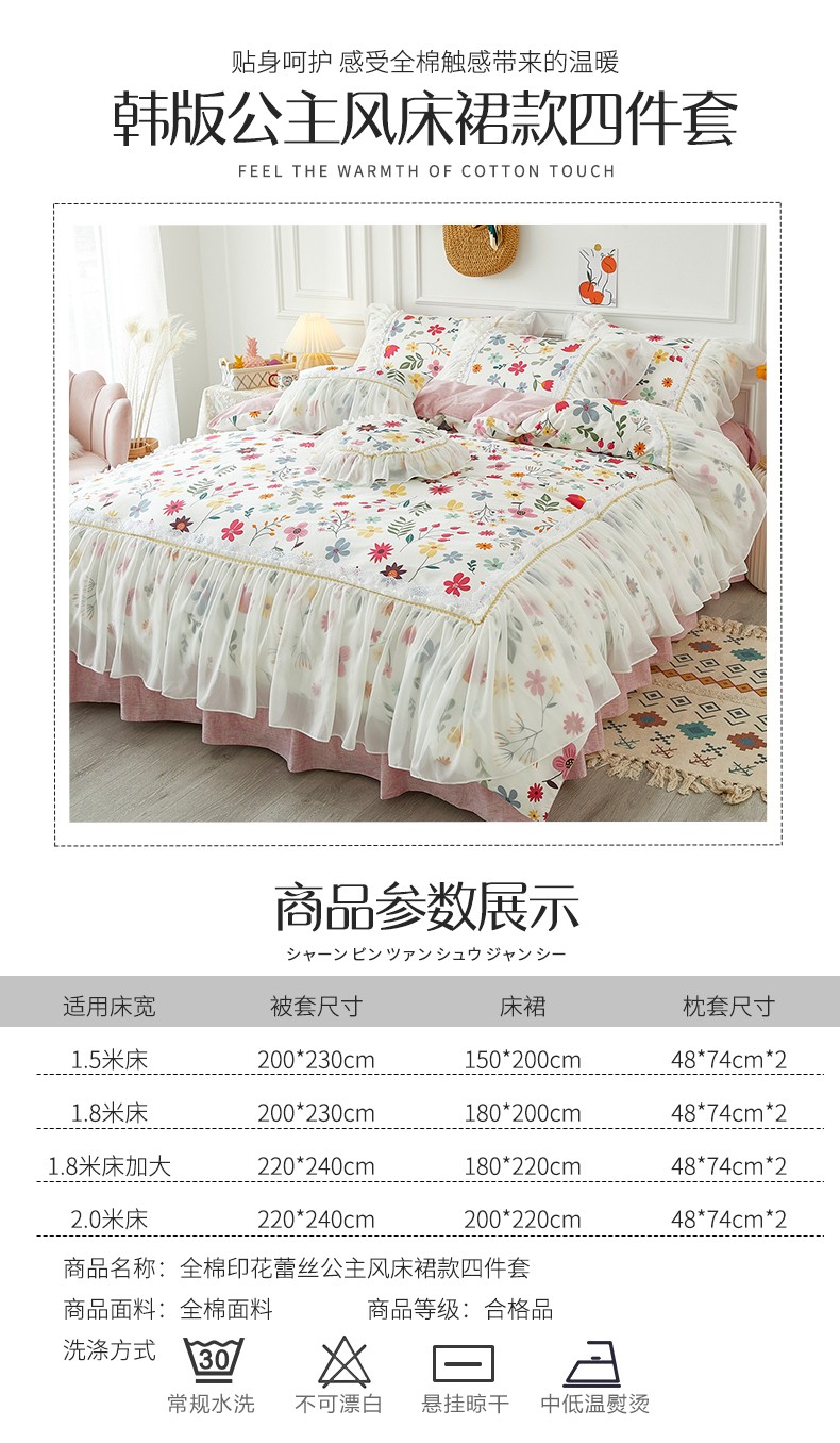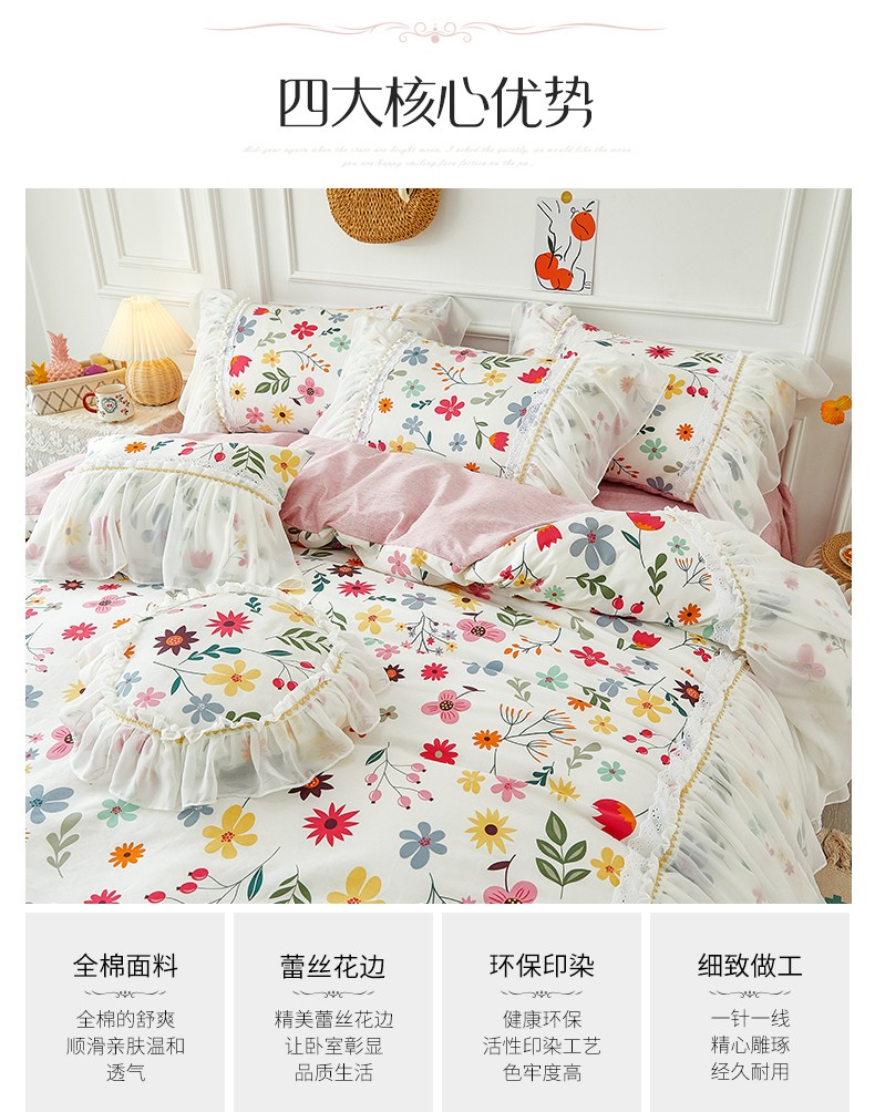 商品名称:亲亲公主 2025新款仙女款公主风蕾丝床裙四件套 花舞风情