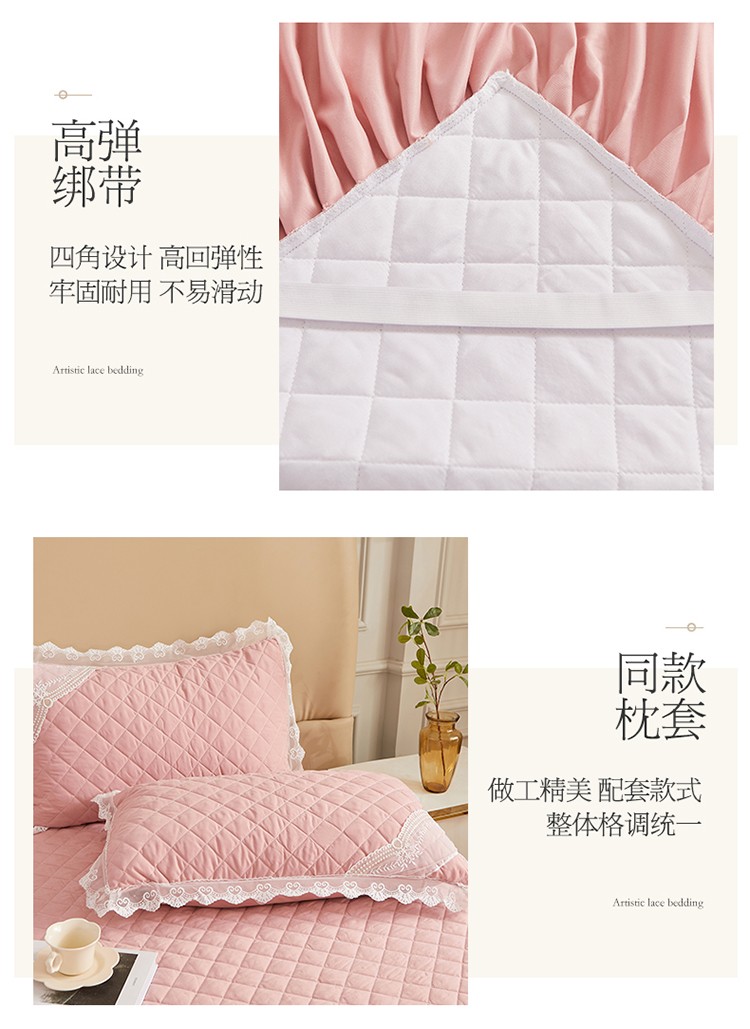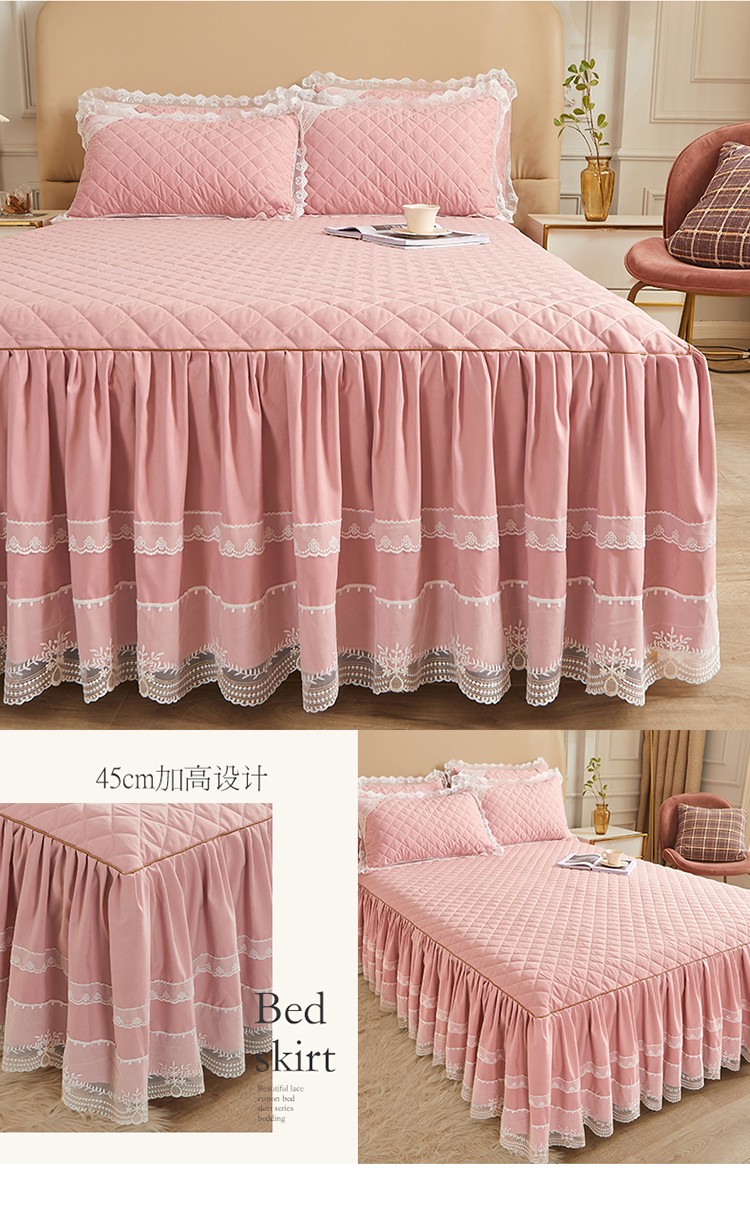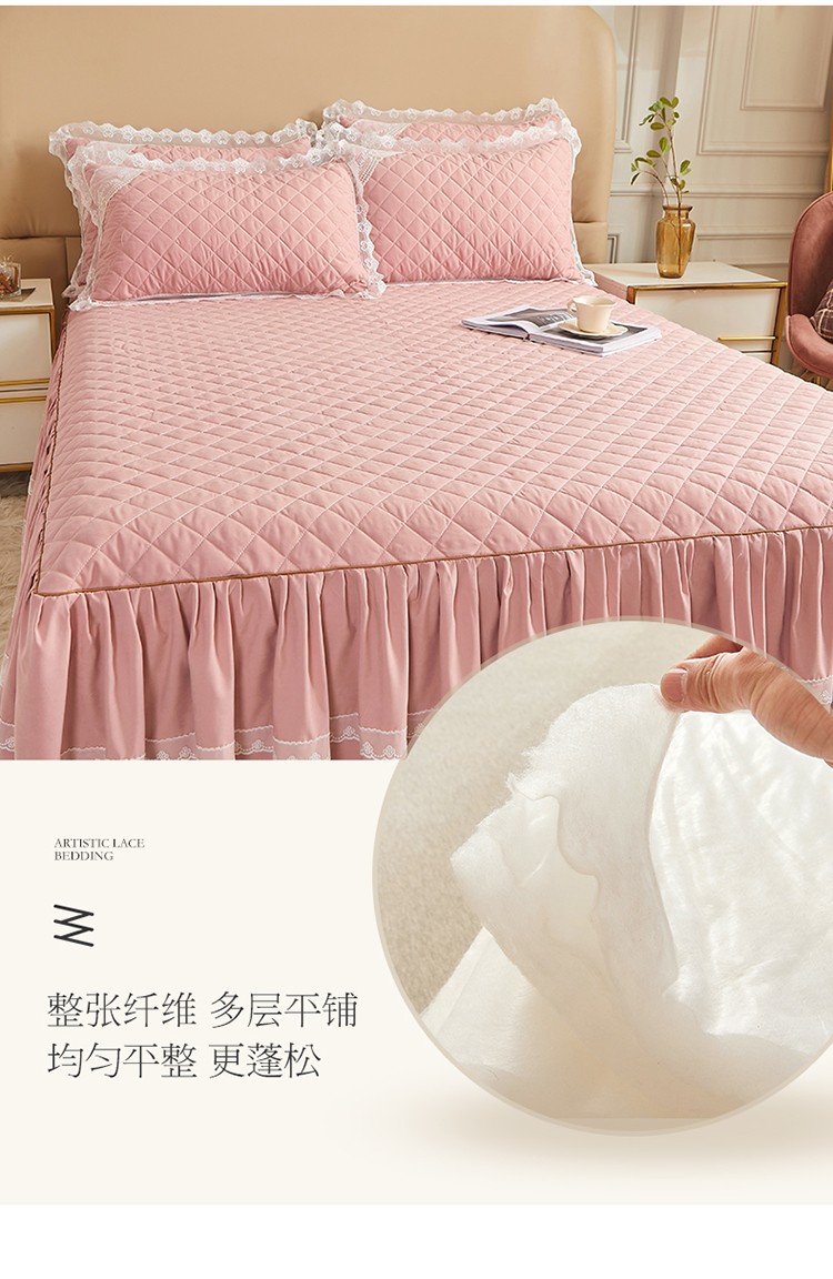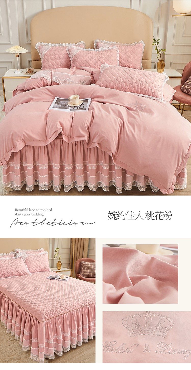 网红馆 2025新款唯美蕾丝夹棉床裙四件套婉约佳人 桃花粉
