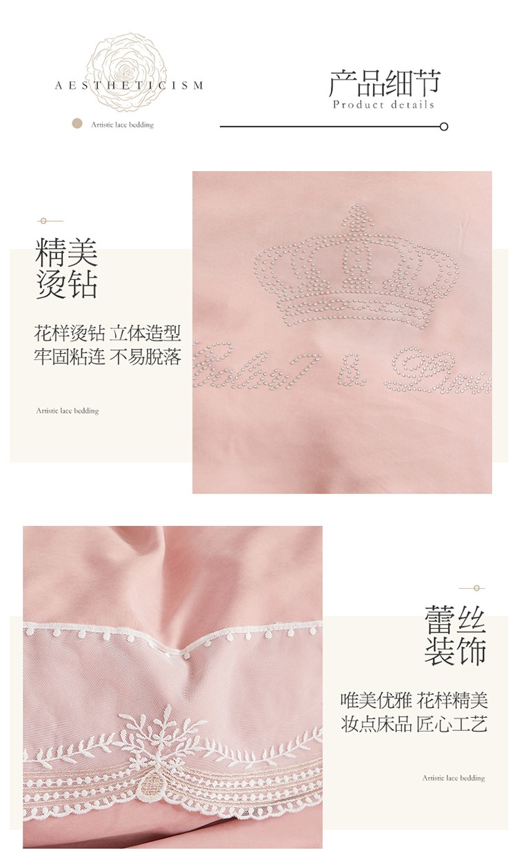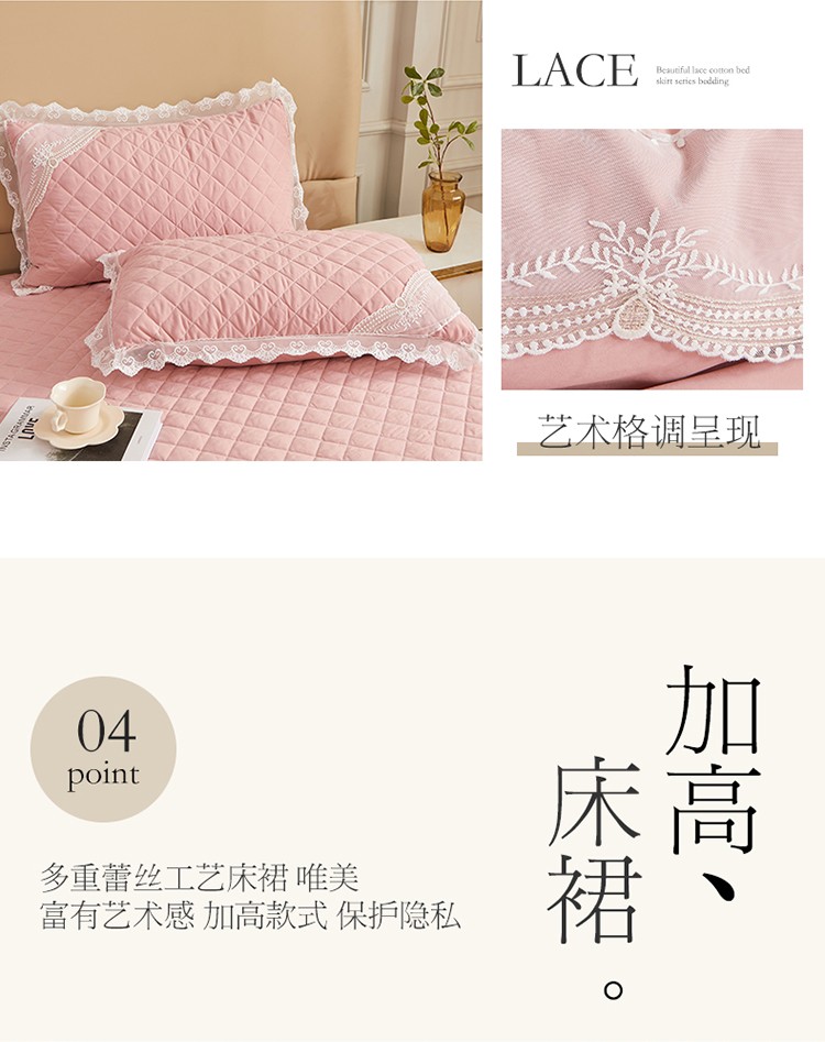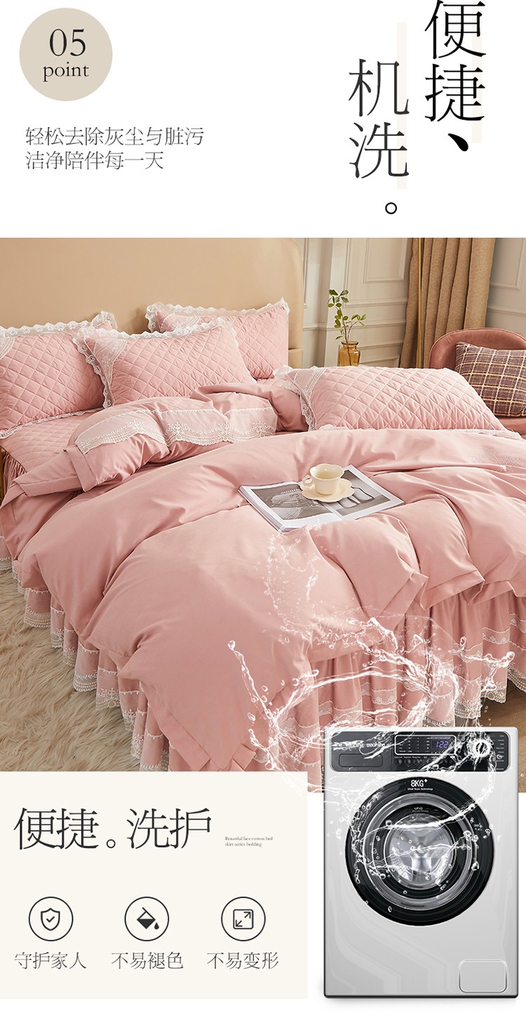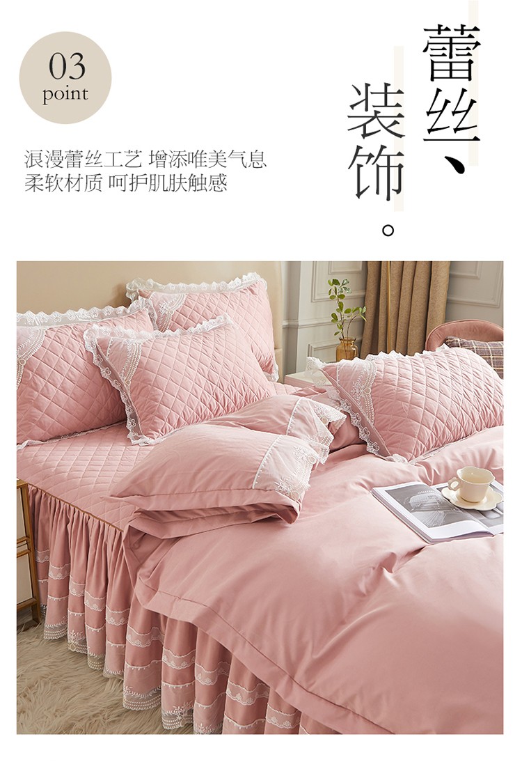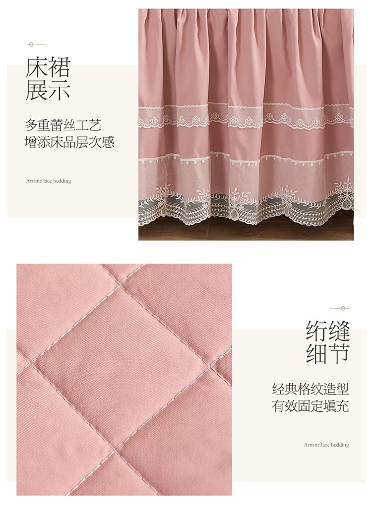 商品名称:网红馆 2025新款唯美蕾丝夹棉床裙四件套婉约佳人 桃花粉
