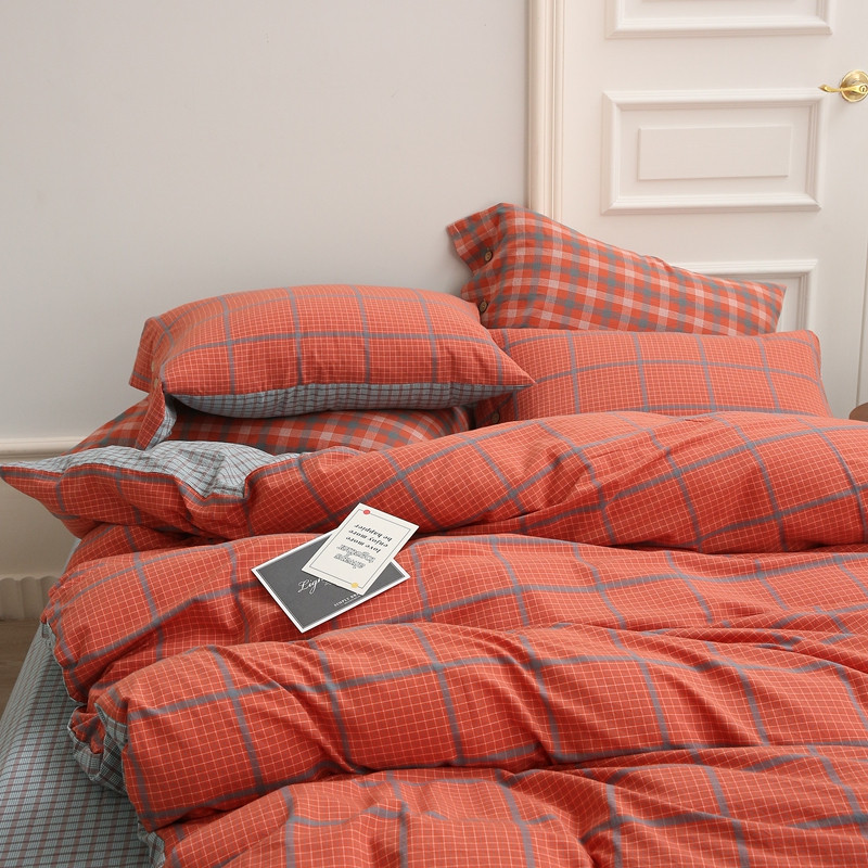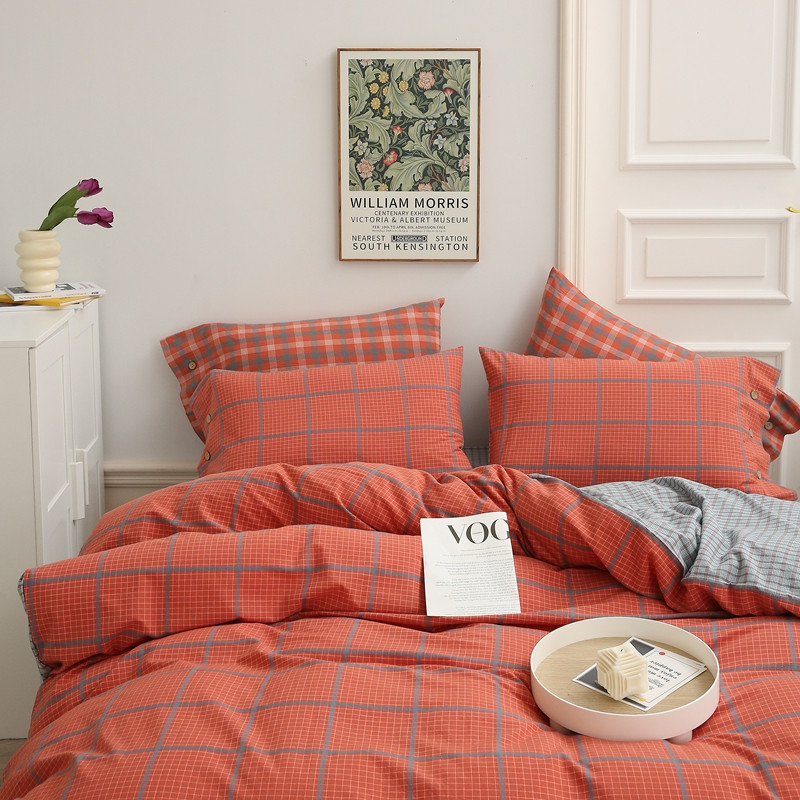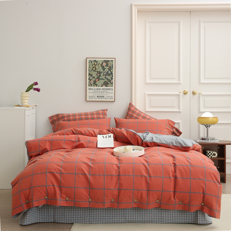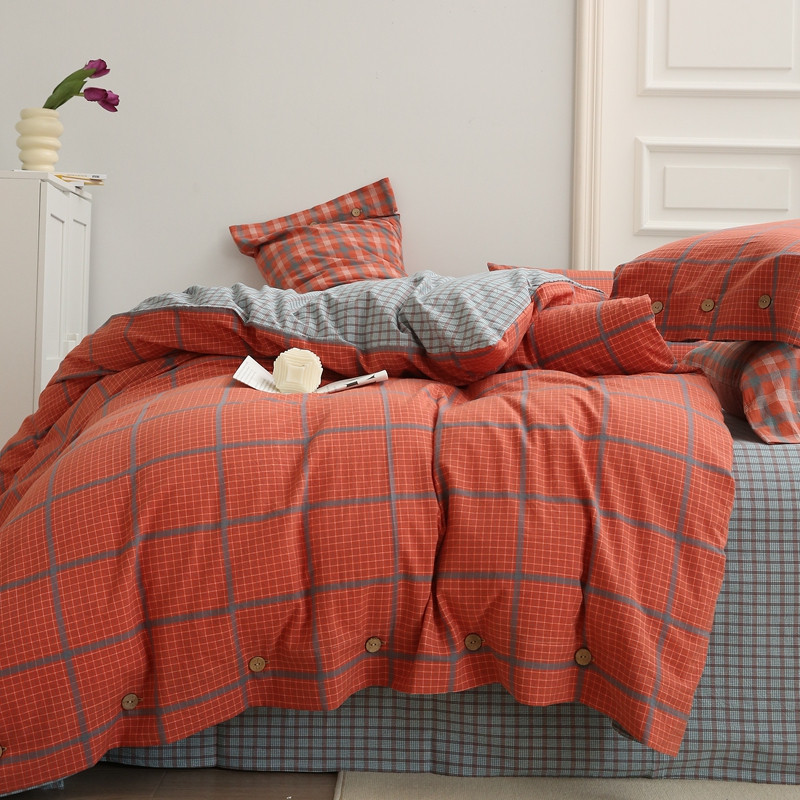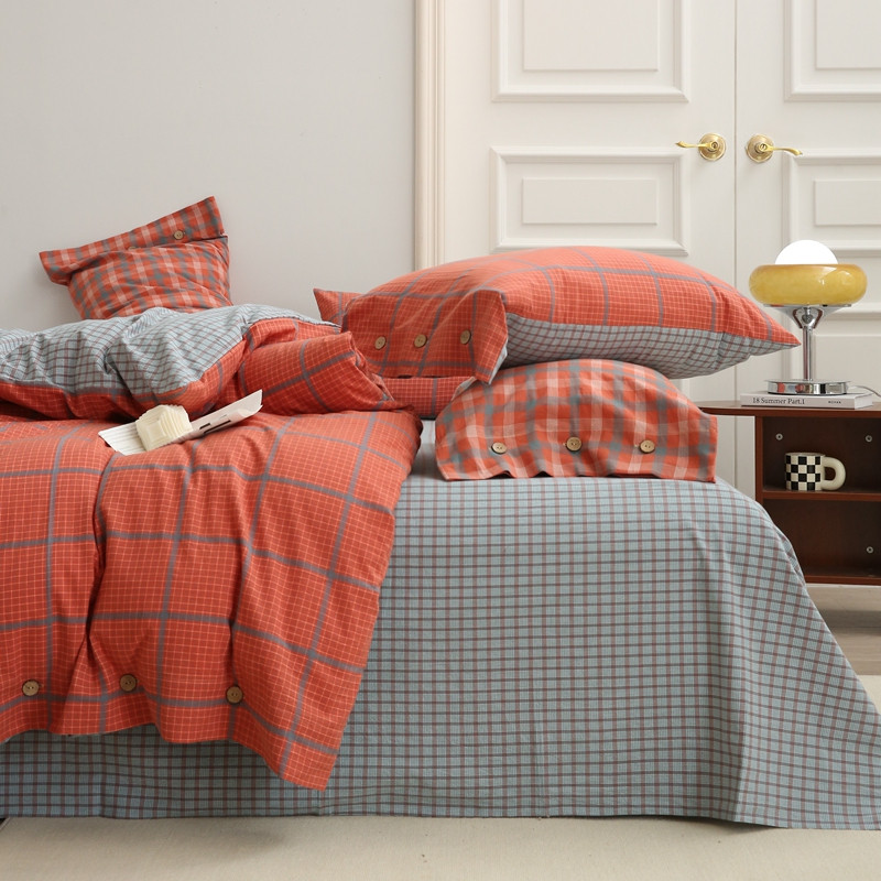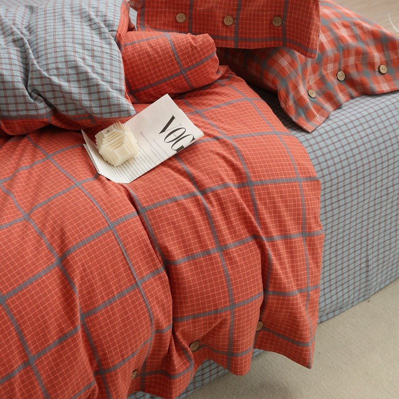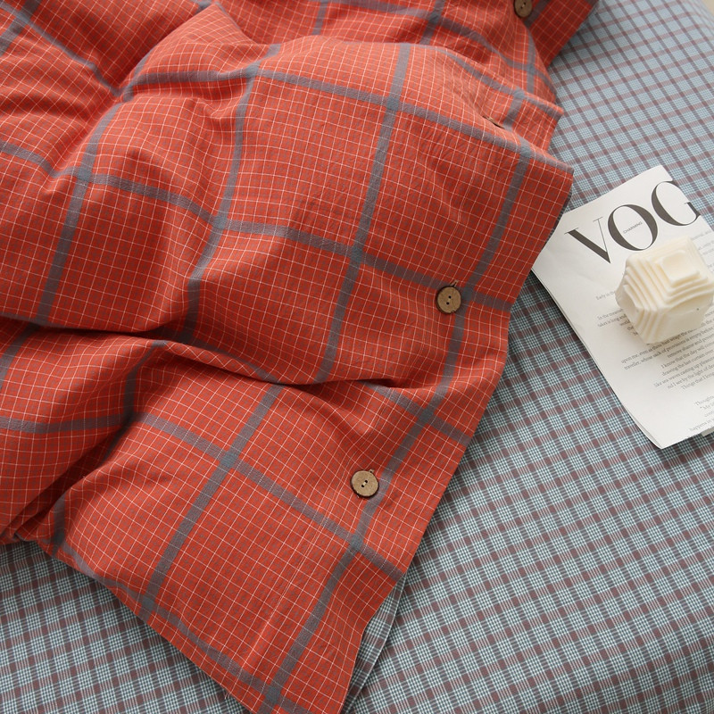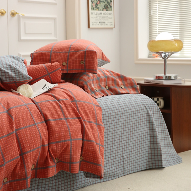 榻尚 经典田园格子全棉色织水洗棉四件套 蒂曼(红蓝)
