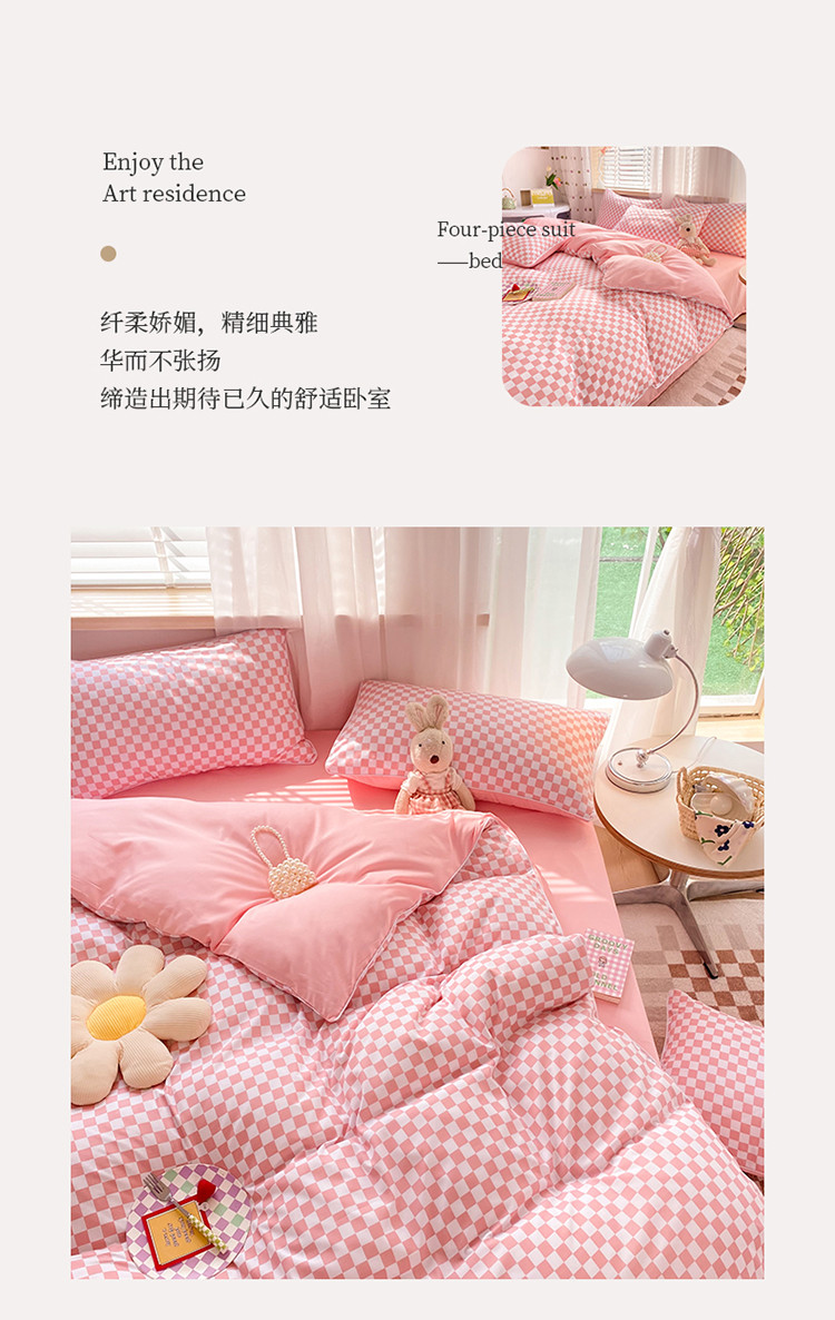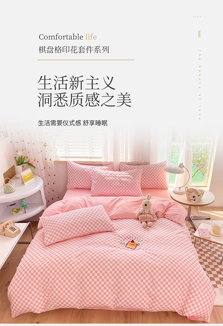 当前位置: 91家纺网 > 商品网购 > 床品套件 > 四件套 > 大米家居 2023新款海岛棉小包边四件套-棋盘格 棋盘格-粉色
