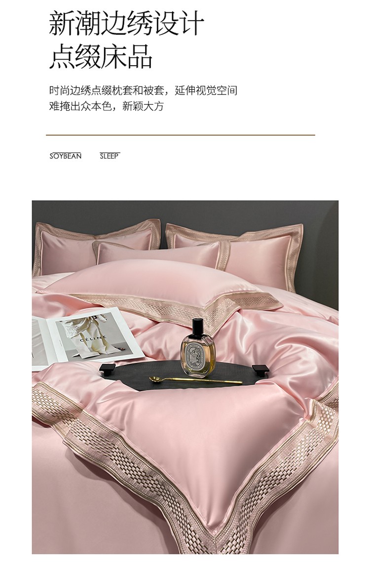 (总)欧乐蒂 2025新款欧式水洗贡缎全棉刺绣四件套-欧雅终版,宾利蓝,玉色,白色,粉色,豆沙,酒红,香槟,高级灰