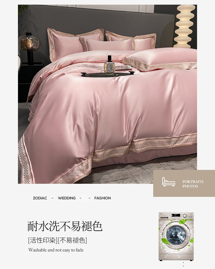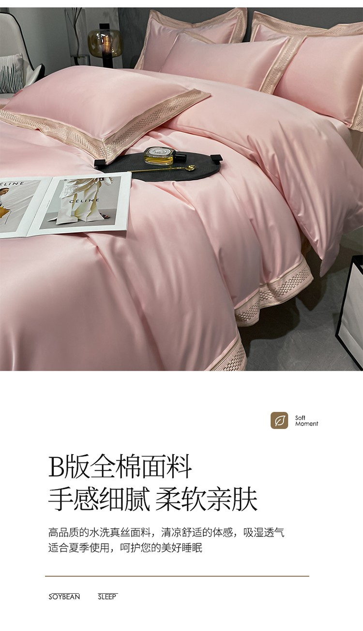 商品名称:欧乐蒂 2022新款A版水洗真丝B版全棉四件套-简爱 简爱-粉色