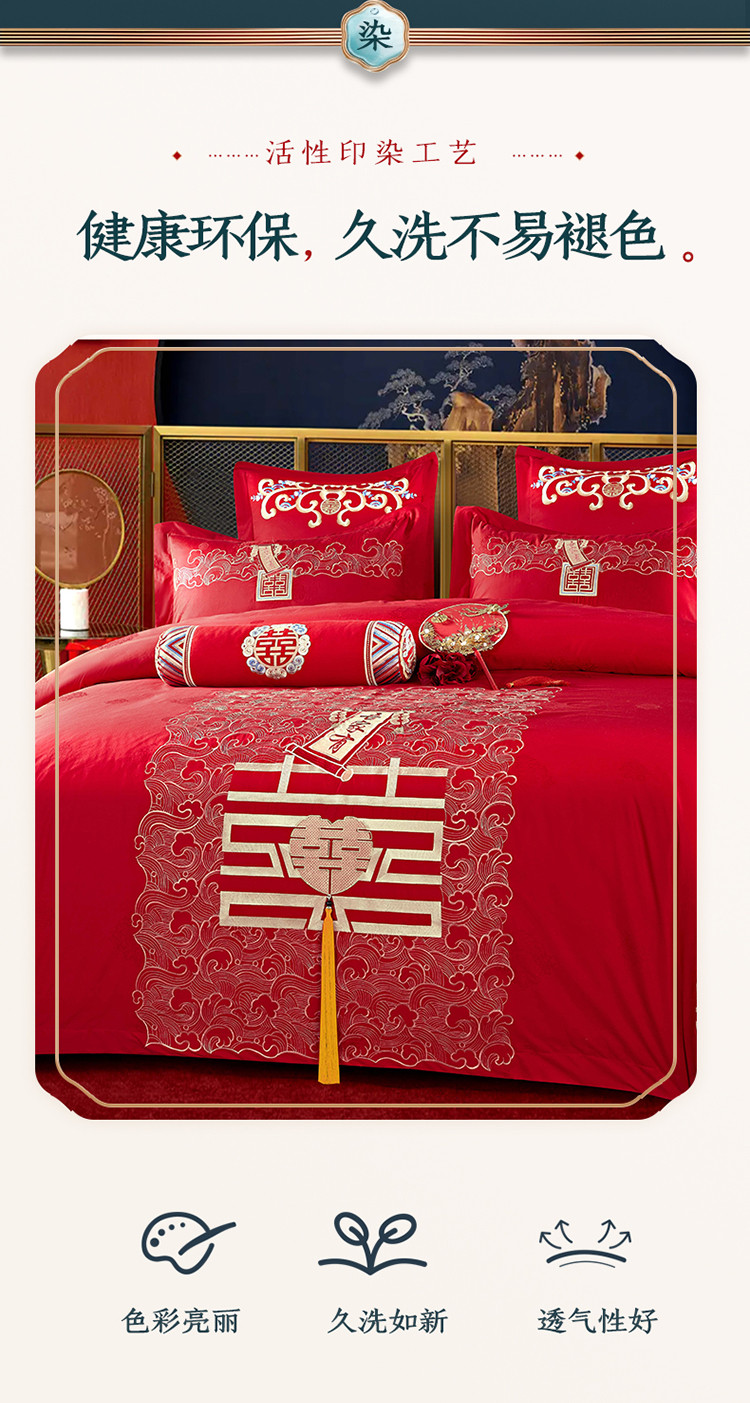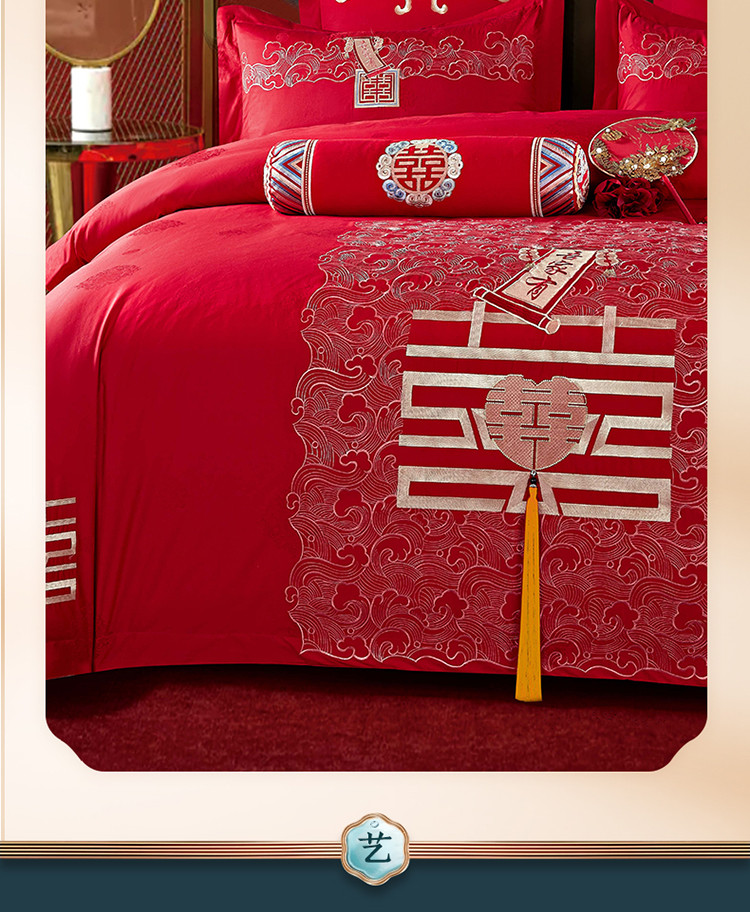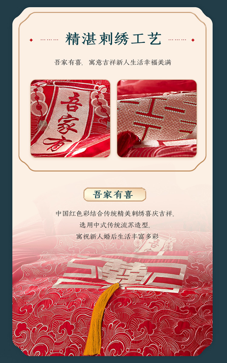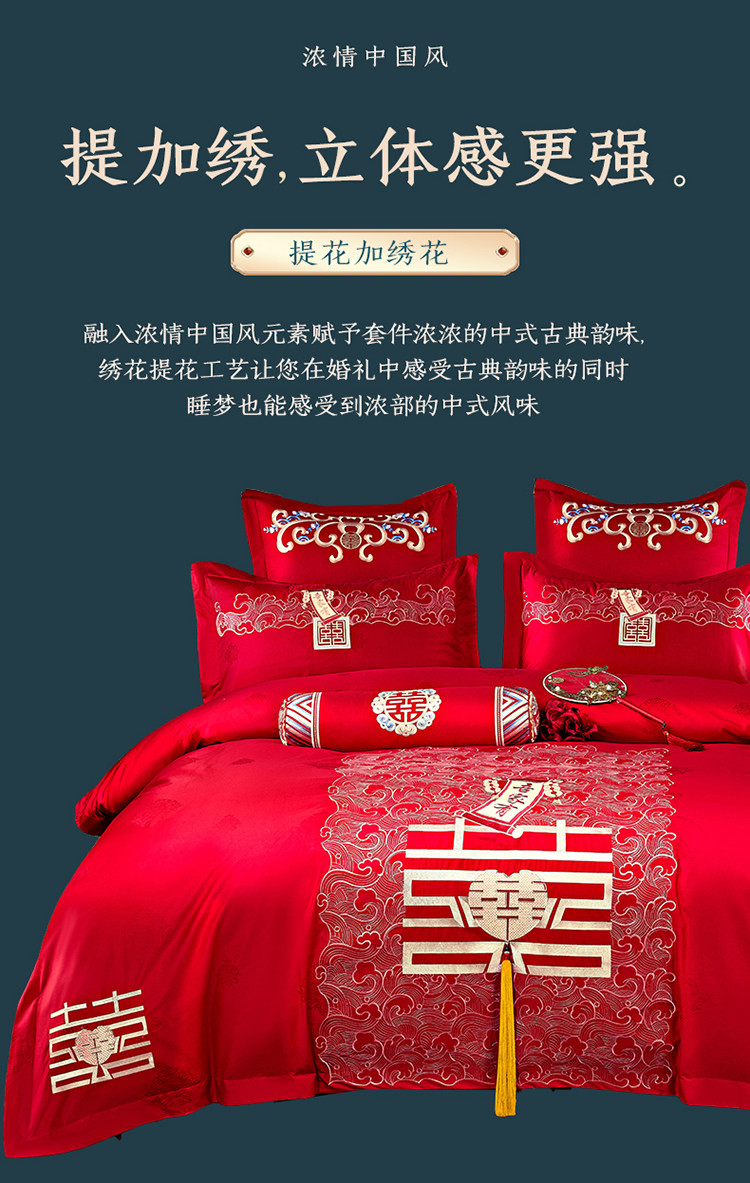 当前位置: 91家纺网 > 商品网购 > 床品套件 > 四件套 > 婚庆四件套 > 2025新款120S全棉刺绣贡缎提花婚庆四件套多件套吾家有喜