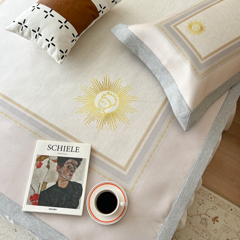 (总)时年家纺 2025新款全棉纯棉生态磨毛嵌绳款系列四件套,绿光森林,星光彩虹,芝士蘑菇