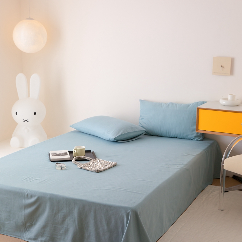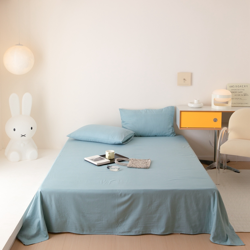 8小时家纺 2022新款全棉双层纱单品床单 孔雀蓝