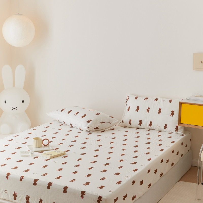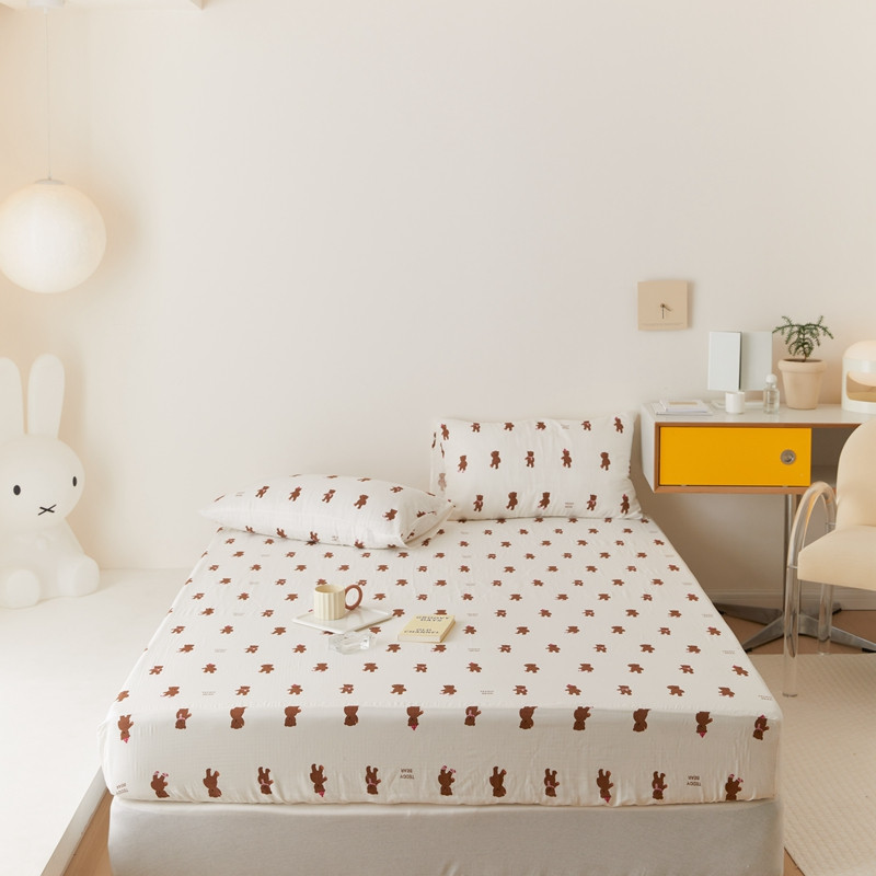 商品名称:8小时家纺 2022新款全棉双层纱单床笠 围巾熊