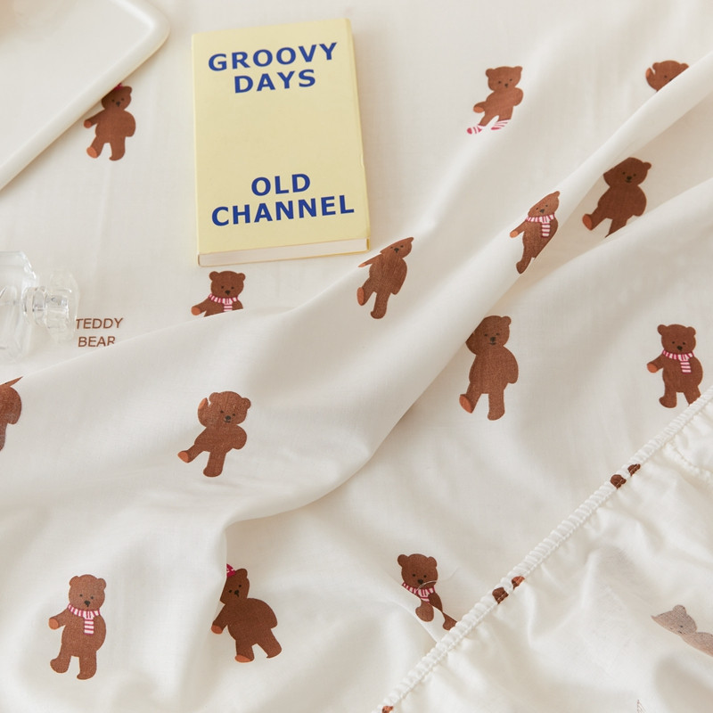 8小时家纺 2022新款全棉双层纱单床笠 围巾熊