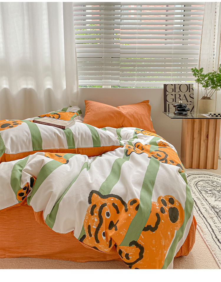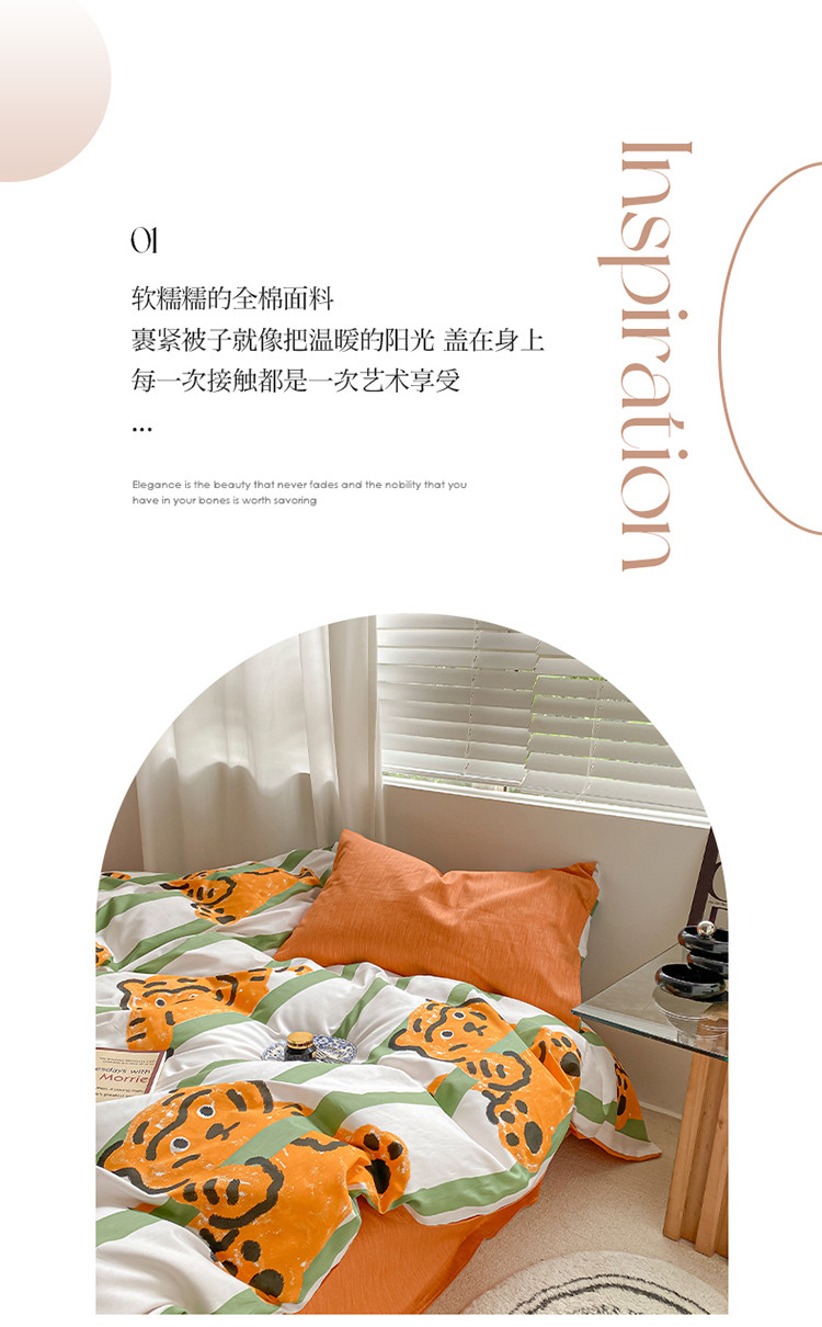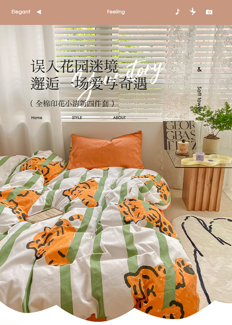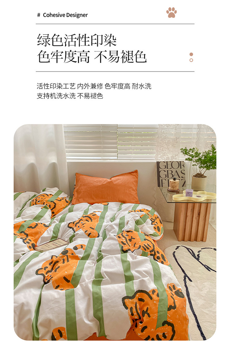 雅居纺 2022新款全棉13070印花小清新四件套 虎头虎脑