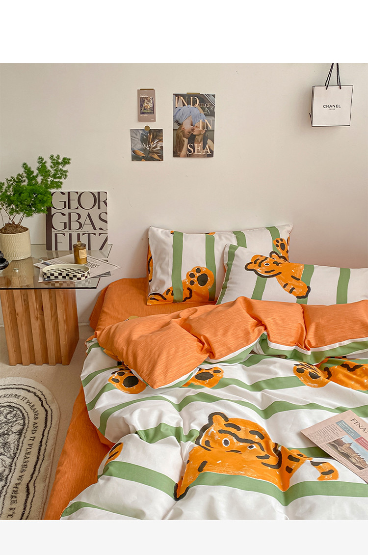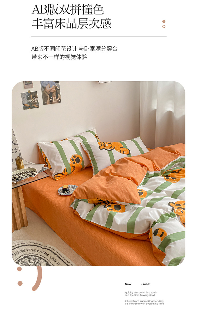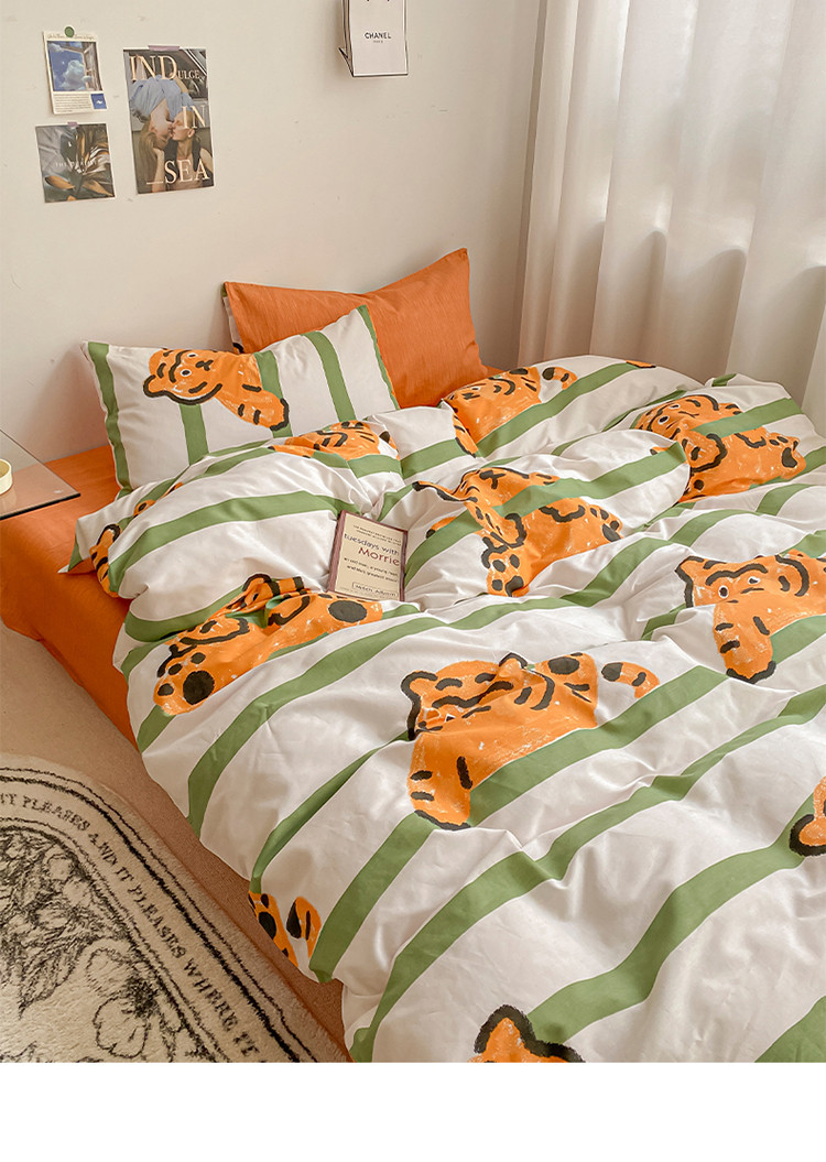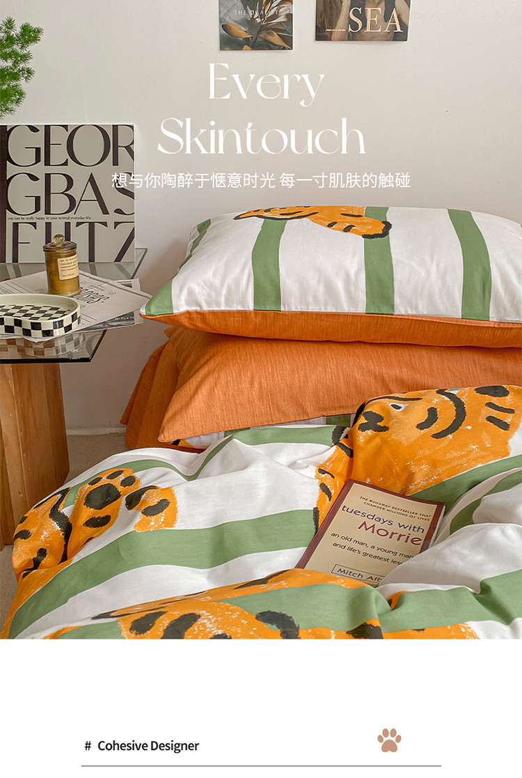 雅居纺 2022新款全棉13070印花小清新四件套 虎头虎脑