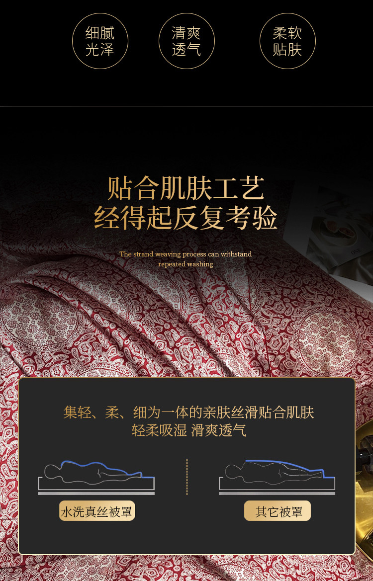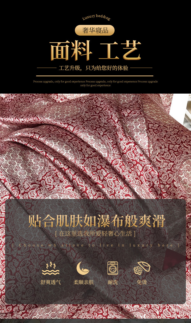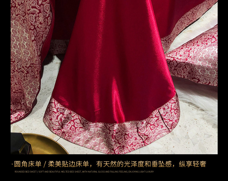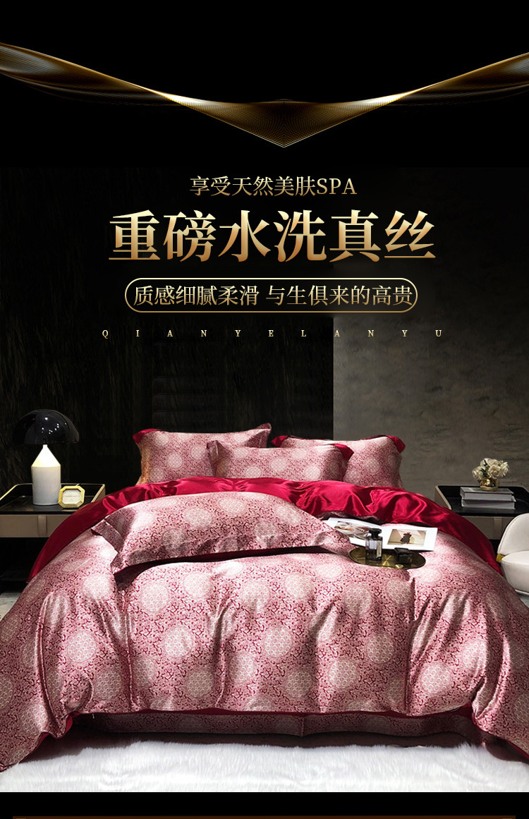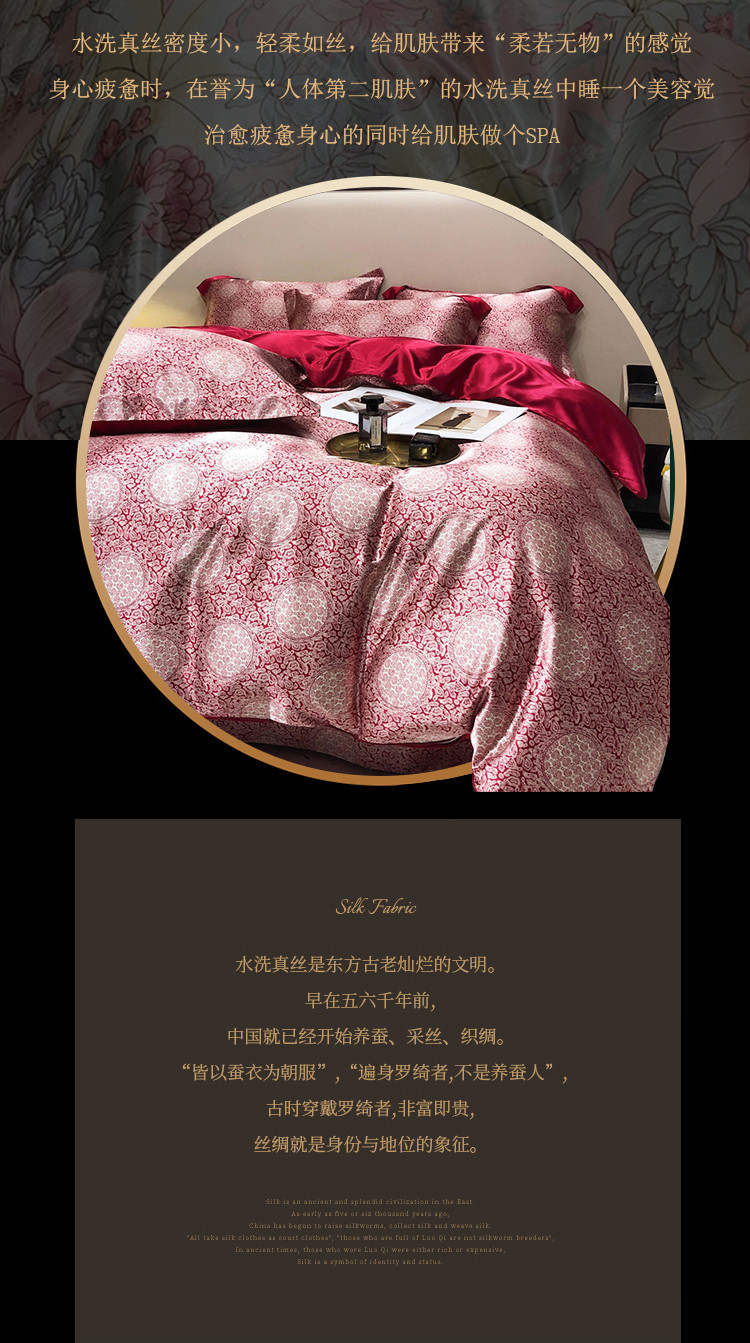 商品名称:黄鹂鸟 2025新款高端轻奢丝滑裸睡丝绸数码印花水洗真丝天丝四件套系列 -风格一花好月圆红