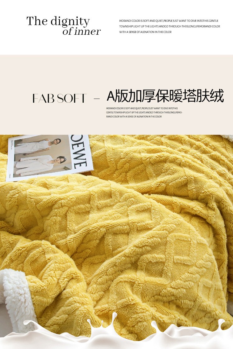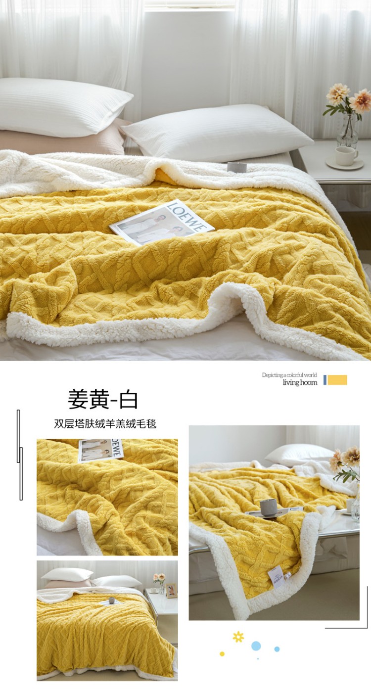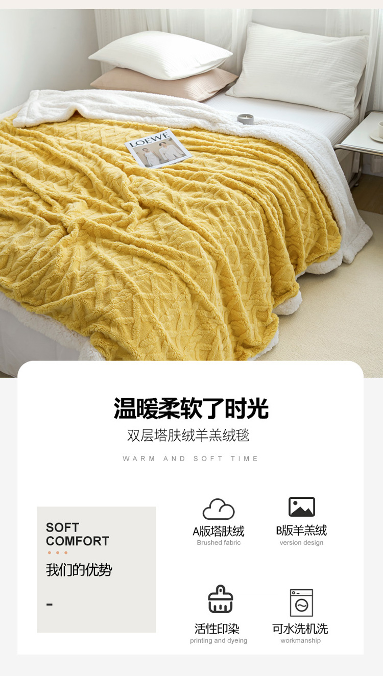 商品名称:羋多 2023年新款AB版提花塔芙绒羊羔绒毯子舒棉绒毛毯 姜黄-白