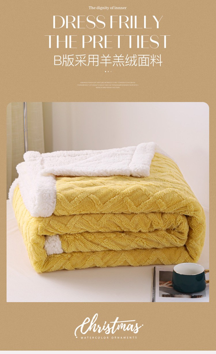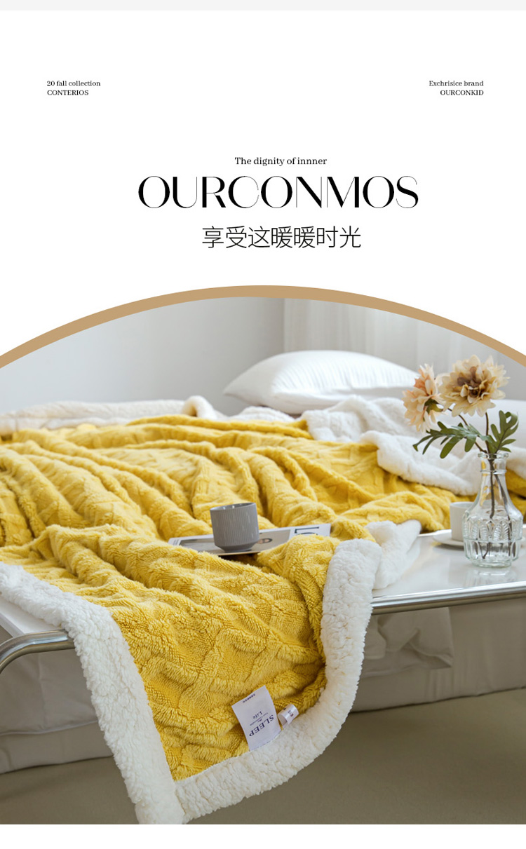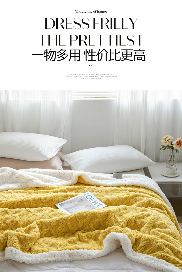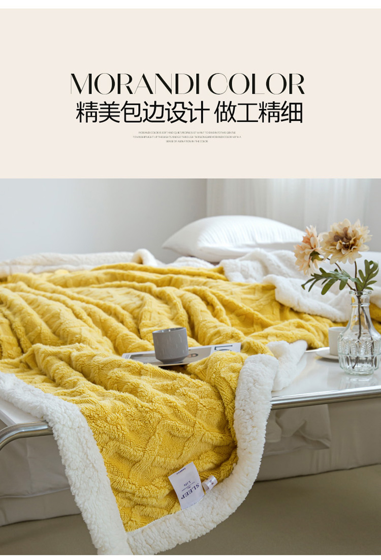 商品名称:羋多 2023年新款AB版提花塔芙绒羊羔绒毯子舒棉绒毛毯 姜黄-白