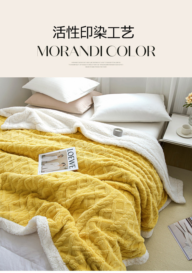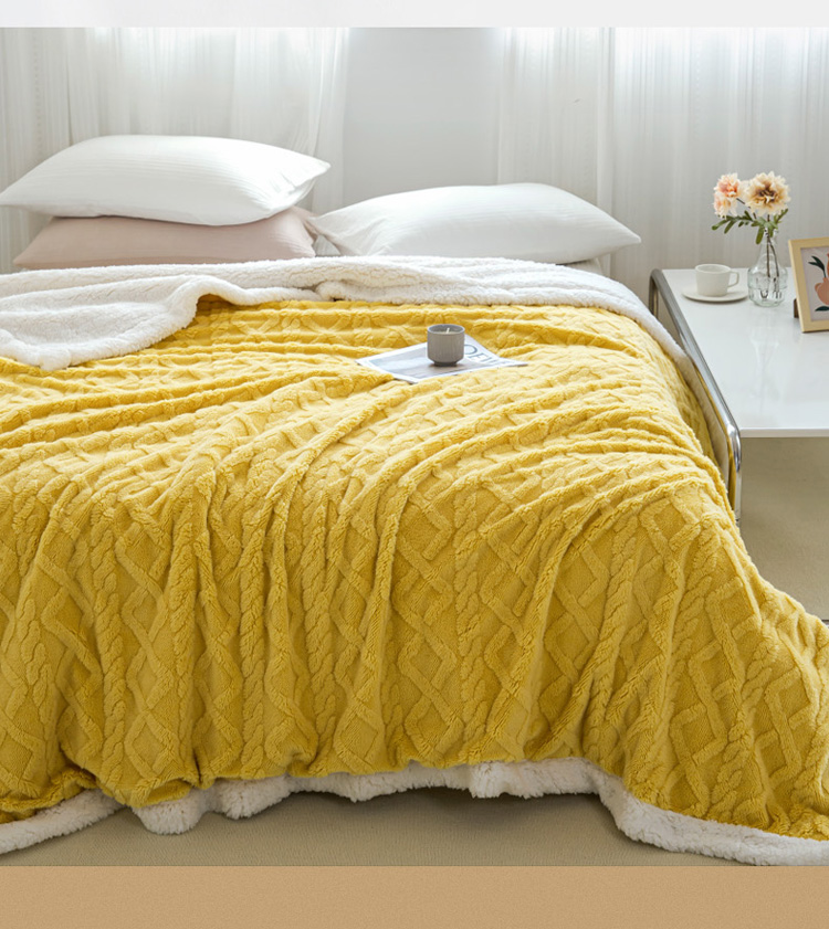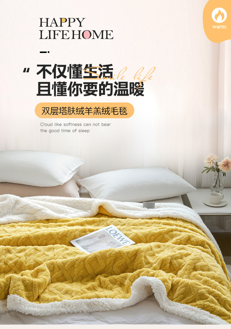 羋多 2023年新款AB版提花塔芙绒羊羔绒毯子舒棉绒毛毯 姜黄-白