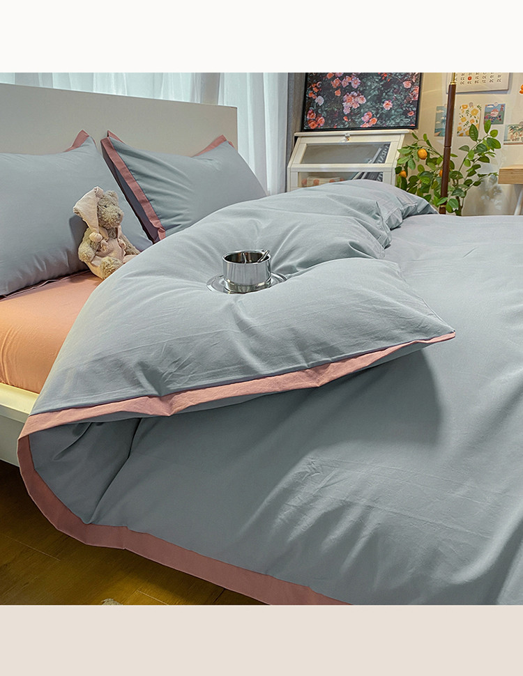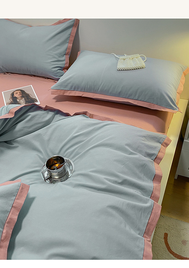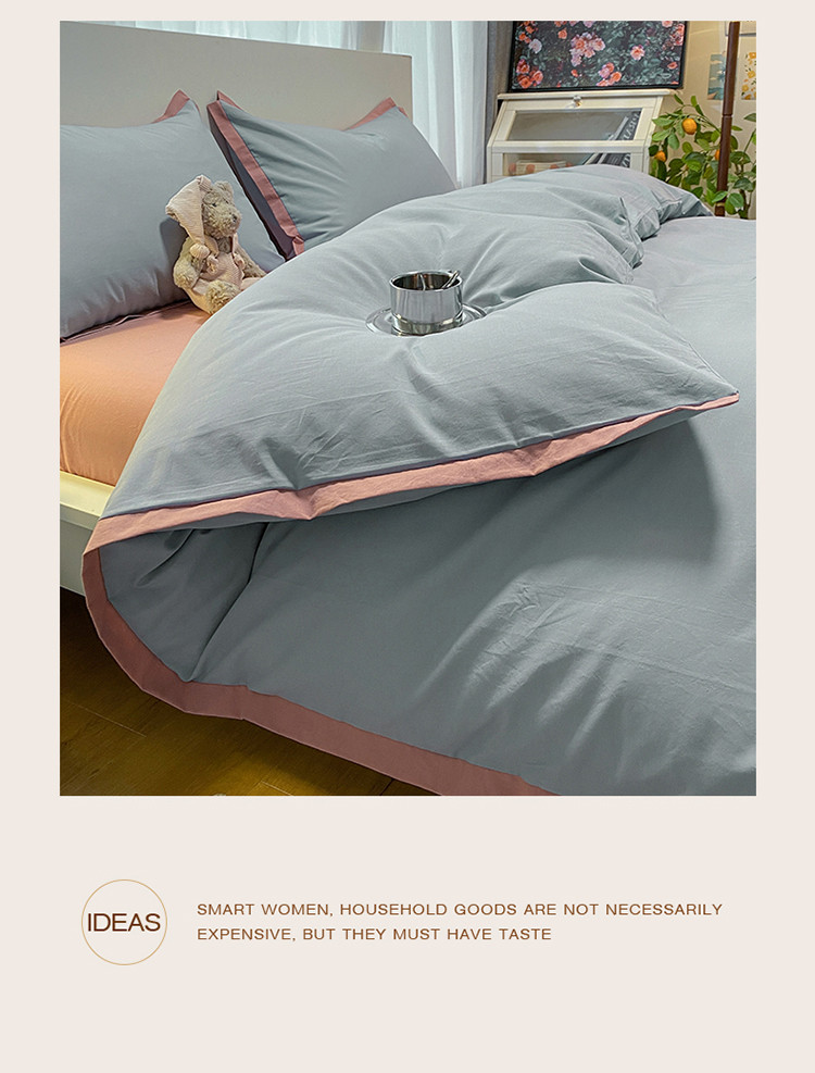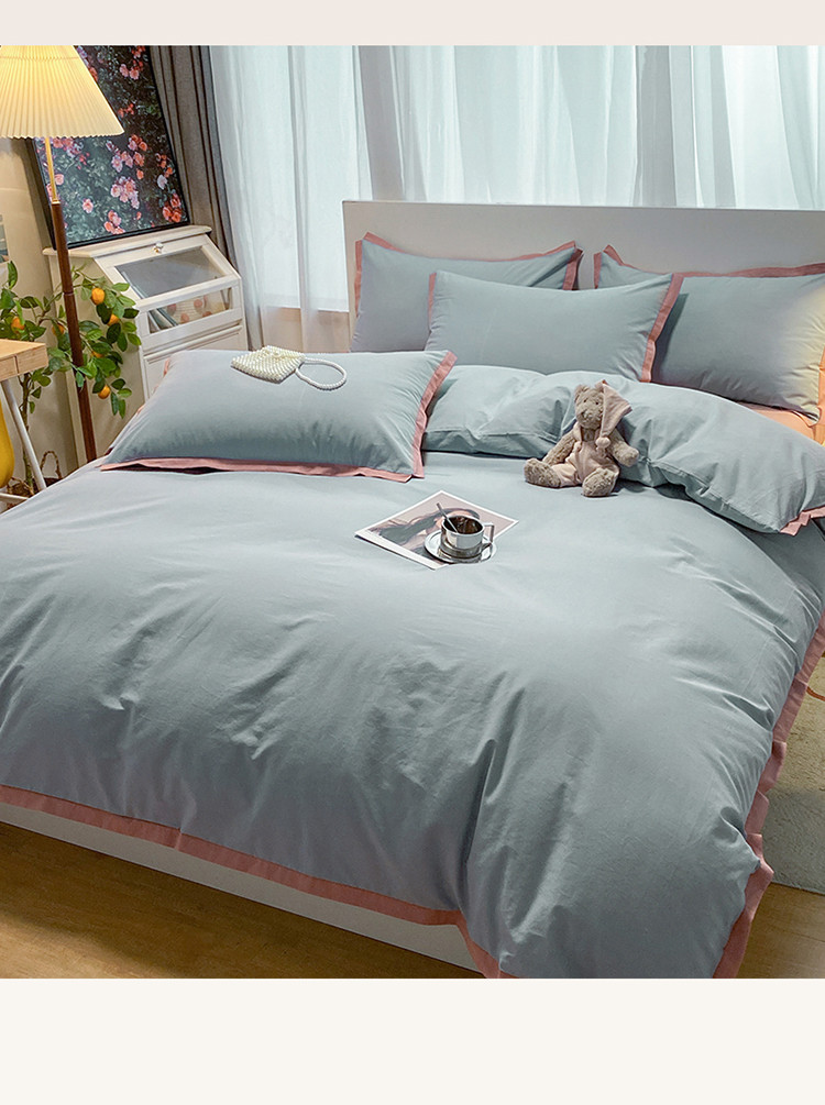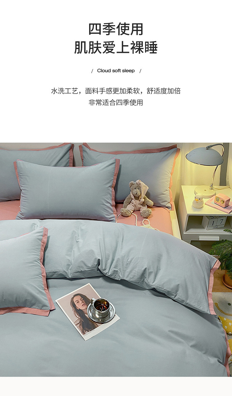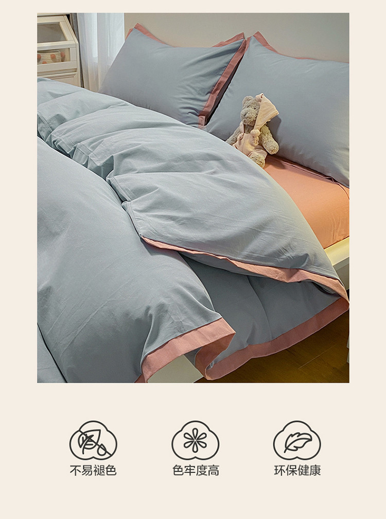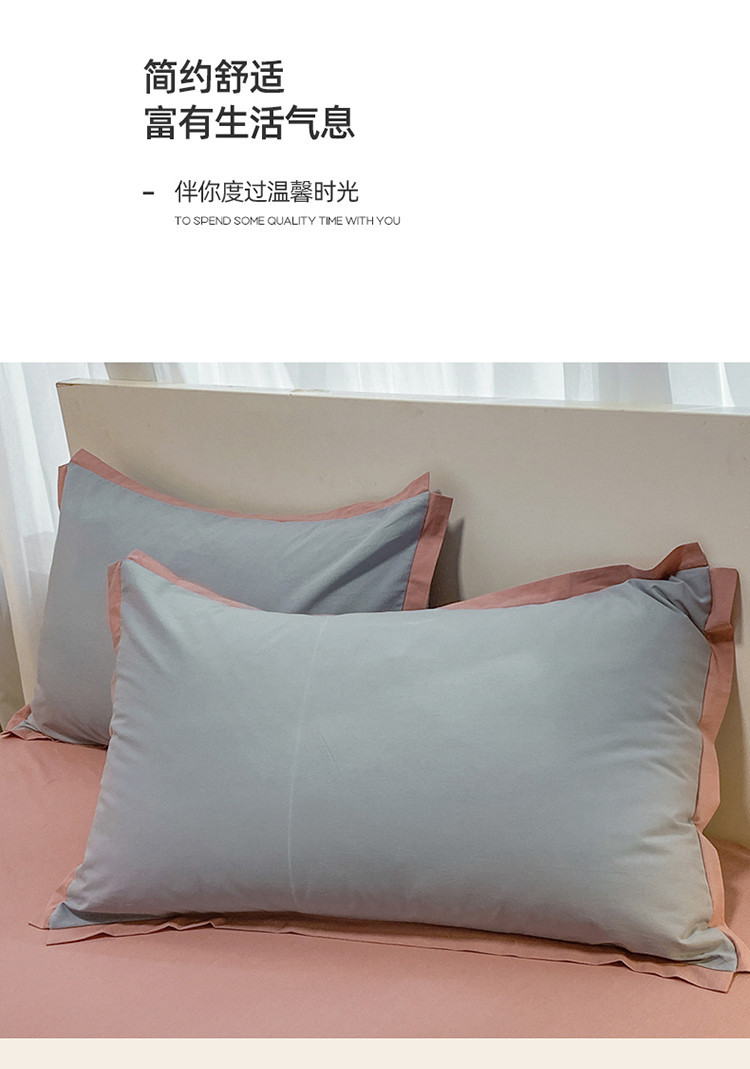 当前位置: 91家纺网 > 商品网购 > 床品套件 > 四件套 > 普通磨毛四件套 > 眠帛家居 2022新款水洗棉磨毛拼色嵌边四件套 蓝灰-豆沙