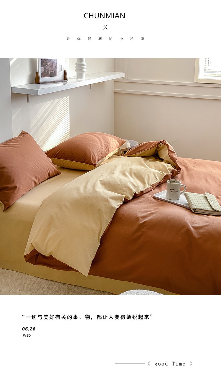 商品名称:双拼全棉水洗棉纯棉四件套ins简约北欧纯色床笠款套件